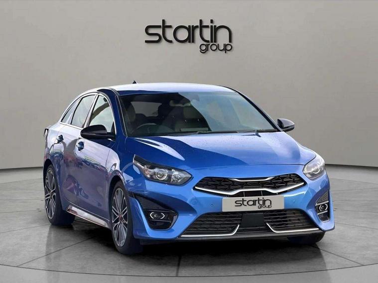 10.25" touchscreen satellite navigation including telematics, 4.2" supervision cluster colour display with GT performance mode, Apple car play/Android Auto, Bluetooth with Voice Recognition & Music Streaming, Drive mode selector, Driver attention warning, Emergency stop signalling system, Kia connected services featuring TomTom live, Lane keep assist, Motor driven power steering, Reversing camera with dynamic guide lines, Smart park assist system (SPAS) with parallel/perpendicular/reverse with front/rear parking sensors, Trip computer, Intelligent Stop and Go, 6 speaker audio system, DAB Radio with MP3, Illuminated USB & aux ports, Steering wheel mounted controls, USB & AUX Ports for Connection of a Media Device, USB Fast Charger in Front Centre Console, Air intake with red accent lower lip, All-round Electric Windows with Front Auto Up & Down Function, Auto dimming rear view mirror, Automatic defog system, Automatic headlights, Body colour bumpers, Body colour exterior door handles, Body coloured rear roof spoiler with high gloss black trim, Chrome window surround, Electric adjustable/heated/folding door mirrors with LED Indicators, Exterior front door handle illumination, Front wiper de-icer, Headlamp levelling, Heated rear window with timer, High beam assistant, High gloss black and chrome with red insert radiator grille, High gloss black door mirrors, High gloss red side sill mouldings, LED Bi-Function headlights, LED daytime running lights, LED full width tail lights, LED rear fog light, LED rear lights, Privacy glass in rear windows and tailgate, Puddle lights, Rain sensing front wipers, Rear bumper with diffuser trim and dual exhaust, Rear wash/wipe, Wide view drivers door mirror, Windscreen Washer Level Warning, 2 x 12V Power sockets (Front centre console), 3 x passenger assist grips, 60/40 split folding rear seat, All-round height adjustable headrests, Aluminium pedals, Black headlining, Centre console storage and sliding armrest, Cupholders in rear armrest, Dash illumination dimmer switch, Driver & Front Passenger Sunvisors with Vanity Mirror Illumination & Ticket Holder, Driver + front passenger electric lumbar support, Driver's seat height adjuster, Dual Height Luggage Area Floor, Dual zone automatic air conditioning, Faux leather door centre trim with red stitching, Front and rear door storage, Front map light with sunglasses case, Front Passenger Seat Height Adjuster, Front seat and rear pockets, Heated front seats, Heated steering wheel, Illuminated ignition key hole, Interior door lock/unlock function, ISOFIX Child seat top tethers and anchor fixings, Leather D-Cut steering wheel with red stitching, Leather gearshift, Load area cover, Luggage area light, Luggage area parcel shelf, Luggage hooks, Paddle shifter, Part leather/faux suede upholstery, Premium centre console with sliding cupholder cover, Rear Air Ventilation, Rear centre armrest, Rear coat hooks, Satin chrome interior door handles, Tilt/telescopic adjustable steering wheel, ABS with Electronic Brakeforce Distribution (EBD) and Brake Assist System (BAS), All round 3-point seatbelts, Dual front side airbags, Dual horn, Electric parking brake, Electronic stability control (ESC) and vehicle stability management (VSM), Front passenger airbag deactivation, Height adjustable front seatbelts, Hill start assist control (HAC), Impact sensing auto door unlocking, Rear door child safety locks, Red brake calipers, Seatbelt reminder warning, Traction control, Twin curtain airbags, Twin front airbags, Tyre pressure monitoring system, Alarm system, Engine Immobiliser & Deadlocks, Engine Start/Stop Button with Smart Entry System, Locking wheel nuts, Speed sensitive auto door locking, Black high gloss front console tray garnish & door trim, Satin Chrome Fascia Trim, 18" Alloy wheels with red centre cap, Tyre mobility system,