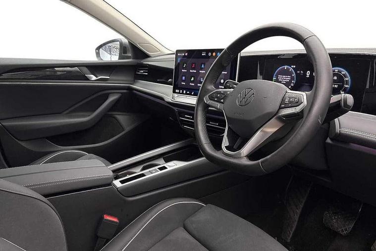 2 x Front USB-C ports, 2 x USB-C charging sockets on the centre console in the rear, charging capacity up to 45W, Adaptive cruise control, Advanced driver attention and drowsiness monitor, Chat GPT function for IDA voice assistant, Digital cockpit pro 10.25" high resolution, Discover media navigation system includes streaming and internet, Dynamic road sign display, E-Sim card for online connectivity, eCall emergency call service, Electronic engine sound, Full electric tailgate operation, Inductive smartphone charging without external antenna connection, Memory feature for park assist, Oncoming vehicle braking when turning including swerve support, Park assist with park distance control, Predictive speed limiter, Preparation for We connect and We connect plus, Wireless app connect, Battery 340 A (58 Ah), Front wheel drive, Petrol Particulate Filter, 8 Speakers, Auto dimming interior rear view mirror, Automatic headlights, Body colour bumpers, Body colour door handles, Heat insulating glass in side and rear windows, LED third brake light, Rain sensor, Rear side wing doors, Rear wiper, Welcome light with surround lighting, 3 seat bench in 2nd row, 3 zone air care climatronic with rear air conditioning control panel, Front + rear carpet mats, Front head restraints, Isofix child seat preparation, easy-fit (for two outer rear seats, and front passenger seat), compatible with I-size, Luggage compartment cover, power operated, Single front passenger seat, Standard pedal cluster, Sun visors with illuminated vanity mirrors for driver and front passenger, Sunblind for rear side windows, Three rear head restraints, Unsplit rear seat bench, split folding backrest, Infotainment package plus - Passat Estate, Park and comfort pack - Passat Estate, 3x3 point rear seat belts, ABS (Anti locking brake system) includes BAS (Brake assist) and EBD (Electronic brake pressure distribution), Autonomous emergency braking front assist with pedestrian and cyclist monitoring, Disc brakes in front, Driver/Front Passenger airbags, Drivers knee airbag, Electronic parking brake with auto hold, ESC (Electronic stability control) + EDL (Electronic Differential lock) and ASR (Traction control), EDTC (Engine drag torque control), Extended safety system with proactive passenger protection system, Front passenger airbag deactivation switch, Hill hold function, Tyre pressure loss indicator, Warning triangle and first aid kit, Alarm with interior protection, Electronic engine immobiliser, Keyless locking and starting system keyless access with safelock, Aluminium decorative inserts, Tool kit for tyre mobility set, Trims for alloy wheels,