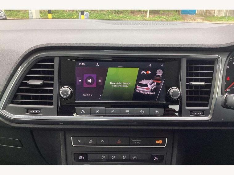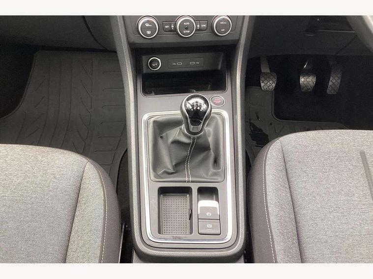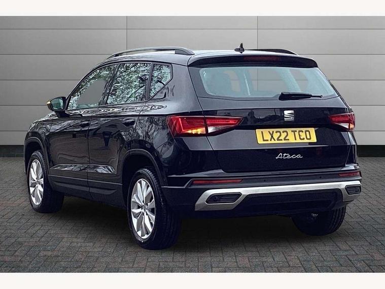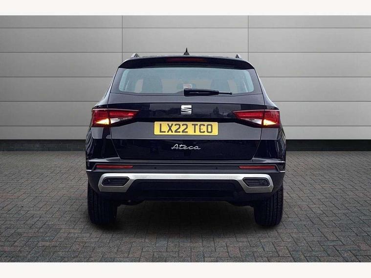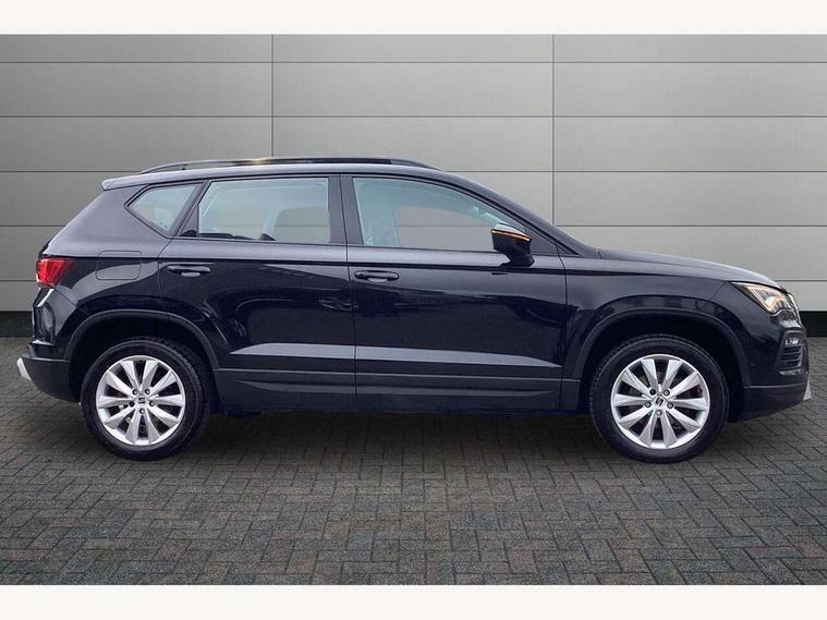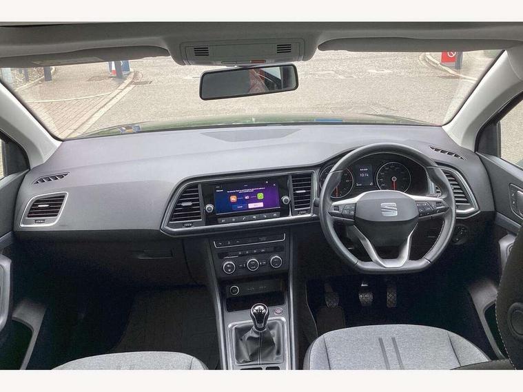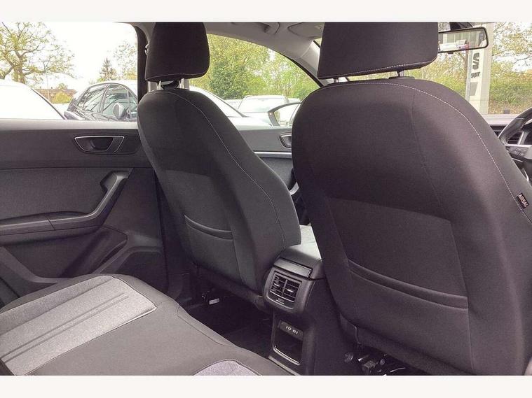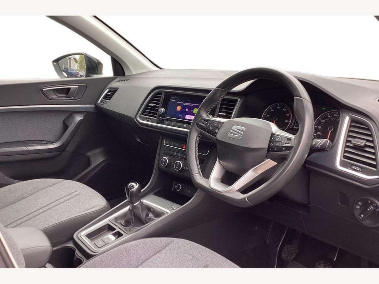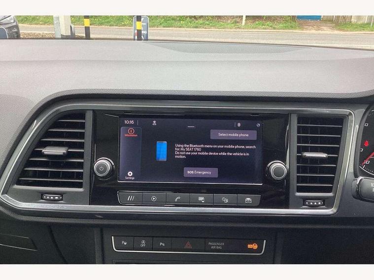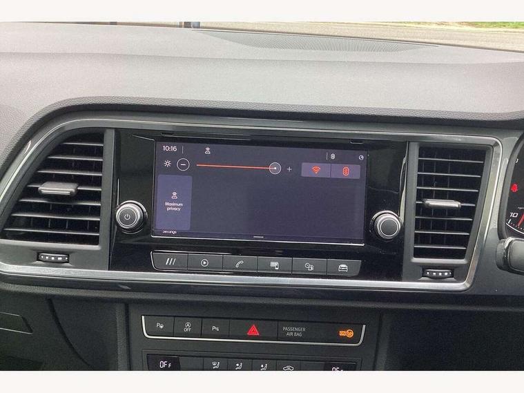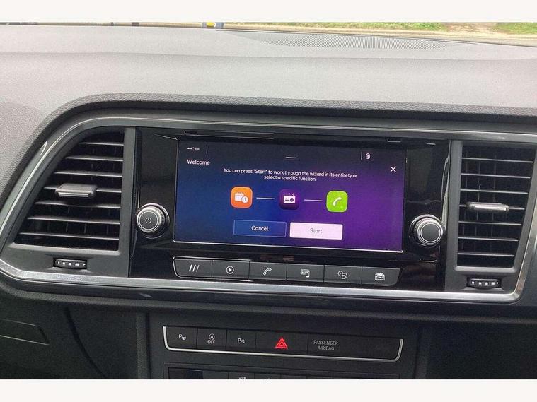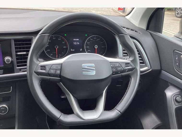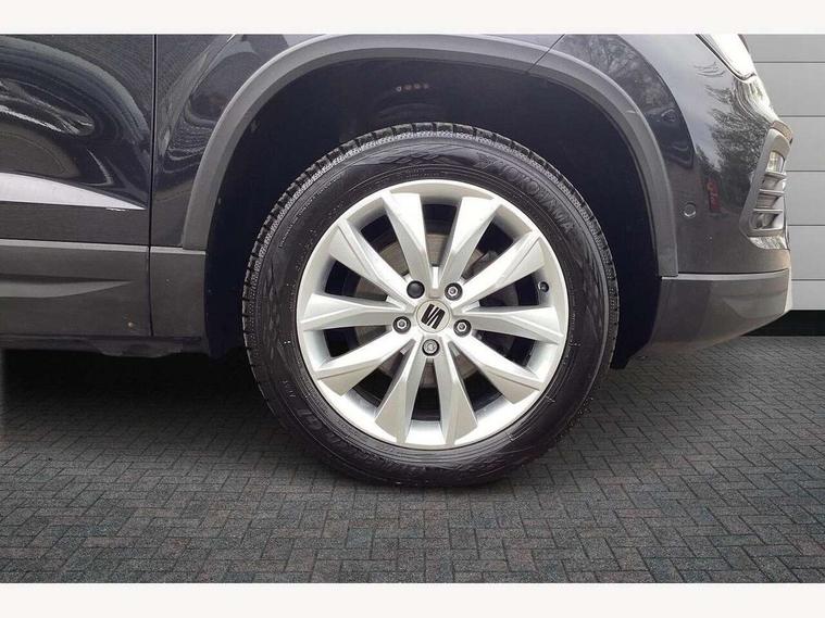 Cruise control system with speed limiter, E-call, Outside temperature gauge, PAS, SEAT drive profile with driving experience button - Normal, Sport, Eco and Individual mode, steering and throttle response, Self parking functionality (includes front and rear parking sensors), Trip computer, Wireless full link smartphone integration, Wireless phone charger, Black roof rails, Black wheel arch surrounds, Body colour bumpers, Chrome front grille frame, Daytime running lights, Door mirrors with welcome light silhouette, Dynamic headlight range control with self adjusting whilst driving, Electric adjustable/heated/folding door mirrors, Front and rear electric windows, Full LED headlamps with lens and LED front fog lamps with cornering function, LED rear tail lights with dynamic indicators, Rear fog lights, Rear side wing doors, Rear wash/wipe, Simulated exhaust pipes, 12V socket in front, 3 seat bench in 2nd row, 60/40 split folding rear seat, Cloth upholstery with front comfort seats, Dual zone climate control, Front and rear head restraints, Front centre armrest, Front seat back storage pockets, Height adjustable driver and passenger seat with lumbar adjustment, ISOFIX points in outer rear seats with top tether anchorage points, Leather steering wheel and gear knob, Rear armrest and easy back seat release mechanism from boot, Single front passenger seat, Storage compartment under driver's seat, Interior lighting pack - Ateca, Media system plus pack - Ateca, 3x3 point rear seatbelts, ABS, Traction control system (TCS), Electronic stability control (ESC) and Electronic differential lock system (XDS), Airbags - Driver and front passenger airbag with deactivation, front side, two curtain and driver's knee airbags, Electric parking brake with auto hold function, Front and rear seatbelt reminder, Front assist with autonomous emergency braking, Hill hold control, Manual rear child locks, Tiredness recognition system, Traction control, Tyre pressure monitoring system, Alarm, Keyless entry, Locking wheel bolts, Chrome interior detailing, 17" Brilliant silver alloy wheels with super low rolling resistance,
