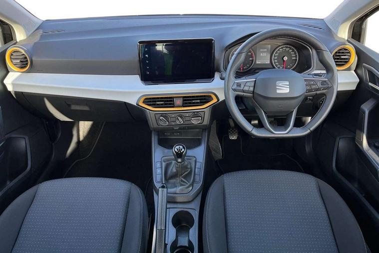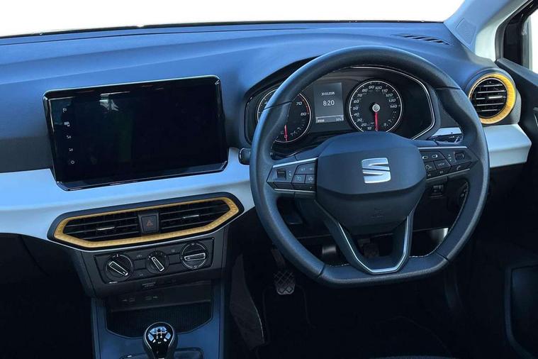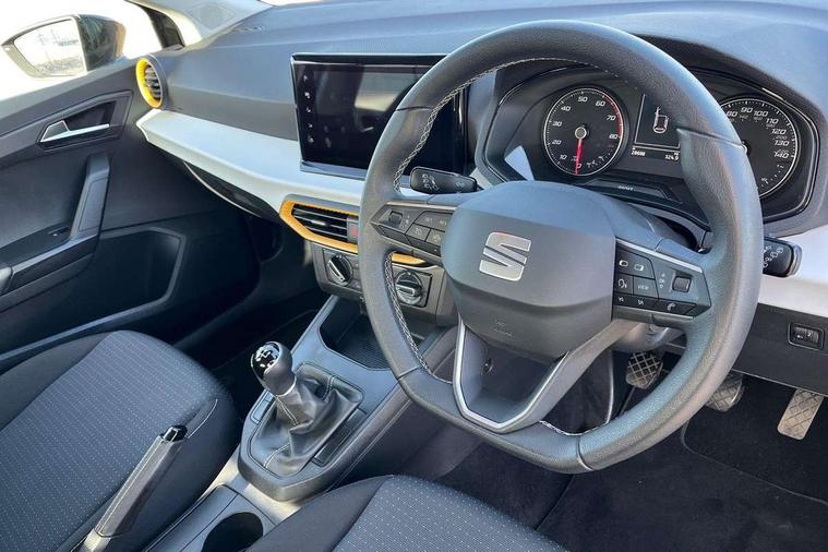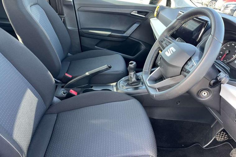 'Lights On' Reminder warning buzzer, 9.2" touchscreen navigation system with type C USB socket, Voice control and DAB/AM/FM radio, Auto start and stop system, Bluetooth audio streaming with handsfree system, Cruise control, Digital clock, E-call, Full link smartphone integration with mirror link, wireless apple carplay, Google android auto + USB Type C cable for apple and android devices, Lane assist, Low fuel warning light, Outside temperature gauge, Power Steering, Seat connect with safety, service, remote and online, SEAT logo boot release, Speed limiter, Trip computer, Comfort suspension, Auxiliary input socket, Radio/MP3 player, SD card slot, Steering wheel mounted controls, Anti theft roof antenna, Body colour bumpers, Body colour door handles, Body colour door mirrors, Dimming interior rear view mirror, ECO LED automatic headlights and LED daytime running lights, Electric front windows, Electric headlight adjustment, Electrically adjustable door mirrors, Front/rear fog lights, Halogen tailights, Rain sensor, Rear side wing doors, Rear wiper, Third brake light, 3 seat bench in 2nd row, 60/40 split folding rear seat, Air conditioning with dust and pollen filter, Chrome interior detailing and grey headlining, Cloth upholstery, Comfort seats, Front courtesy lights, Front cupholders x 2, Front reading lights, Gear shift indicator, Glovebox, Height adjustable front and rear headrests (five), Height adjustable front seats, Height/reach adjust steering wheel, Illuminated boot, Instrument lighting with brightness control, Isofix, Leather multifunction flat bottomed sports steering wheel, Passenger sunvisor, Single front passenger seat, Sunvisors with mirror and driver side card holder, 3 point seatbelts on all 3 rear seats, ABS, Active front headrests, Child locks on rear doors, Electronic stability control, Energy recovery system, Front assist forward collision warning and autonomous emergency braking, Front driver and passenger side airbags with curtain airbag and front passenger airbag deactivation, Hill hold control, Multi-Collision braking, Seat belt reminder for front and rear seats, Tiredness recognition system, Tyre pressure monitoring system, Electronic engine immobiliser, Locking wheel bolts, Remote central locking + deadlocks, 16" Design machined alloy wheels in Nuclear grey,