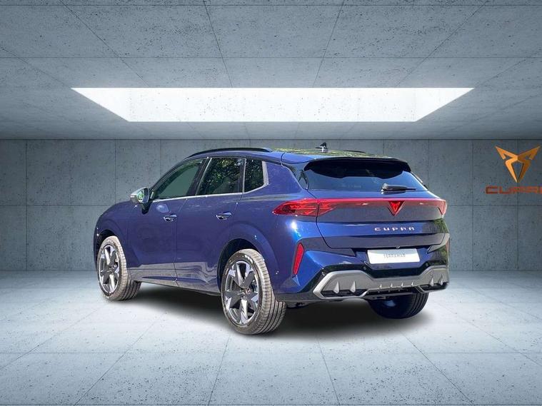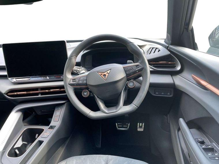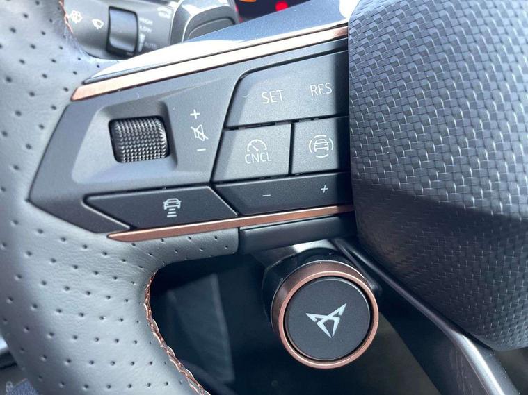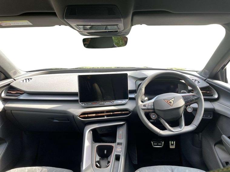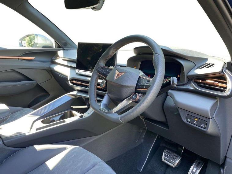 10.25" digital cockpit and configurable dashboard, Adaptive cruise control with follow-to-stop and speed limiter, Advanced driver alert system, Advanced lane assist with semi-automatic vehicle control in a medical emergency and traffic jam assist, Driving profile selection and conventional shock absorber, Dynamic road sign display, E-call, Electric tailgate with virtual pedal, Emergency steering support with turn assist, Front and rear parking sensors, Front assist (Forward collision warning with automatic braking) with multifunction camera and front cross traffic assist, Head up Display, Intelligent park assist, Media system with Nav - 12.9" touch display, voice control, full link phone (wired/wireless), DAB and Steering wheel mounted controls, Rear traffic assist, Side and exit assist, Speed sensitive power steering, Start/stop system with regenerative braking, Top view camera (front camera, rear camera, 2 side cameras), Wireless phone charger, Auto dimming rear view mirror, Black roof rails, CUPRA 3D rear lights with ceremony & swiping indicator and illuminated logo, Dark tinted rear windows, Daytime running lights with automatic headlight control and Coming and Leaving home function, Door mirrors with memory function and lowing function on passenger mirror, Dynamic headlight range control, Electric front/rear windows, Electrically adjustable, heated and folding door mirrors, Front fog lamps with cornering function, Heat reflecting windscreen, High beam assist, LED headlamps with signature "CUPRA LED", Rain sensing wipers, Rear fog light on one side, back up light on both sides, Rear side wing doors, Rear wash/wipe, Third brake light, Welcome lights (within exterior mirror housing), 3 seat bench in 2nd row, Black roof lining, Cupra sports pedals, Dinamica cloth upholstery, Driver seat memory function, Electrically adjustable front seats including lumbar support, Four x USB Type C ports (2 in front and 2 in rear), Front and rear head restraints, Front and rear reading lights X 4, Front centre armrest, Heated front seats, Heated leather wrapped multi function sports steering wheel with tiptronic, Illuminated interior front door sills, Isofix, Operating voltage 12V, Single front passenger seat, Smart wraparound interior lighting, Sunvisors with illuminated mirror, Three zone climate control with control panel in rear, Unsplit rear seat bench, split folding backrest, with centre armrest, Variable luggage/load compartment floor, 3 point seatbelts in front with pretensioner and electric height adjustment, 3 point seatbelts on all rear seats, Brake control system - ESC and brake booster, Child proof door locks, Driver and front passenger airbags, Electronic parking brake, Front and rear disc brakes, Front interaction airbag, Front passenger airbag deactivation switch, Front side airbags with curtain airbags, Pre-crash front and rear seat belt tensioner, window closure and hazard lights, Tyre pressure monitoring system, Visual and acoustic seat belt reminder, electric contact in front and rear, Anti theft alarm, Keyless locking and starting system with keyless access, Locking wheel bolts, Black decorative trims, Chrome interior detailing, 19" Spectrum exclusive machine alloy wheels, Tool kit,