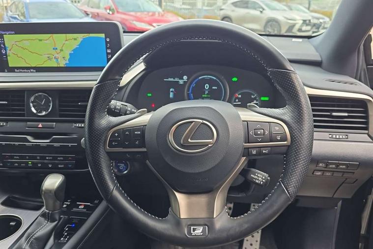 12.3" Touchscreen display and remote touch interface, 360 degree panoramic view monitor, 5 Driving modes EV/Normal/Eco/Sport/Sport+, Analogue clock with GPS function, Apple car play/Android Auto, Bluetooth mobile phone connectivity, BSM - Blind spot monitoring, Electric power steering, Front and rear parking sensors with intelligent clearance sonar, Hands free power boot lid operation with kick sensor, Head up Display, Lane change flasher function, Lexus link connected services with available optional wifi, Lexus Premium Navigation with full European map capability, street view and connected services, Multi-information display 4-inch TFT, Push button starter, Reversing camera with back guide lines, Wireless Smartphone charger, Adaptive variable suspension, E-Four Automatic transmission, Vehicle Dynamics Integrated Management (VDIM), Vehicle Stability Control (VSC), AUX socket with VTR compatibility, DAB Digital radio, DVD, Front and rear USB ports, Mark Levinson sound system with 15 speakers, 3 eye LED headlights with adaptive high beam system with bladescan, Auto dimming rear view mirror, Front and rear electric windows, Headlight washers, Heated, auto-folding door mirrors, auto dimming with rerverse tilt and memory, LED brake lights and rear lights with emergency brake signal, LED cornering headlights, LED daytime running lights, LED front and rear sequential indicators, LED front fog lights, Privacy glass, rear doors and tailgate, Puddle lights, Rain sensor windscreen wipers, Roof rails, 10 way electric power front seats, 2 map pockets in the rear, 2 way manually adjustable front headrests, 2 way manually adjustable rear headrests, 2 x fixed shopping bag hooks in boot, 2 x Sunvisors with vanity mirror and lamp, 3 x 12V power sockets, 4 way electric lumbar support for driver and front passenger, 4 x tie down hooks in the boot, 40:20:40 split folding rear seats, 60/40 split folding rear seat with 40/20/40 folding ability, Card holder installed in driver and passengers sun visors, Centre and rear armrest with 2 cupholders, Centre armrest with storage box, Climate concierge, Driver and passenger seat memory, Driver's seat easy access auto retraction function, Dual zone climate control air conditioning system with S flow and Nanoe technology, Electric folding rear seats, Electrically adjustable steering column, Electrically adjustable wooden and leather steering wheel with paddle shifts and auto retraction function, Glasses holder in roof lighting panel, Heated front seats, Heated rear seats, Heated steering wheel, Isofix standard child seat restraint mounting, Leather gear lever, LED aluminium scuff plates, LED interior illumination, Rear armrest with storage, Rear door sunshades, Self charging hybrid, Semi-aniline leather upholstery, Sliding/reclining rear seats, Small compartment to right of steering wheel, Textile carpet mats, Unique LED illumination instrumnet panel, Ventilated front seats, 3 point ELR front and rear seatbelts with pretensioners, ABS, Curtain airbags, Driver and front passenger 2 stage airbag, Driver/front passenger side airbags, Drivers knee airbag, EBD + Brake Assist, Electronic parking brake, Electronically controlled braking, Front passenger seat cushion airbag, Hill assist control, Lexus safety system - dynamic radar cruise control, pre collision system day and night, lane tracing assist, road sign, automatic high beam, OTA, Passenger airbag cut-off device, RCTB - Rear cross traffic auto brake, Rear passenger side airbags, Traction control, Tyre pressure warning, WIL whiplash protection front seats, Anti theft system with alarm, intrusion sensor, tilt sensor, glass breakage sensor and engine immobiliser, Locking wheel nuts, Security window etching, Smart card key, Smart keyless entry, Two motion door lock with double lock, 20" Takumi alloy wheels, Temporary spare wheel,