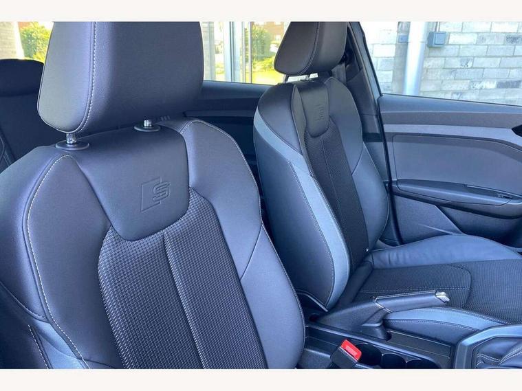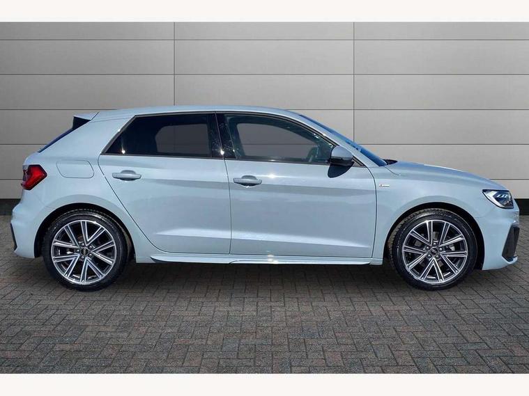 10.25" Digital instrument cluster display classis style instrument dials + speed, odometer, time, outside temperature, telephone menu + fuel level warning, Advanced driver attention and drowsiness monitor, Audi connect emergency call and service, Audi drive select, Audi remote connect and control, Audi smartphone interface, Bluetooth interface, Camera based traffic sign recognition, Cruise control, Driver's information system, Electromechanical power steering, Lane departure warning system, Rear parking sensor, Service interval indicator, Speed limiter, Start stop system with recuperation, Voice control system, Washer fluid level indicator, Sports suspension, 2 x USB type C connection points, 6 loudspeakers, DAB Digital radio, MMI radio plus with 10.1" colour MMI display screen and MMI touch, Auto dimming rear view mirror, Body coloured door mirrors, Door sill trims with aluminium inlays and S line logo in front, Electric front and rear windows, Electrically adjustable, heated, folding door mirrors with integrated LED side indicator, Front side air inlets in grained matt black and C frame in anthracite black, Headlight cleaning system, Heat insulating glass windscreen and side windows, Heated rear windscreen, High level LED brake light, LED daytime running lights, LED headlights with range control LED rear lights + dynamic rear indicators, Privacy glass, Radiator grille and rear diffuser in matt anthracite black, Radiator protective grille frame in matt aluminium silver, Rain and light sensors, Rear fog lights, Rear side wing doors, Rear wiper, S line badges on front wings, Side front spoiler lips in grained matt black, 12V socket in centre console with two cup holders, 3 rear seats with headrests, 3 seat bench in 2nd row, 3 spoke leather multi-function plus steering wheel features S badging and grips in perforated leather with contrast stitching, 40:60 Split folding rear seat or fully collapsed, Black cloth headlining, Front and rear velour black floor mats with contrast stitching in fine silver, Front head restraints, Front passenger seat, Height and reach adjustable steering wheel, Interior lighting includes roof module, front and rear reading lights and right luggage compartment lighting, ISOFIX child seat mounting for front passenger and outer rear seats including top tether attachment point of outer rear seats, Leather gear knob with aluminium trim, Leather handbrake grip, Manual air conditioning, Manual height adjustable for driver and front passenger seat, Manually adjustable lumbar support in front seats, Stainless steel pedals, Ambient lighting package - A1, Luggage compartment pack - A1, S line exterior styling pack - A1 Sportback, 3x3 point rear seatbelts, Audi pre-sense front with pedestrain and cyclist recognition, Brake assist function, Driver and front passenger airbag with front side and head airbags, Electronic Stability Control including ABS, EBD, ASR and EDL, Front passenger airbag deactivation switch, Hill hold assist, Manual rear child locks, Seatbelt height adjustment for front seats, Seatbelt monitoring, Tyre pressure loss indicator, Warning triangle and first aid kit, Anti theft alarm, Anti theft wheel bolts, Immobiliser, Remote control key with safelock, Aluminium trim for control switches, air vents and digital instrument cluster, Black dashboard, Silver grey inlays polygon structure in diamond paint finish, Structured grey accent surfaces insert of air vents, interior door handle recesses and centre console in quartz paint finish,
