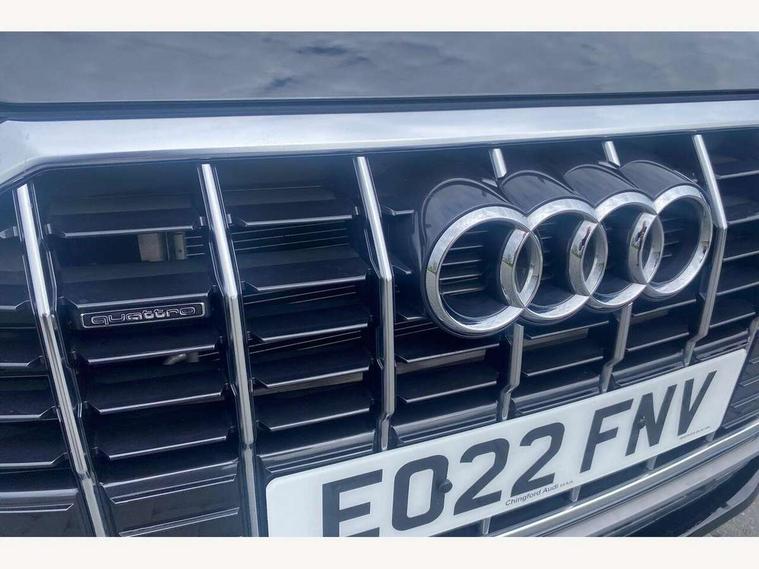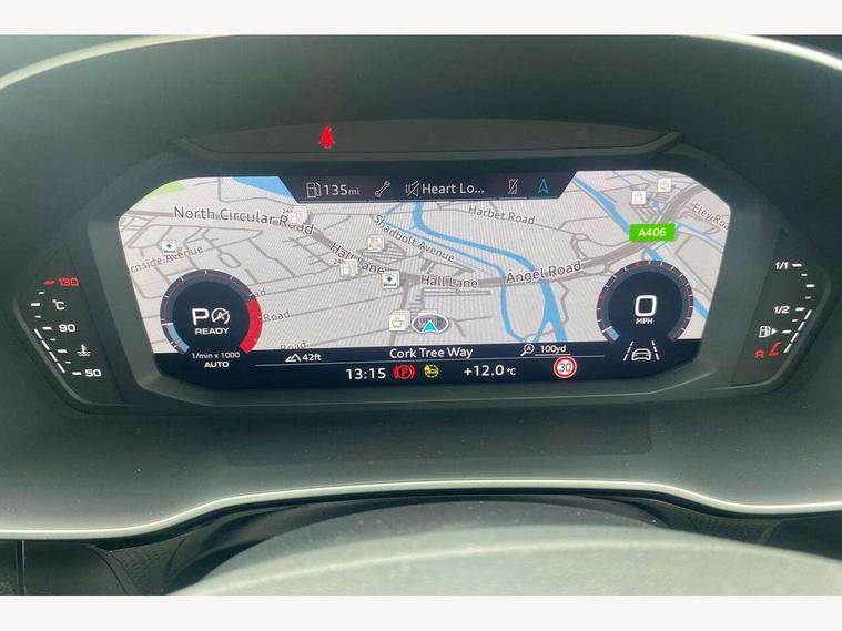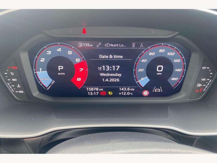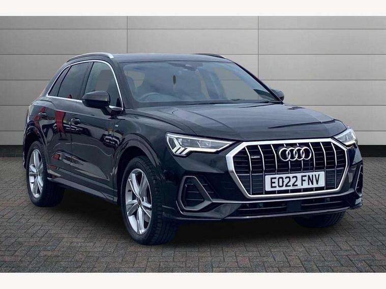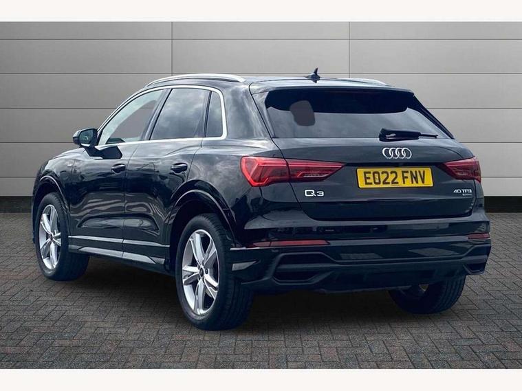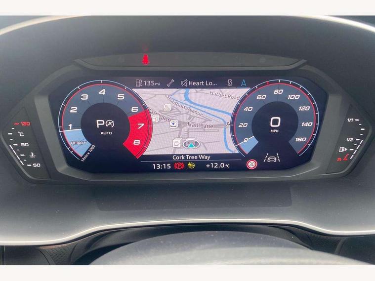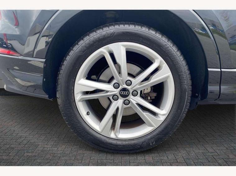 Amazon alexa Integration, Audi connect safety and service (e-call), Audi drive select, Audi lane departure warning, Audi Virtual Cockpit - 10.25" display, Bluetooth interface, Camera based traffic sign recognition, MMI Navigation Plus with high resolution 10.1 inch touchscreen colour display, Power operated tailgate, Progressive steering, Service interval indicator, Smartphone interface includes wireless Apple carplay/Android Auto, Start stop system with recuperation, Voice control system with natural language interaction, Sports suspension, 2 USB-C ports with charge and data functions, 6 passive loudspeakers, DAB digital radio module, Acoustic windscreen, Aluminium roof rails, Aluminium window trim, Auto dimming frameless rear view mirror, Body coloured bumpers, Electrically folding, adjustable and heated door mirrors with integrated LED side indicators and kerb view function for passenger side, Front and rear electric windows, Front fog lights, Front side air inlets in matt platinum grey, Front spoiler blade in matt platinum grey, Grille vertical bars in aluminium silver/Matt, High gloss black finish B and C pillars, LED headlights with LED daytime running lights, LED rear lights, LED third brake light, Privacy glass dark tinted rear and rear-side windows (from B-pillar backwards), Rain and light sensors, Rear diffuser strip in matt titanium black, Rear side wing doors, Rear wiper, S line badges on front wings, S Line front and rear bumpers, Side skirt insert in matt Platinium grey, Silver chrome grille surround, Tinted rear windows, Titanium black radiator grille, Variable front intermittent wipers, 12V socket in rear centre console, 3 seat bench in 2nd row, 40:20:40 folding with manual adjustment for 60:40 forwards/backwards position and backrest angle, Adjustable rear seat bench/backrest with centre armrest and cupholder, Black cloth headlining, Dual zone electronic climate control, Front and rear black floor mats with contrast stitching in rock grey, Front and rear headrests, Front and rear roof module including reading lights, Front centre armrest, Glove compartment lighting, Height and reach adjustable steering wheel, Illuminated door sill trims with S logo, ISOFIX child seat mounting for front passenger with airbag deactivation and outer rear seat including top tether attachment point for outer rear seats, Luggage compartment light, Manual front seats with height adjustment, Perforated leather gearknob, Single front passenger seat, Stainless steel luggage compartment sill finisher, Stainless steel pedals, Non smoking pack - Q3, 3x3 point rear seatbelts, 6 airbags - Driver, front passenger, curtain and side windows, Audi pre-sense front with pedestrain and cyclist recognition, Electrically operated child locks on rear doors, Electromechanical parking brake, Electronic stabilisation control including ABS, ASR and EDL, Front seatbelt reminder, Hill descent control, Hill hold assist, Pre sense basic, Seatbelt monitoring, Tyre pressure warning, Warning triangle and first aid kit, Anti theft alarm, Anti theft wheel bolts, Immobiliser, Remote central locking, Dark matt brushed aluminium inlay, Detail dashboard around MMI touch colour display in glass look, black with surround in aluminium look, Leatherette door armrest,