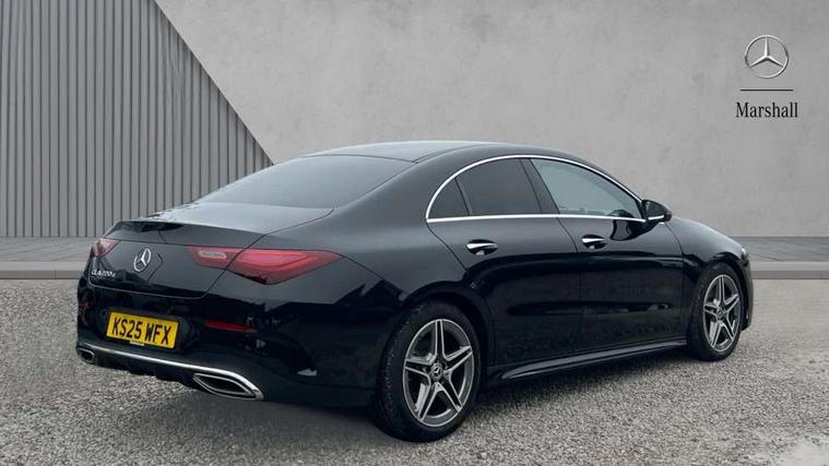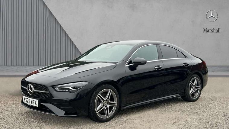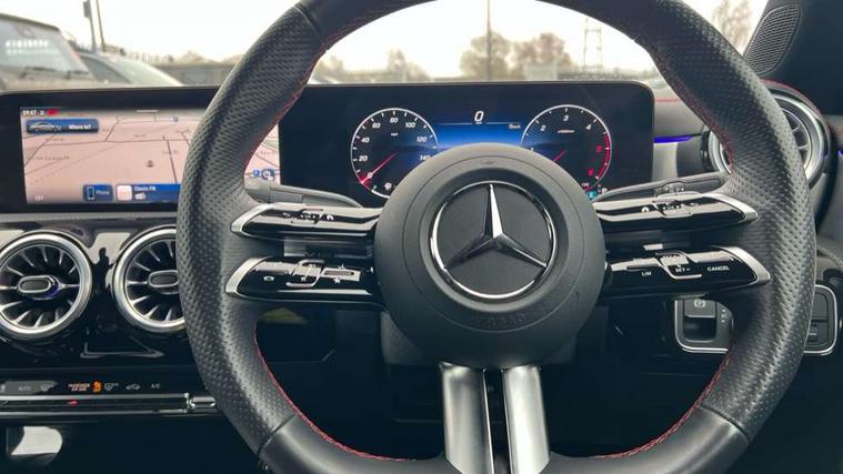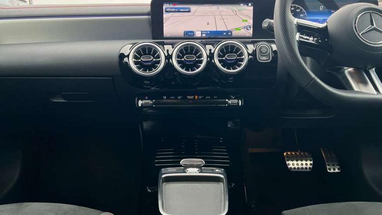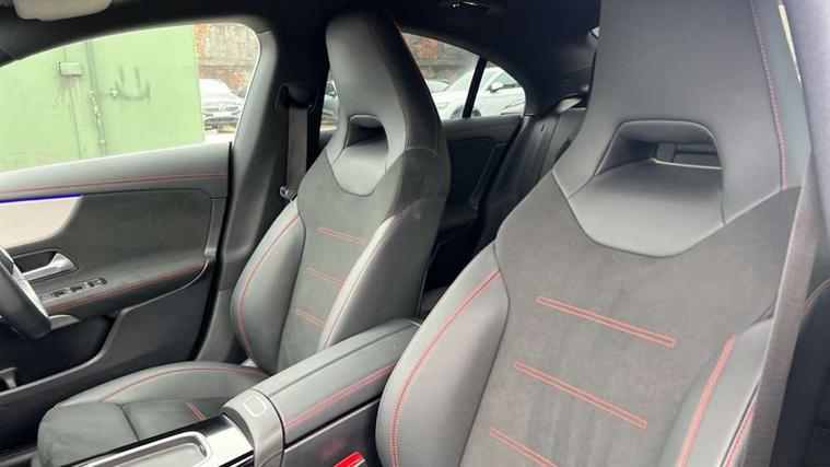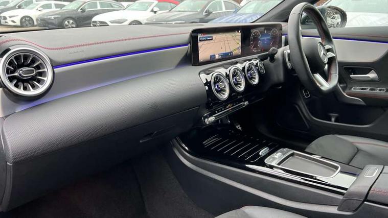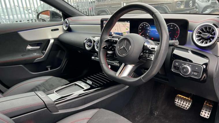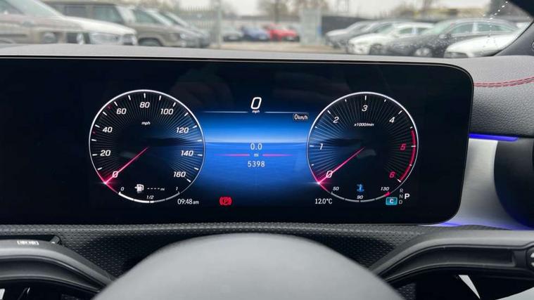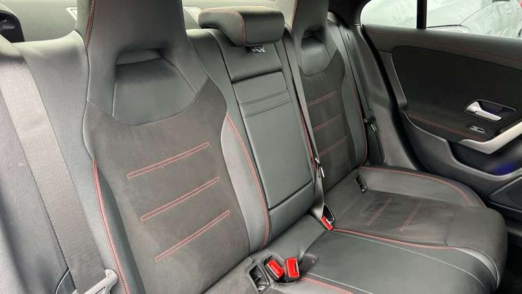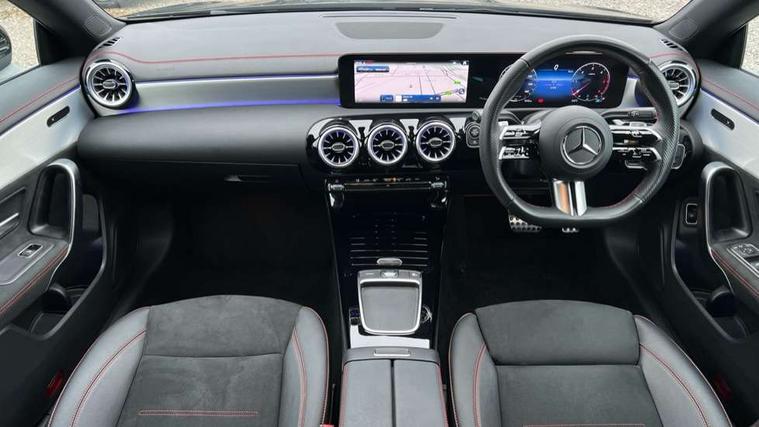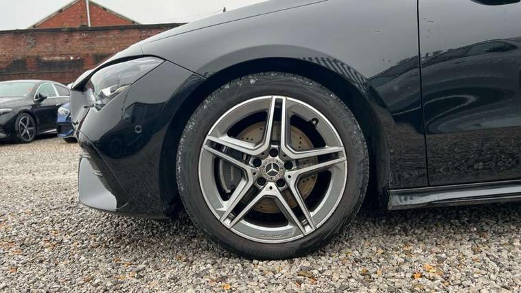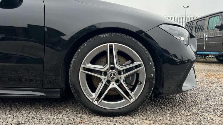 10.25 inch Instrument display with digital cockpit, 10.25 inch touchscreen central media display, Active lane keeping assist, Attention assist - Monitors steering behaviour and long journey fatigue, Blind spot assist, Bluetooth connection, Car wash mode, Cruise control with limiter, Direct steer system, DYNAMIC SELECT with a choice of driving modes (ECO, Comfort, Sport and Individual), ECO start/stop function, Fingerprint sensor, Fluid level warning indicator for fuel, oil, coolant and washer fluid, Hard-disk navigation, Hey Mercedes Voice activation, Lamp failure indicator, Mercedes me connect including emergency call system, accident recovery, breakdown and maintenance management, Mercedes me remote services, Outside temperature gauge, Owners manual in English, Pre-installation of private car share, Radio aerial integrated into front and rear windshields, Service indicator (ASSYST), Smartphone integration with Apple CarPlay and Android auto, Speed limit assist, Trip computer in multifunction display with current consumption indicator, Wireless charging in the front centre console, Comfort suspension with ride height lowering, Rear axle multi-link, DAB digital radio tuner, MBUX multimedia system, Mercedes Benz sound system (100 W) with 6 speakers, Pre installation for Mercedes Benz Link, Adaptive brake lights, AMG body styling with AMG front apron and rear apron and visible exhaust tailpipe in chrome trim elements, Body colour door handles, Electric windows, Electrically adjustable and heated door mirrors with integrated LED indicators, Exhaust system with 2 Visible tailpipe trim elements and rear apron with trim in chrome, Hand free access, Headlamp assist automatic headlamp activation, Heated glass rear windscreen + timer control, High gloss aluminium beltline strips, High level LED third brake light, Interior mirror with black reading lamps and frameless, LED high performance headlamps with integrated LED daytime running lights and adaptive highbeam assist, LED tail lamp, Privacy glass with dark tinting on rear side windows and rear window, Radiator grille with Mercedes-Benz pattern in chrome and central Mercedes star, single louvre in high-gloss black with chrome inserts, Rain sensing windscreen wipers with two sensitivity settings, Rear boot, Rear fog lamp, Rear side wing doors, Variable front intermittent wipers, Window line trim strip in high gloss aluminium, 3 seat bench in 2nd row, 3 twin spoke flattened multifunction steering wheel in nappa leather - horizontal twin spoke in high gloss black, vertical twin spoke in silver chrome, 4 way lumbar support, 40:20:40 split folding rear seat backrests, Air conditioning - One zone THERMATIC automatic climate control with automatically controlled air distribution, Air vents with surround in silver chrome, Artico man-made leather/Microcut microfibre upholstery, Automatic child seat recognition sensor, Black roof lining, Brushed stainless steel sports pedals with rubber studs, Floor mats with stitched AMG lettering, Fluorescent jacket, Front centre armrest with stowage, Galvanished gear shift paddles in silver chrome, Heated front seats, Interior lighting - 64 colour Ambient lighting, Luggage net on driver/front passenger seat backrest, Manually height and reach adjustable steering column, Rear head restraints, Single front passenger seat, Sport seats with fixed head restraints, Stowage compartment in centre console with retractable cover, Sunvisors with illuminated vanity mirrors, Twin front cupholders, Two outer rear seat isofix and top tether child seat fixing points, Keyless go comfort pack - CLA, Light and sight pack - CLA, Mirror pack - CLA, Parking pack with reversing camera - CLA, Seat comfort pack - CLA, USB package plus - CLA, Active bonnet pedestrain safety measure which detects an impact and raises bonnet by 65mm, Active brake assist includes forward collision warning system with autonomous braking, Adaptive brake assist with hold function and hill start assist, Anti lock braking system (ABS) with brake assist, Black seat belts, Bonnet with power domes, Brake calipers with Mercedes-Benz lettering, Brake pad wear warning indicator, Childproof locks manually operated for rear doors and electrically operated for rear power windows, Crash responsive emergency lighting, Driver and front passenger head and sidebags, Driver and front passenger windowbags, Drivers knee airbag, Dual stage driver and front passenger airbags, Electric parking brake, Electronic stability programme with acceleration skid control, ESP curve dynamic assist, Front and rear seatbelt reminder, Front passenger seat occupancy sensor, Perforated front brake discs, Sports braking system, Three point rear seat belts, Tyre pressure monitoring system, Warning triangle and first aid kit, Alarm system with immobiliser and interior protection -Thatcham category 1, Guard 360 deg vehicle protection - tow away protection with visual, acoustic warning, interior monitoring, preinstallation for parking damage, Remote central locking and crash sensor with emergency opening function, Light aluminium with longitudinal grain interior trim, 18" AMG 5 twin spoke light alloy wheels painted in termolite grey with high sheen finish, Summer tyres, Tirefit tyre sealant kit,