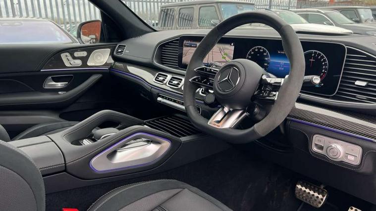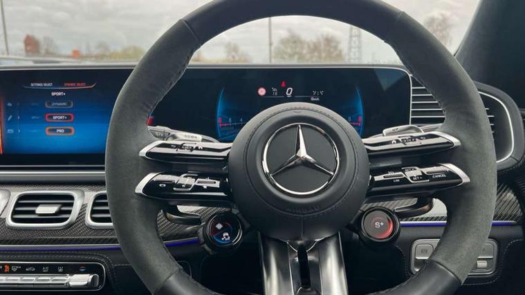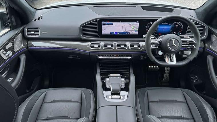 12.3 High resolution wide screen cockpit display with choice of three display styles Classic, Progressive or Sport and unique ambient lighting setting, 360 degree view camera, Acoustic presence indicator, Active parking assist with PARKTRONIC, Attention assist, Brake wear warning display, Direct steer speed sensitive steering, DYNAMIC SELECT with a choice of driving modes (ECO, Comfort, Sport and Individual), Easy-pack tailgate - Powered opening/closing automatically, ECO start/stop function, Hard-disk navigation, Head up Display, MBUX augmented reality for navigation and live traffic, MBUX voice control activated by keywords "Hey Mercedes", Mercedes Benz emergency call system, Mercedes me connect - vehicle set up and monitoring, Outside temperature display, Pre-installation for digital key transfer, Remote boot release, Service indicator (ASSYST), Status display for rear seat belts in instrument cluster, Traffic sign assist, Trip computer in multifunction display showing current fuel consumption, Wireless charging, Wireless smartphone integration including Apple CarPlay and Android auto, 85 litre fuel tank, AC charging, AMG ride control + with adaptive dampers, AMG Speedshift TCT 9 speed transmission, Charging cable for household socket, Charging cable for wallbox and public charging stations 8m straight, DC charging, Mild Hybrid starter alternator, Petrol Particulate Filter (PPF), Additional USB connection, Bluetooth interface for hands free and audio streaming, Burmester surround sound system, DAB digital radio tuner, Front and rear USB ports, Sound personalisation, Adaptive brake lights, Aluminium look, illuminated running boards with rubber studs, AMG bodystyling front and rear aprons, AMG exhaust system with two black chrome round twin tailpipes, AMG performance exhaust system, Auto headlights, Automatically dimming rear view mirror, Body coloured bumpers, Electric windows with one touch opening/closing and obstruction sensors, Electrically adjustable, heated, folding exterior mirrors, Exterior styling - front bumper, radiator grille and front air intakes, Heated windscreen washers, LED 3rd brake light, LED daytime running light signet, LED rear lights, Magic vision control, Matt black roof rails, Multibeam LED headlights with adaptive highbeam assist plus, Panoramic sliding sunroof, Radio aerial integrated into rear window, Rain sensing windscreen wipers, Rear side wing doors, Rear wiper, Roof rail system, Top surround of side windows in polished aluminium, Transparent Bonnet, Visible twin pipe exhaust system integrated into bumper, Waistline in polished aluminium, 3 seat bench in 2nd row, 3 spoke AMG Performance multifunction steering wheel in nappa leather/MICROCUT, 4 way adjustable front head restraints and 2 way rear head restraints, 40:20:40 split folding rear seats, AMG floor mats, AMG steering wheel buttons, Automatic child seat recognition sensor, Black MICROCUT Headlining, Climatised front seats, Dinamica microfibre roof liner in black, Double sunvisor, Electric height/reach adjustable steering column, Electrically adjustable front seats with memory function, Electrically adjustable rear seats, Front centre armrest with stowage compartment and illuminated grab handles, Gearshift paddles on steering wheel, Glove compartment - lockable, air conditioned and illuminated, Heated rear seats, Heated steering wheel, Illuminated front door sill with AMG lettering, Interior lighting - 64 colour Ambient lighting, Luggage compartment cover, Luxury head restraints in front, Multicontour front seats with massage, Seat occupancy sensor for front passenger seat, Single front passenger seat, Sports pedals in brushed stainless steel with rubber studs, Sunvisors with illuminated vanity mirrors, Temperature controlled cupholder, Thermotronic automatic 4 zone climate control, Touchpad, Air balance package - GLE, AMG night package - GLE, Energizing package - GLE, Exclusive Trim package - GLE, Keyless go comfort package - GLE, Active bonnet, Airbags - driver and front passenger, front sidebag, pelvis bag and window airbags, Anti-lock braking system (ABS), Black seat belts, Childproof locks manually operated for rear doors and electrically operated for rear power windows, Drivers knee airbag, Electronic parking brake, Electronic Stability Programme (ESP), High performance perforated front brake discs and silver brake calipers with AMG lettering, ISOFIX child seat points with automatic child seat recognition, Pre safe impulse side, Three point rear seat belts, Tyre pressure monitoring system, Warning triangle and first aid kit, Alarm system/interior protection/immobiliser, Central locking with interior switch, automatic locking and crash sensor with emergency opening function, Chrome surround in electric key, Dashcam, Guard 360 degree vehicle protection plus, Carbon fibre trim elements, Dashboard and door beltlines in ARTICO man made leather with contrast top stitching, 22" AMG cross spoke forged alloy wheels in matte black, TIREFIT with tyre inflation compressor,