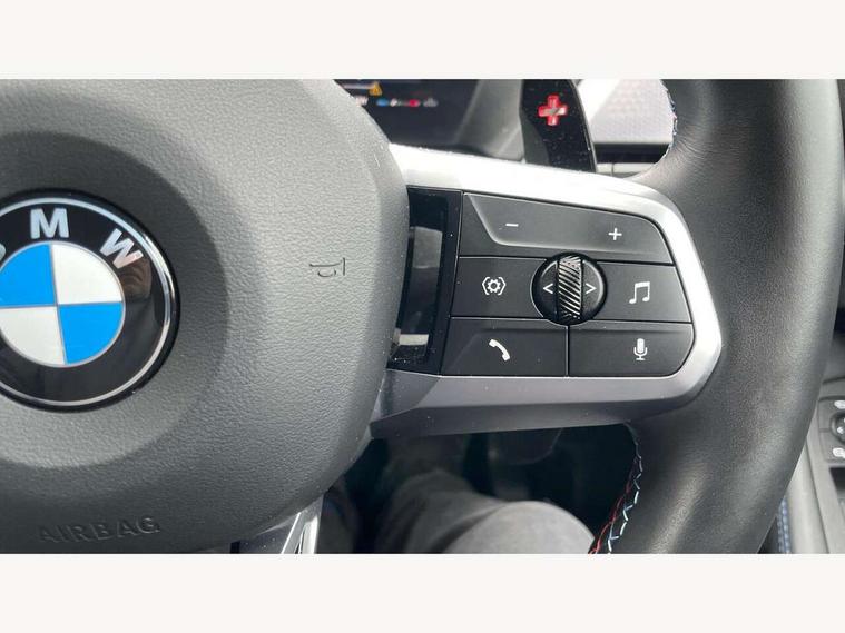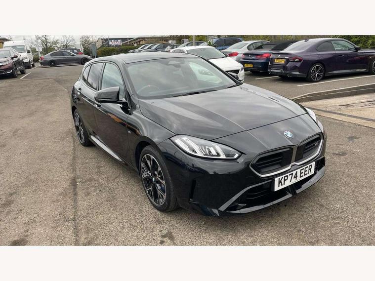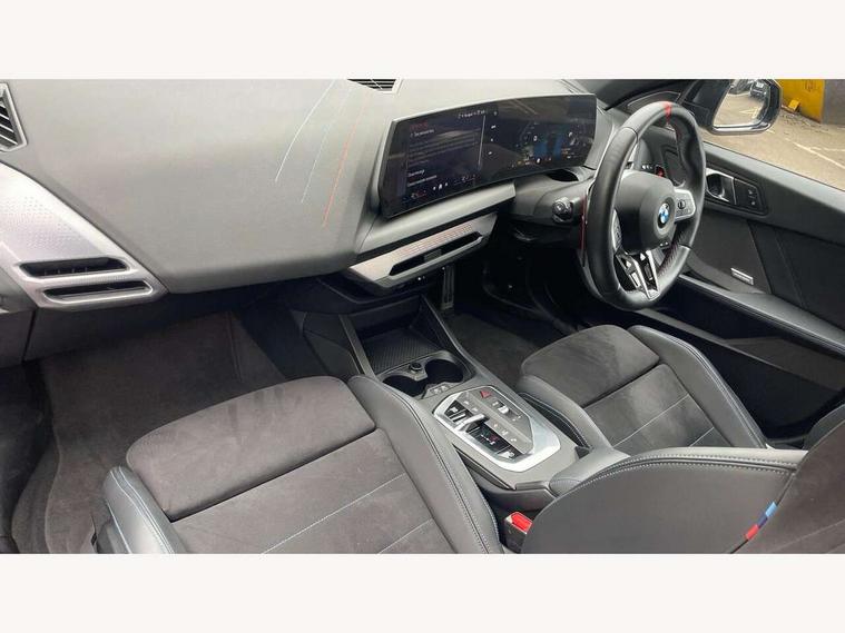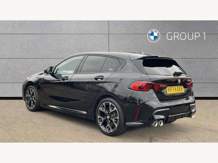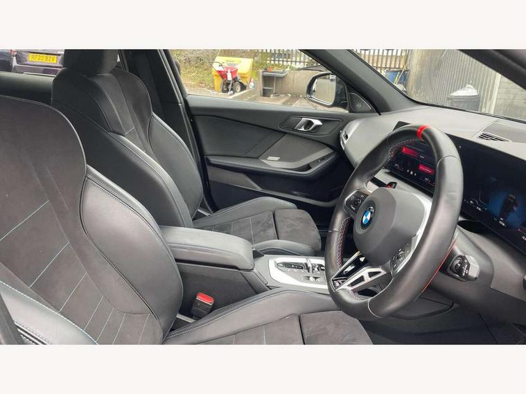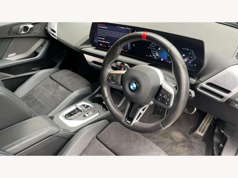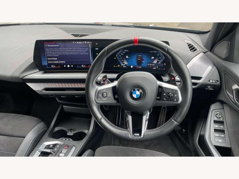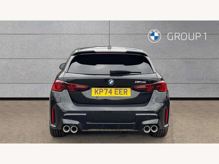 Active guard plus, Attentiveness assist, Bluetooth / WiFi interface for wireless connection of mobile terminal devices and audio streaming, BMW ConnectedDrive online services, BMW Live cockpit plus, BMW Teleservices, Check Control warning system for monitoring of lights and door/luggage compartment open warning, Cruise control with speed limiter, Eco pro mode, Electric power steering, Electro hydraulically controlled multi-plate clutch transfers drive to rear axle and with power take-off device located on the front differential., Energy efficient operating strategy, Front and rear parking sensors, Front axle single joint with specific axle kinematics to minimise drive influences on steering + provide increased rigidity agile driving behaviour, Gearshift time display in manual mode, Integrated owners handbook, Lane departure warning system, M Sports steering with M135i xDrive specific settings, Oil sensor for level and grade, On board computer, Optimum shift indicator, Park assist including reversing assistant, lateral parking aid and reversing assist camera, Personal Profile, Pull away assistant, Rigidly mounted rear subframe - Multi link construction with separate spring / damper configuration and excellent driving characteristics, Speed limit Info including no-overtaking indicator, Speedometer, Sporty fast gear shifting in sport mode, 49 litre fuel tank, Aluminium lightweight construction, Anti roll bar front and rear, Balancer shaft, Double VANOS, Drive Performance Control, Eight speed sport automatic transmission with gearshift paddle switches, Electronic differential lock, Electronic selector lever, Engine cover with M performance designation, High precision injection, Launch control, M Adaptive suspension, M135i specific heavily de-throttled engine intake air guide, M135i specific high-performance cooling package, M135i specific larger turbocharger with integrated divert-air valve, Petrol Particulate Filter, Twin tube gas filled shock absorbers with degressive characteristic curve, VALVETRONIC engine management, Variable, stepless and infinitely adjustable distribution of drive torque between the front and rear axles, xDrive intelligent all wheel drive with M135i specific reinforced components, DAB Digital radio, Harman/Kardon surround sound audio system with 464W amplifier power, 9 channels and 16 speakers, Auto dimming rear view mirror, Automatic headlight beam throw control, Automatic windscreen wipers and automatic headlight, Body colour door handles, Body colour roof trims, Cerium grey exterior mirror caps, Direction indicator side lights in exterior mirrors, Electrically adjustable exterior mirror with mirror adjustment switch on drivers armrest and aspheric on driver side, convex on passenger side, Exhaust tailpipe, Cerium Grey with bevelled finish - twin, round 100mm, left and right split, Fading support, Folding side mirrors with auto dimming/folding wing mirrors with auto dimming, Follow me home headlights, Front and rear bumper system with replaceable deformation elements, Front and rear electric windows with open and close fingertip control, anti trap facility and comfort closing, Front door sill finishers with M135i designation, Green tinted heat protection glazing, High gloss shadowline window frame, Recess cover mirror frames and B/C pillar embelisher trim, High level third brake light, Integrated front windscreen with washer jets, Kidney grille frame in Cerium Grey with Mesh design, LED daytime running lights, LED eyebrow turn indicators, LED Headlights, Lightweight engineering, M Performance exhaust system with valve control and minimised exhaust back pressure, M Performance specific setup, M sport roof spoiler, Matt black air guide grilles, Matt black wheel arch trim, Nearside reverse light in rear light cluster, Preparation for high beam assistant, Rear fog lights, Rear side wing doors, Rear window wiper, Reinforced crank drive, new pistons and adapted con rods, Shark fin antenna, Sun protection glass, Trailer stabilisation logic, Visible VIN plate, Welcome lighting, 12V power socket in front centre console with blanking plug, 3 rear seat head restraints, 3 seat bench in 2nd row, 3 spoke sports leather steering wheel with black leather and stitching, pearl chrome decorative finish, specific M Badge, Anthracite headlining, Black boot net with lashing eyes, Cargo function on 2nd seat row, Child seat ISOFIX attachment for two outer rear seats and front passenger seat with anchorage points, Conditioned based service, Driver and front passenger backrest net on rear, Driver and front passenger seat heating, Driver side folding compartment in instrument panel, Folding rear clothes hook, Four grab handles integrated in roof lining, Front and rear door pockets with bottle holders, Front and rear side armrest integrated into door trim, Front armrest, Glove compartment, Height adjustable front head restraints, Luggage compartment for bag hooks on left and right, foldable luggage compartment liner and four lashing eyelets, Manual adjust steering wheel, Multi-function controls for steering wheel, Rear seat backrest with manual 60:40 split folding with 3 top tether clips integrated on rear of seat panels, Single front passenger seat, Storage compartment in centre console, Storage compartment in luggage compartment, Stowage of the parcel shelf in luggage compartment trim, Sun visors with vanity mirrors and insert tab, Two front centre console cupholders, Type C two USB ports in rear centre console, Velour floor mats, Connected pack professional - 1 Series, Interior lights pack - 1 Series, M Sport exterior styling aerodynamics pack - 1 Series 135i, 2 tone horn, 3 point seatbelts on all seats, front pyrotechnic belt tensioners, stopper and belt force limiters, rear coded belt buckles, Airbags - Front driver/passenger, front and rear curtain head protection, front side, manual deactivation of front passenger airbag, Anti lock braking system (ABS) with brake assist, BMW emergency c