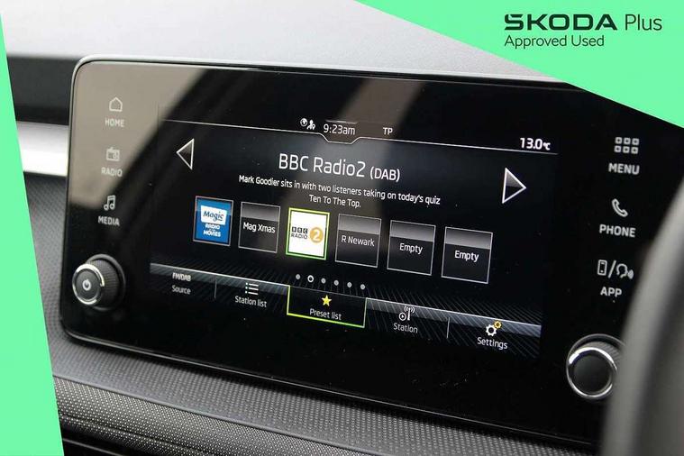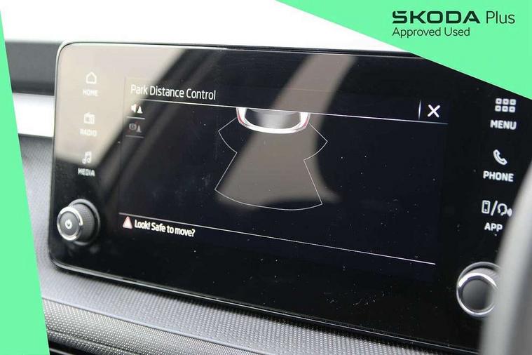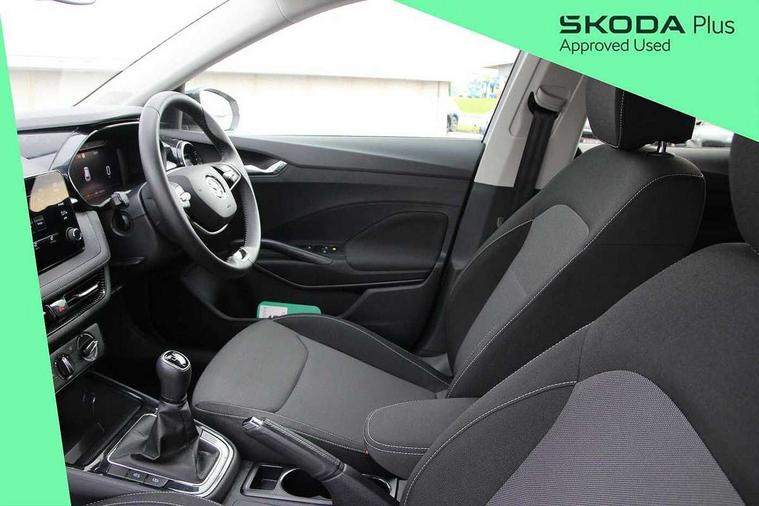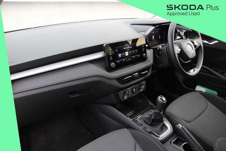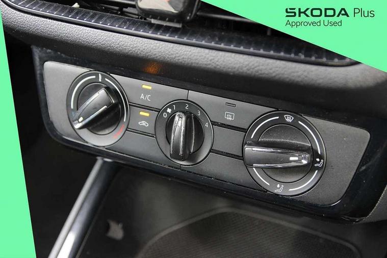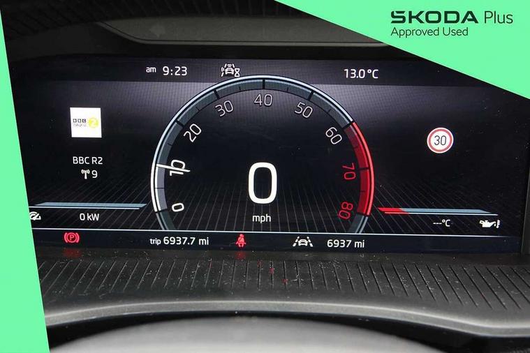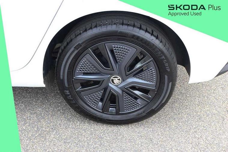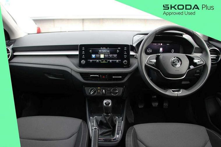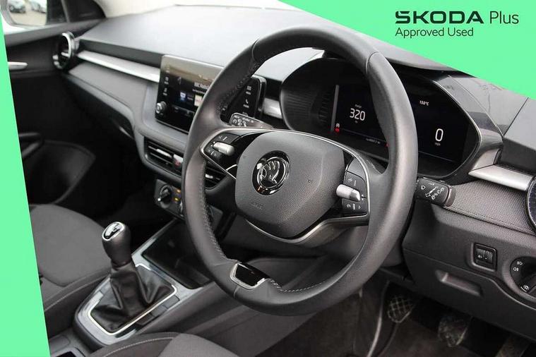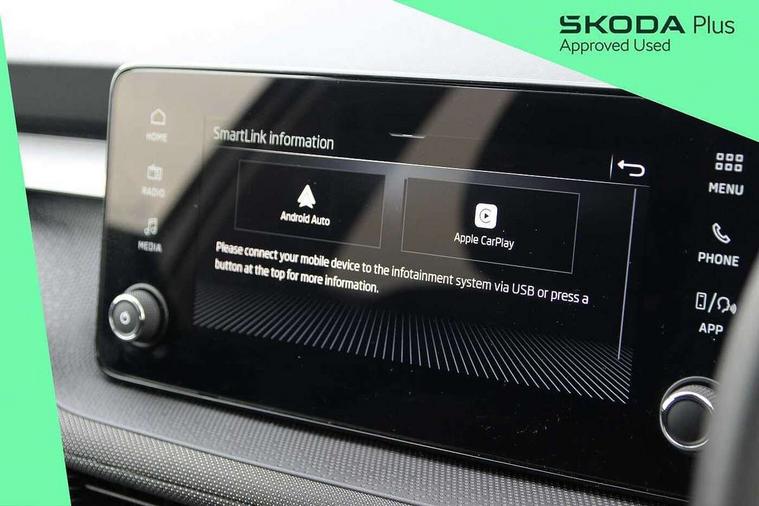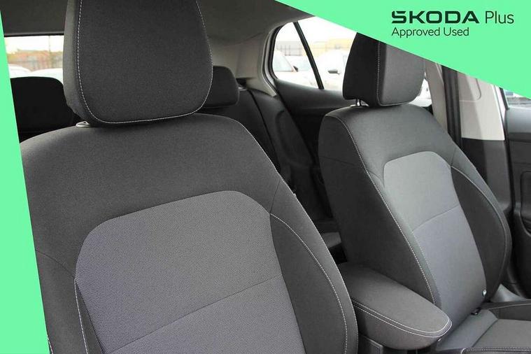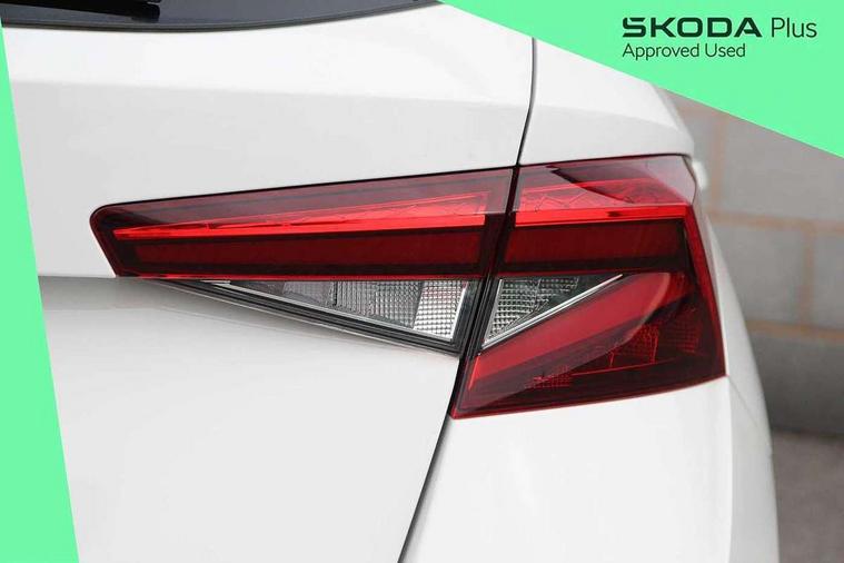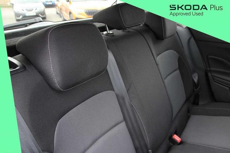 Advanced driver attention and drowsiness monitor, Bluetooth connection, Electromechanical power steering, Exterior temperature gauge, Service interval indicator, Traffic sign recognition, Virtual cockpit with 10.25" colour display, Wireless SmartLink for Apple CarPlay and Android Auto, 6 Speakers (4 in front and 2 in rear), Auxiliary socket for external MP3 player, DAB digital radio reception, Body coloured bumpers, Dimming rear view mirror with black frame, Door mirror integrated indicators, Front and rear electric windows, Front window wiper intermittent control, Headlight range control - Automatic, Ice scraper in fuel cap, LED daytime running lights with coming and leaving home feature, LED rear lights, Privacy glass, Rear LED fog light, Rear side wing doors, Rear window wiper with washing nozzles, Roof mounted spoiler, SKODA tailgate lettering in chrome, Third brake light, 2 reading lights in front and 2 reading lights in rear, 3 rear headrests, Backrest split and folding, Central console with removable cup holder and storage box, Chrome handbrake release button, Fabric upholstery, Front centre armrest, Gearshift knob/handle in leather, Grain satin black interior door handles, Hand brake lever handle in leather, Height adjustable front headrests, Height adjustable steering wheel, ISOFIX and TopTether anchorage points to the outer rear seats, ISOFIX and TopTether on the front passenger seat, Luggage compartment lighting, Manually adjustable lumbar support in front seats, Pollen filter, Rear seat bench unsplit, Single front passenger seat, Storm grey headlining, Sun visors with mirror and airbag label on passenger side, Textile floor mats, Ticket holder, Umbrella in drivers door, 3-point height adjustable front seats belts with pretensioner and force limiter, Automatic warning lights in case of crash, Driver and passengers airbag with switch off function, e-Call+, ESC including ABS, MSR, ASR, EDS, HBA and XDS, Front and rear seat belt warning, FRONT ASSIST (AEB City and AEB Inter Urban), Front side airbags, Head airbags, Hill hold control, One tone horn, Pedestrian protection, Three rear 3-points safety seat belts with pretensioner and force limiter including stop function for outer rear seat belts, Tyre pressure monitoring system, Anti-theft alarm system including immobiliser, interior monitoring, backup horn, and towing protection, Central locking with radio remote control, interior controls, SAFE function and 2 foldable keys, Colour Edition air vents, Grain satin black central console cover, Metallic grey upper decorative trim, Satin black door and side trim panel in front, Textile Kota grey lower decorative inserts, Anti-theft wheel bolts protection, Super-low rolling resistance tyres,