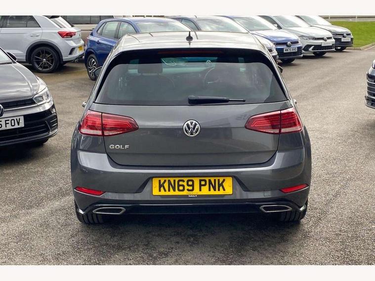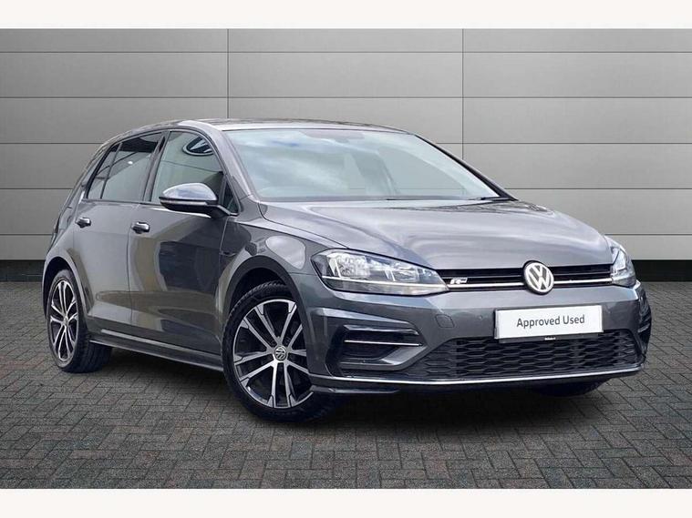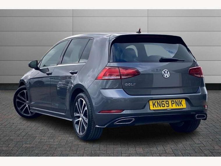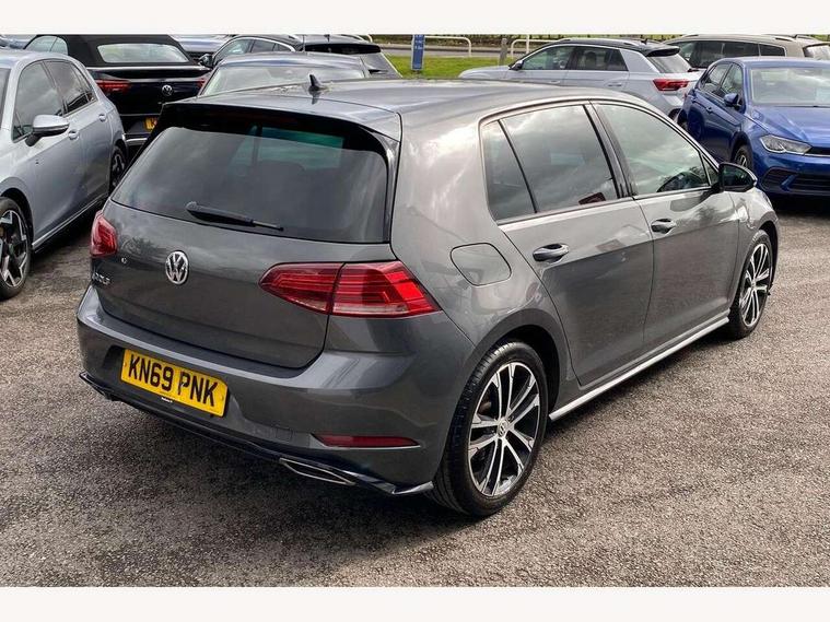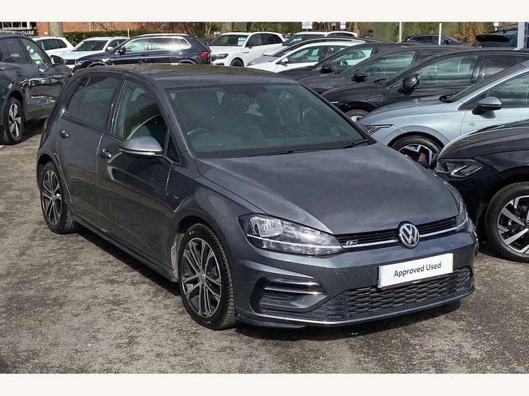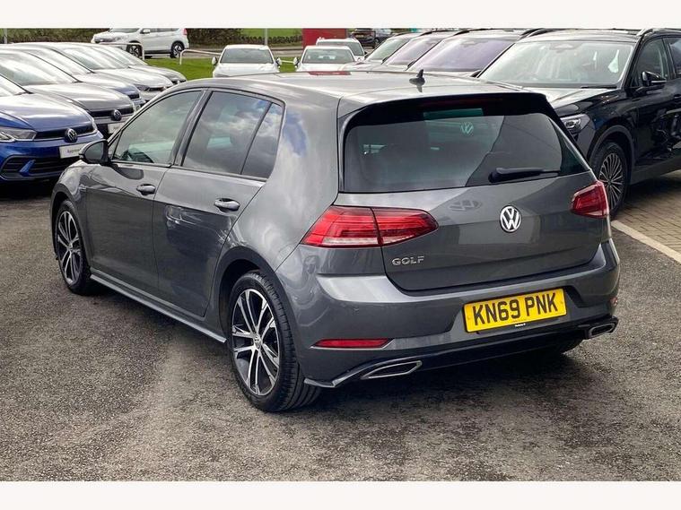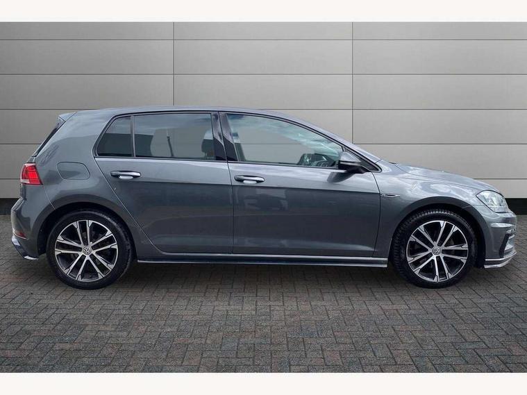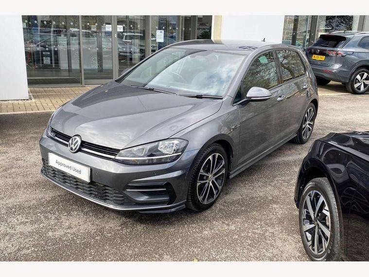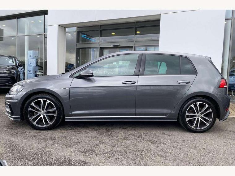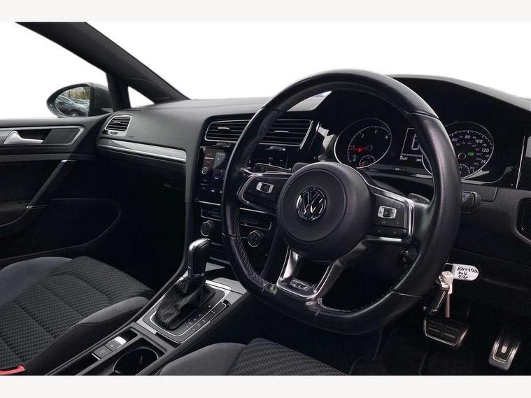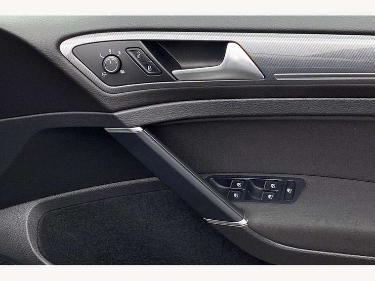 'Lights On' Reminder warning buzzer, ACC - Adaptive cruise control with front assist, forward collision warning, distance monitoring, city emergency brake and speed limiter, Bluetooth telephone and audio connection for compatible devices, Brake pad wear indicator warning light, Driver alert system, Driving Mode Selection with four preset modes - Eco, normal, sport or individual modes, Instrument cluster in white, Misfuelling protection device, Multifunction computer with visual gear change recommendation for fuel consumption, Power assisted speed sensitive electro-mechanical steering, Push tank flap, Speed limit display, Speedo, rev counter, electronic odometer, trip, service interval display, exterior temperature and fuel gauge, Startup screen with R-Line logo, Stop/start system, Think blue trainer driver tips and journey analysis, Warning buzzer and light for front seatbelts unfastened, Battery regeneration during braking, Diesel particulate filter, XDS electronic differential lock, Composition media system, DAB Digital radio receiver, Driver Personalisation profile selection, MP3/WMA compatability, Multi device interface (MDI) with USB connection, Premium USB cable in choice of either Apple or Android smartphone compatibility, SMS Functionality, USB and SD card connectivity, Black front air intake and radiator grille with chrome insert, Body colour bumpers, Body colour door handles, Body colour door mirrors with integrated indicators, Body colour rear roof spoiler, Dusk sensor + automatic driving lights, Electric front windows, Electric rear windows, Electrically adjustable and heated door mirrors, Fully galvanised body, Glossy black R-Line specific louver ventilation, Heated rear windscreen, High level 3rd brake light incorporating LED Technology, LED front fog lights with static cornering light function, Left and right chrome effect trapezoid dummy exhaust tailpipe surrounds, Radiator grille with R-Line logo, Range adjustable headlights via infotainment system with LED daytime running lights, Rear diffuser, Rear fog lamp, Rear number plate lights incorporating LED technology, Rear tinted glass 65% light absorbing from B pillar backwards, Rear window aerial, Rear window wash/wipe with intermittent wipe, Reflectors in all doors, Remote electrically foldable door mirrors, door mirror puddle lights and reverse activated kerb-view adjustment on passengers door mirror, Shiny black aerofoil downside, Sill extensions, Stainless steel door sill protection, Unique R Line badging, Windscreen wipers/ intermittent wipe + 4 position delay, 12V socket in luggage compartment, 3 rear headrests, 4 load lashing points in luggage compartment, 60/40 split folding rear seat backrest, Bag hook in luggage compartment x 2, Black decorative sleeve on gear handles, Black headlining, Black roof lining, Cooled glovebox, Dust/pollen filter, Embosseed R line logo on front sport seat backrest, Front + rear carpet mats, Front centre armrest with storage compartment and two rear air vents, Front seat back storage pockets, Grab handles front x 2, rear x 2 with integrated coat hooks, Height and reach adjustable steering wheel, Illuminated vanity mirrors, Instrument lighting white adjustable panel illumination, Interior light delay, Isofix preparation for 2 rear child seats, Leather gear knob and handbrake grip, Load through provision with rear centre armrest and cupholders x2, Luggage compartment lighting, Multifunction sports leather steering wheel with R-Line logo and decorative seams in crystal grey including paddle shift, Overhead storage box, Stainless steel pedals, Storage box in luggage compartment, Storage compartment in roof console with cover, Storage compartments in front doors, Storage compartments in rear doors, Stowable luggage compartment cover, Sun visors, Variable boot floor, height adjustable and removable, Ambient lighting pack - Golf, Convenience Pack - Golf, Light and Sight pack - Golf, Mirror pack - Golf, R Line Styling pack - Golf, 3 rear three point seatbelts, Airbags - Driver's and front passenger's, curtain airbag, Driver's knee, front side impact and passenger's airbag deactivation switch, Anti-lock Braking System (ABS) with Hydraulic Brake Assist (HBA), Automatic post collision braking system, Child locks on rear doors, Driver/Passenger optimised head restraints, Electronic parking brake with auto hold, Electronic stability control (ESC) including Electronic differential lock (EDL) and ASR (Traction control) with deactivation via infotainment system, Front ventilated disc brakes and rear disc brakes, Pre crash preventive occupant protection, Three point height adjustable front seatbelts with tensioners, Tyre pressure loss indicator, Alarm with interior protection and deactivation via infotainment system, Electronic engine immobiliser, Chrome plated air vent surround, Chrome plated electric mirror adjustment switch surround, Chrome-plated light switch surround, Dark Diamond decorative inserts in dash and door panels, Piano black decorative inserts in centre console, Steel space saver spare wheel,
