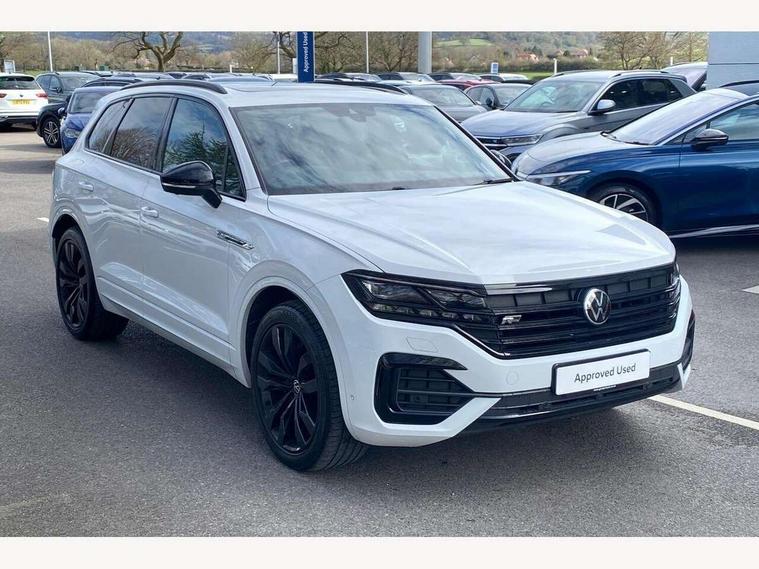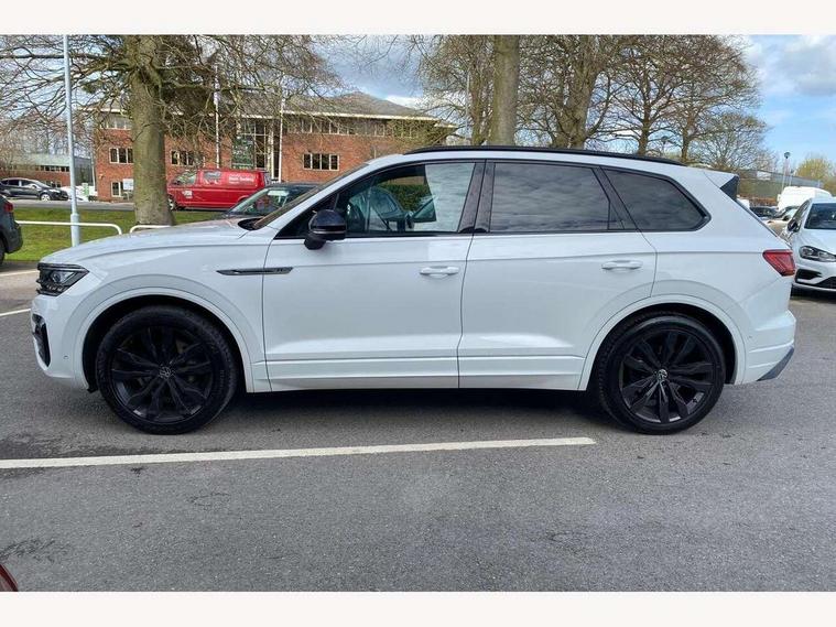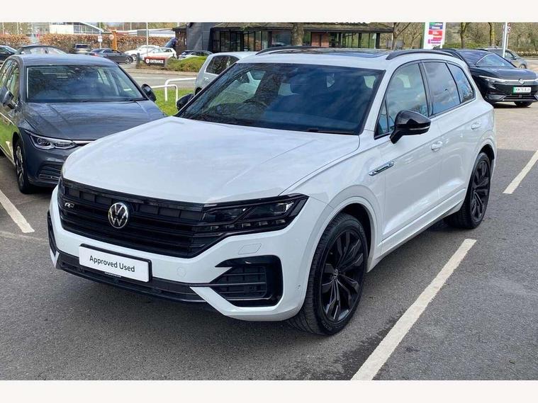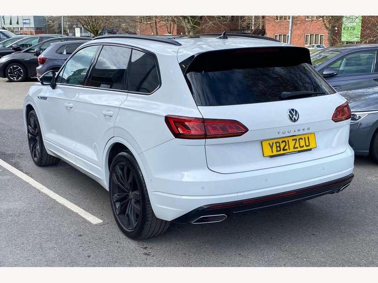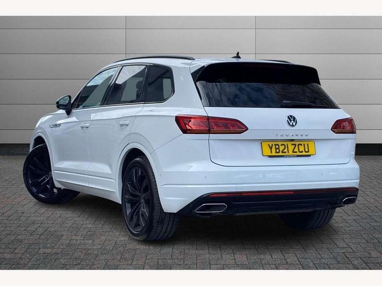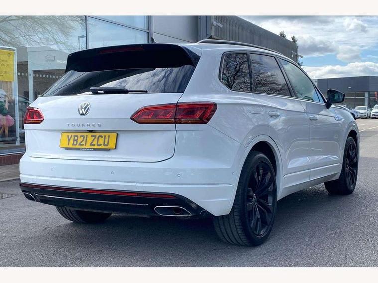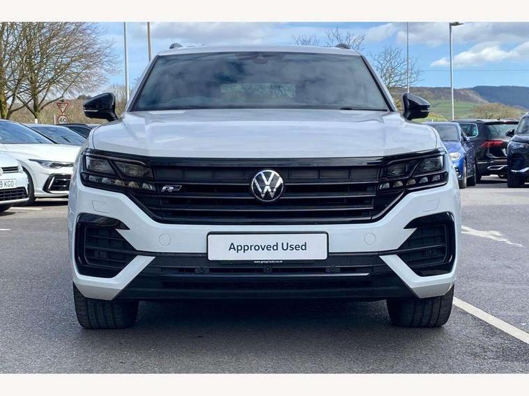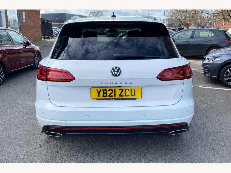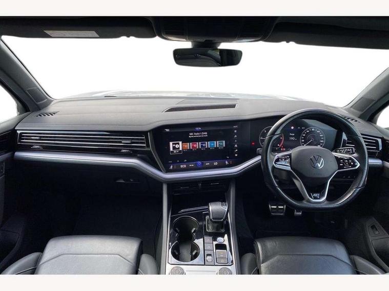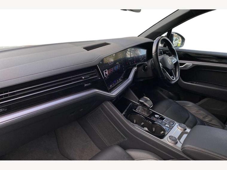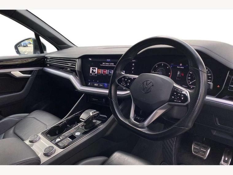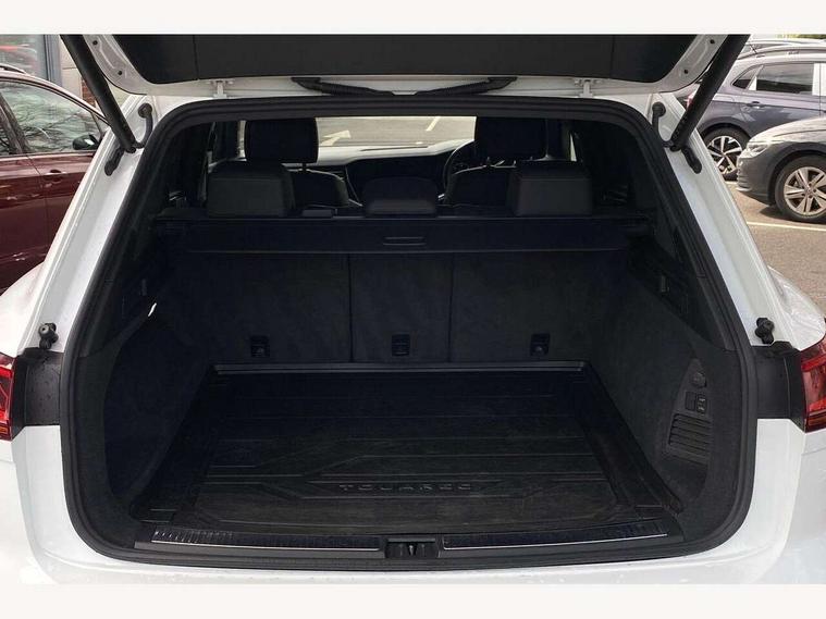 2D/3D map view, ACC - Adaptive cruise control with front assist, forward collision warning, distance monitoring, city emergency brake and speed limiter, Apple car play/Android Auto, Audible and visual fatigue detection system, Bluetooth hands free telephone connection, Car information display, Drive select with Damper control, Driver alert system, Dusk sensor, Dynamic road sign display camera controlled system with visual warning for traffic and road signs, eCall emergency system, Fully electric tailgate + keyless entry and start, Instrument cluster, MirrorLink, Multifunction camera with lane assist, Multifunction computer premium with 7" colour display, One touch indicators with repeat function, Service interval indicator, Speed sensitive power steering, Start/stop system with regenerative braking, Tailgate power latch, Think blue trainer driver tips and journey analysis, Traffic sign recognition, Voice control system, Wireless Smartphone charger, Torsen limited slip differential, DAB Digital radio, Dynamic navigation based on TMC+, Gesture control for infotainment system, Multi device interface (MDI) with illuminated USB-C connection, Music playback - MP3, WMA and AAC files, SD card slot, Simultaneous pairing of 2 compatible mobile devices, SMS functionality - read, compose and send SMS messages using touch-screen display, Title and cover art display, Volkswagen media control, Adaptive low beam for urban and motorway use, Auto dimming rear view mirror, Automatic coming/leaving home lighting function, Automatic headlights, Black anodised roof rails, Black door mirrors, Black rear diffuser, Black side window surrounds, Black upper and lower grille louvres extending into headlights and radiator grille, Body colour door handles, Body coloured wheel arches, C signature gloss black front air intake, Chromed tailpipe on the left and right integrated in the bumper with trapezoid design, Dynamic headlight range control, Electric front tilt/slide panoramic sunroof and fixed rear sunroof, Electrically power adjustable, heated, folding, auto dimming, front passenger exterior door mirror lowering function, Front and rear electric windows, Galvanised body, Gloss black finish B pillar, Gloss black rear diffuser, Headlight washers, Heat insulating glass in side and rear windows, Heated windscreen washer jets, IQ.Light-LED matrix headlight, daytime running light with dynamic cornering light and indicator, LED rear fog light, LED rear number plate lights, Plastic scuff plates in door apertures, Poor weather light, Puddle lights, Rain sensor, Rear wiper, 12V socket in front and rear centre console and boot, 2 Coat hooks on B pillar, 3 rear head restraints, 3 spoke sport heated leather multi-function sports steering wheel with gear shift paddles - generation 2, 4 way adjustable front head restraints, 4 way electric lumbar support for driver and front passenger, 4 zone climate control, 40:20:40 split folding slide/recline rear seat, B pillar vents, Black lower edge of door extending sills, Branded points of interest, Double sun visor for drivier and passenger with LED illuminated vanity mirrors, Electric luggage compartment cover, Folding rear centre armrest with 2 cupholders, Front + rear carpet mats, Front centre armrest with storage box, Gear shift indicator, Height/reach adjust steering wheel, Illuminated air conditioned glovebox, Isofix preparation for 2 rear child seats, Jack and tool kit, Leather trimmed gear knob with gloss black inlay/aluminum trim, Leatherette door trim, LED luggage compartment lighting, Load through provision, Luggage compartment with load lashing rings, Plastic loading edge protection, Rear seat remote release levers, Soul black headlining, Stainless steel pedals, Innovision cockpit pack - Touareg, R line styling pack - Touareg, 3 point front seatbelts with pre-tensioners, ABS, Active bonnet, Automatic post collision braking system, Curtain airbags, Driver/Front Passenger airbags, EBD + Brake Assist, EDL, Electronic parking brake with auto hold, ESC with ASR, Front seat side impact airbags, Hill descent control, Hill start assist, Passenger airbag deactivate switch, Seatbelt warning lamp and buzzer, Three 3 point rear seatbelts, Two tone horn, Volkswagen roadside assistance, Warning triangle and first aid kit, Alarm with interior monitoring in cab, backup horn and towing protection, Child security locks for front and rear doors, Electronic engine immobiliser, Remote central locking, Black decorative trims on the side windows, High gloss black centre console,
