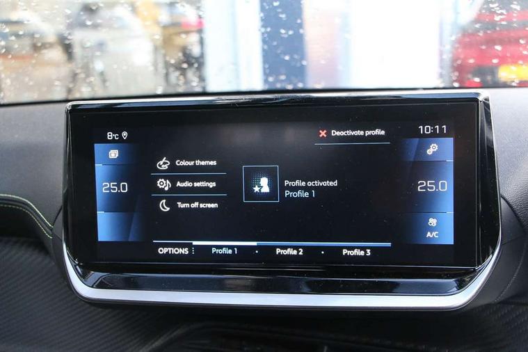 10" Capacitive colour touchscreen with connected 3D navigation, Bluetooth telephone facility, Driver attention warning, Exterior temperature indicator with ice warning, Lane keep assist, Mirror screen with mirror link, apple carplay and android auto, Multi function trip computer, PEUGEOT i-Cockpit with compact steering wheel, PEUGEOT i-Cockpit with configurable 3D headup instrument panel, PEUGEOT SOS and assistance, Push button start, Smart phone docking station, Speed limit recognition and recommendation, Start/stop system, Visio park assist 180 with colour reversing camera + front and rear parking sensor, 2 front USB socket with USB-C, 2x USB sockets in rear, 6 speakers radio with mp3 compatible, DAB Digital radio, Voice recognition for radio, navigation and telephony features, 2 X Rear number plate lights, Automatic hazard light activation upon heavy brake application, Automatic lights, Automatic windscreen wipers, Body coloured exterior door handles, Dark tinted rear side and tailgate windows, Diamond black rear spoiler (roof), Diamond Black roof, Electric front windows + one touch + anti-pinch, Electric rear windows with one touch/anti-pinch, Electrically adjustable, heated and power folding door mirrors, Follow me home headlights, Frameless electrochrome interior rear view mirror, Full LED headlights with smartbeam assist, Gloss black finish on B pillar, Gloss black rear cluster connecting strip, Gloss black wheel arch extensions, Gloss black window surround, GT model designation badging on C pillar, GT model designation badging on tailgate, Headlights left on audible warning, LED daytime running lights with 3 claw headlight with distinctive tooth design, LED side indicator lights integrated into door mirrors, LED third brake light, Model designation badges front and rear, Nera black door mirror shells, Peugeot scuff plates, Radiator grille - Dark chrome chequered and gloss black edge trim, Rear bumper with gloss black finish, Rear full LED 3D peugeot signature claw effect lights with daylight function, Rear lower bumper diffuser effect trim in gloss black, Rear reversing lights, Rear side wing doors, Rear windscreen wiper triggered automatically in reverse gear, Roof mounted aerial with fin design, Roof spoiler, Single chrome exhaust tailpipe, Tailgate with heated rear windscreen and wiper blade, Variable front intermittent wipers, 1/3 to 2/3 split folding rear seats, 12V socket, 3 seat bench in 2nd row, 8 Colour personalisable ambient lighting, Aluminium pedals and foot rest, Automatic air conditioning, Driver and front passenger seat manual adjustment in longitudinal and back rest angle, Driver and front passenger seat mechanical height adjustment, Driver and front passenger sport seats, Electric power steering with reach and rake adjustable steering column, Front and rear carpet mats in black with lime green stitch detail, Front centre armrest with storage compartment, Front LED interior light with 2 reading spotlights and rear interior light with timer, Gear shift indicator, High centre console with 2 cup holders, ISOFIX child seat mounting points on passenger seat, Lime green contrast stitching to armrest, front centre console, door panels and dashboard facia, Map pockets on the backs of the front seats, Mistral full grain perforated leather steering wheel with aikinite stitch detail and satin chrome 'GT' emblem, Piano keys gloss black plated toggle switches to access main functions of the vehicle, Piano keys gloss black plated toggle switches to access touchscreen functions, Rear centre headrest, Roof lining - Mistral black, Satin chrome gear lever with black stitching, Seatbelt unfastened on the move audible and visual alert for front and rear seats, Single front passenger seat, 3 rear 3 point seatbelts, ABS (Anti-lock Braking System) with EBD (Electronic Brakeforce Distribution) and EBA (Emergency Braking Assistance), Active safety brake with night function/cyclists/pedestrians, Adaptive driver and front passenger airbags with passenger airbag deactivation function, Child locking functionality on rear doors, Driver/front passenger side airbags, Electric parking brake, ESP with Hill Assist, Front and rear curtain airbags, Front and rear disc brakes, Front optimised safety headrests and 3 x rear retractable headrests with height adjustable, Front three point retractable seatbelts with force limiters, Tyre pressure sensor, Acoustic vehicle alert system (AVAS), Automatic door locking when moving off, Deadlock, Electronic code immobiliser, Remote central locking, Thatcham cat. 1 alarm with anti lift sensor, Carbon effect Dashboard, front and rear door panel finish, 17" Bronx two-tone alloy wheels, Space saver spare wheel,