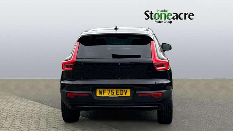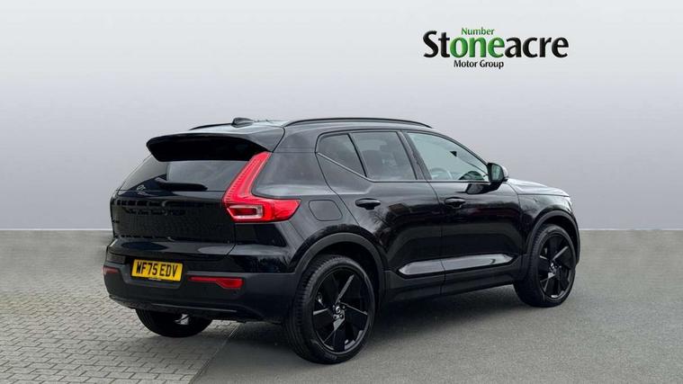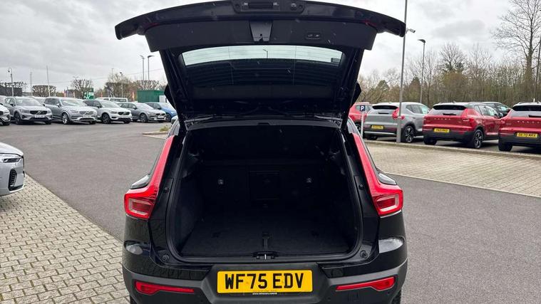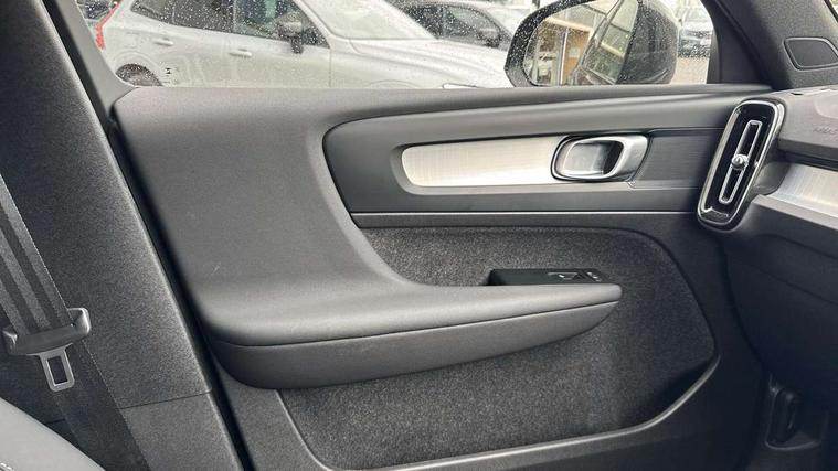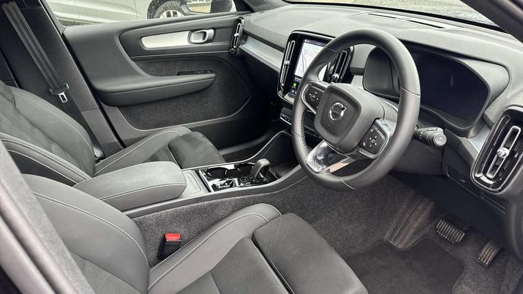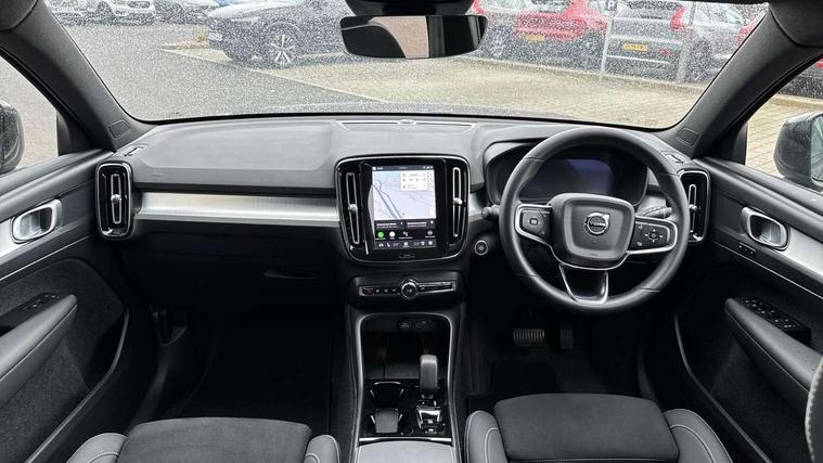 12.3" Progressive Driver Display, 9" centre console portrait touch screen, Adjustable steering wheel force, Android auto (Wired), Apple carplay (wired), Bluetooth handsfree system, Driver alert control, Driver assistance (pilot assist and adaptive cruise control), Driver awareness - Blind spot information system with steer assist, cross traffic alert with autobrake and rear collision warning and mitigation, E-call, Front and rear parking sensors, Front park assist, Google automotive services - Enabled entertainment apps, navigation with google maps, voice recognition with google assistant, Hands free power tailgate, Intelligent speed assistance, Lane keeping aid, Oncoming Lane Mitigation, Speed sensitive steering, Volvo cars services with app - Driving journal, engine remote start, remote door locking/unlocking and vehicle dashboard, Wireless/Inductive Mobile Phone Charging, Automatic transmission with start/stop and manual change functions, Dynamic chassis, DAB Digital radio, Steering wheel mounted remote controls, Adaptive brake lights with high level LED brake lights, Auto dimming feature for exterior door mirrors, Auto dimming interior mirror, Auto folding and heated power door mirrors, Automatic headlamp levelling, Automatic LED Headlights + Active high beam incorporating daytime running lights, Dark tinted windows - rear side windows and rear screen, Front aluminium tread plates, Front and rear electric windows, High gloss black front and rear skid plate, High gloss black front bumper deco, High gloss black front grille strikethrough and ironmark, High gloss black rear model, engine and volvo logo badges, High gloss black window trim, Home safe and approach lighting, Integrated roof rails in high gloss black, LED front fog lights, Puddle lights, Rain sensor with automatic windscreen wiper activation, Rear side wing doors, Rear wiper, Roof antenna, Roof spoiler, Visible VIN plate, 12V socket in front tunnel console and luggage compartment, 2-Zone electronic climate control with CleanZone air quality system and pollen filter, 3 seat bench in 2nd row, 3 Spoke tailored steering wheel with chrome trim, 60/40 versatile split folding rear seat, Centre console cupholders and storage, Charcoal carpet and floor mats, Charcoal headlining, Connect suede textile/microtech upholstery, Flexible load floor and grocery bag holder, Front headrests, Front seat cushion extensions, Glovebox bag hook, Heated front seats, Height adjustable passenger seat, Height/reach adjustable steering column, High gloss centre tunnel deco, High level illumination - Front door pocket, front side step (under door), tailgate, instrument panel, front door inlay, rear courtesy&reading lights, Integrated waste bin, Isofix attachments on outer rear seats, Load cover, Load protection net, Mid level illumination - Front footwell, luggage & glovebox compartment, front cabin courtesy & reading lights, illuminated vanity mirrors+ticket holder, Multi directional lumbar support for driver and passenger seat, Power driver seat with memory + exterior mirrors memory, Rear armrest with cupholders, Rear headrests, Single front passenger seat, Underfloor luggage compartment storage, Climate pack without heated front seats - XC40, 3x3 point rear seatbelts, City safety with steering support with Pedestrian + cyclist + front collision warning with full auto brake and rear auto brake, Driver and passenger airbags, Drivers knee airbag, Electronic parking brake with auto hold, First aid kit, Front and outer rear seatbelt reminder and pretensioners, Front seats SIPS airbags, Hill descent control - Off-road drive mode, Hill start assist, IC (Inflatable Curtains) - Full Length, Passenger airbag cut-off device, Power child locks on rear doors, Road sign information display, Run off Road Protection, SIPS (Side Impact Protection System), Slippery road and hazard light alert, Stability and Traction Control with Spin control, Engine Drag Control and Corner Traction Control, Tyre pressure monitoring system, Vehicle deceleration control with Anti-lock Brake System, Electronic Brake Distribution and Emergency Brake Assist, Warning triangle, WHIPS whiplash protection system - front, 2 x Key integrated remote control central locking including with deadlocking system and auto open/close windows, Anti-theft alarm including immobiliser/volume sensor + level sensor, Keyless drive includes keyless entry and keyless start, Locking wheel nuts, 20" 5 spoke high gloss black alloy wheels,