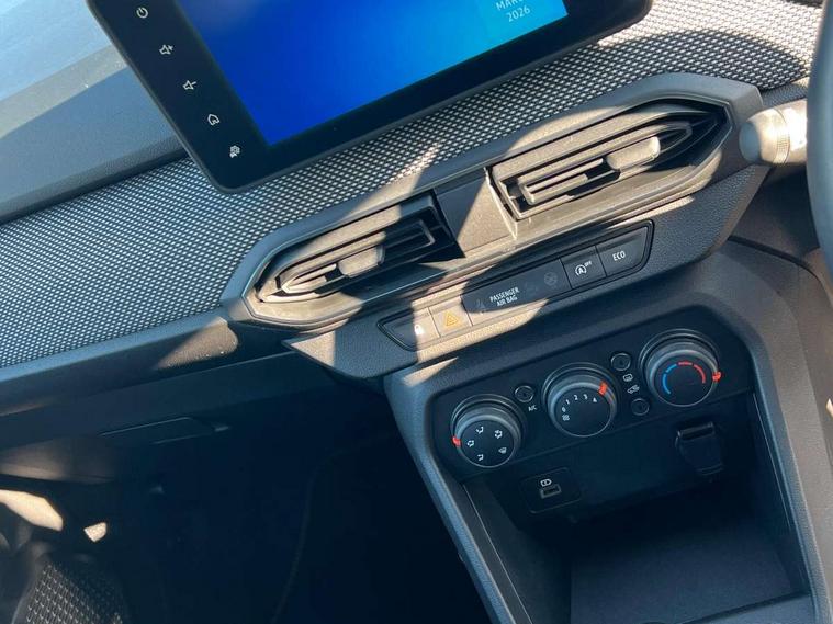 3.5" TFT instrument panel with on-board computer, Cruise control with speed limiter, eCall emergency call system, Eco mode, Electric power assisted steering, Rear parking sensors, Rev counter, Reversing camera, Stop/start system, 8" Media display - DAB radio, smartphone replication, bluetooth, 4 speakers, Apple CarPlay and Android Auto, USB connection for data transfer and charging, USB socket, 3 speed windscreen wipers, Auto lighting, Automatic wipers, Black radiator grille, Body colour door handles, Body colour door mirrors, Body coloured bumpers, Electrically adjustable and heated door mirrors, Front fog lights, Heated rear window, High level third brake light, LED automatic daytime running lights, LED Y-shape Dacia signature lighting, One touch electric front windows, Rear electric windows, Rear wash/wipe, Tinted windows, 1/3 to 2/3 split folding rear seats, 12 volt front socket, 12 volt rear socket, 3 height adjustable rear headrests, Double satin chrome air vents, Driver + passenger vanity mirrors, Fabric upholstery, Fixed smartphone holder on dashboard, Front armrest, Gear shift indicator, Height adjustable driver seat, Height adjustable front headrests, Height/depth adjustable steering wheel, Isofix points for child seats in both outer rear seats, Manual air conditioning, Satin chrome interior door handles, Soft feel steering wheel, Steering wheel controls, 3x3 point rear seatbelts, ABS and Emergency brake assist, Automatic emergency braking system, Child locks on rear doors, Door open warning, Driver airbag, ESC (Electronic Stability Control), ESP (Electronic Stability Program) + Hill Start Assist, Front curtain airbags, Front seatbelt pretensioners, Front side airbags, Height adjustable front seatbelts, Passenger airbag, Seatbelt reminder for driver and front passenger, Tyre pressure monitor, Automatic central locking, Immobiliser, Keyless entry, Remote central locking, Decopart on instrument panel and door with textile, 15" Flex wheels with full wheel cap,