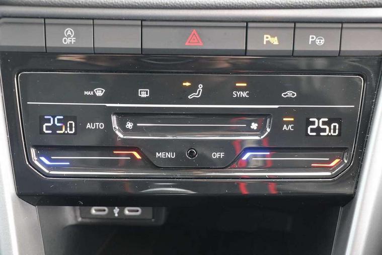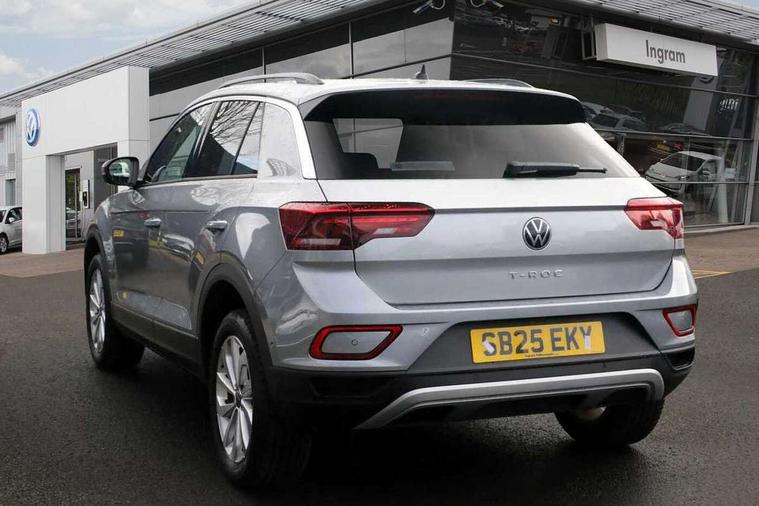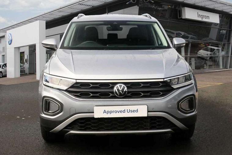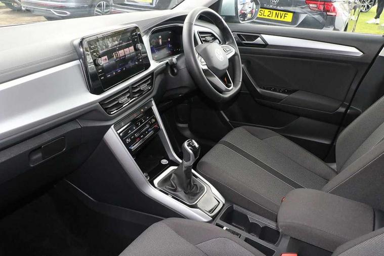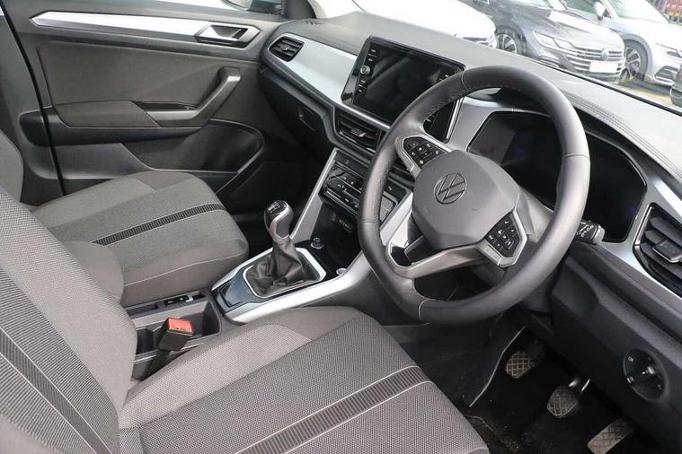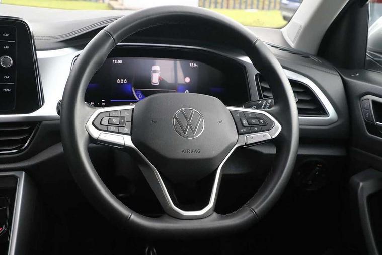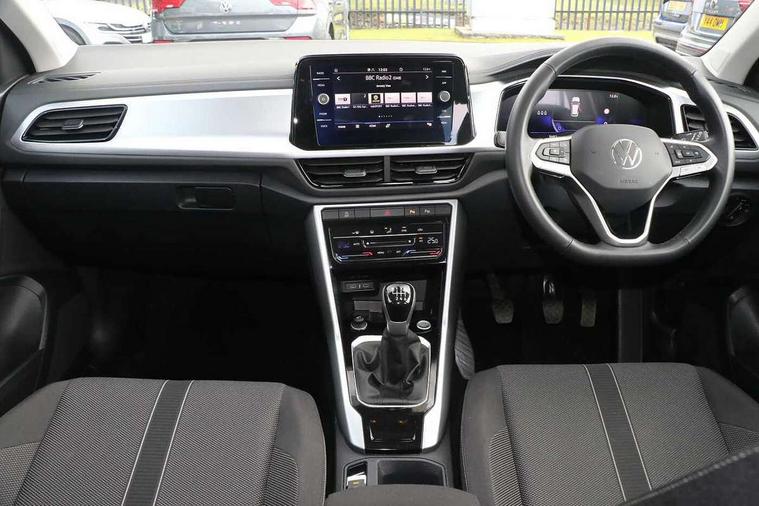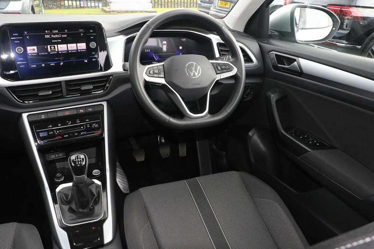 Advanced driver attention and drowsiness monitor, Dynamic road sign display, Emergency call service, Lane keeping system Lane Assist, Mobile phone interface, Modified key software - reduce switch off time for key status change to Long no motion, Online services, Park assist including front and rear parking sensors, Power assisted speed sensitive steering, Rear view camera, Service interval indicator, Tailgate/trunk lid release from outside, Think blue trainer driver tips and journey analysis, Warning sound and light for front seatbelts unfastened, Wireless app connect, Battery regeneration during braking, Front shock absorption, Rear shock absorption chassis with increased ride height, Start/stop function with battery regeneration, DAB Digital radio, Diversity antenna for FM reception, Music playback - MP3, WMA and AAC files, SD card slot, Simultaneous pairing of 2 compatible mobile devices, Title and cover art display, We Connect and We Connect Plus functionality, Auto dimming interior rear view mirror, Automatic hazard lights activation under emergency braking, Automatic headlight control with LED separate daytime running lights with coming/leaving home function, Black roof rails, Body coloured bumpers and radiator grille with chrome trim and front fog lamps with chrome bezel, Body coloured exterior mirror housings and door handles, Electrically adjustable and heated door mirrors, Extended roof spoiler, Exterior mirrors aspherical on driver side, convex on front passenger side, External USB type C socket and charging sockets, Front windscreen wiper with intermittent wipe and 4 position delay, Heated rear window, LED 3rd brake light, LED rear combination lamps, LED rear number plate lights, Power windows with comfort operation and circuit breaker, Privacy glass for rear side windows and rear window, Rain sensor, Rear exhaust tailpipe, Rear fog light on one side and reversing lights on both sides, Rear side wing doors, Rear wash/wipe with intermittent wipe setting, Remote electrically foldable door mirrors, puddle lights and reverse activated passenger's door mirror, 12V power socket in centre console, 3 rear head restraints, 3 seat bench in 2nd row, 4 load lashing points in luggage compartment, Air care climatronic air conditoning system with active combination filter and 2-zone temperature control, Black stitching for floor mats, Ceramique roof liner, Cloth upholstery, Door and side trim panel in cloth, Drawer under drivers seat, Driver/front passenger seat height adjustment, Front centre armrest, Front comfort sports seats, Front cupholders x 2, Front reading light, Front seat back storage pockets, Glove compartment door with light, Instrument lighting, white adjustable panel illumination, Interior ambient lighting and surround lighting, Interior light delay, Isofix child seat preparation, Leather gearshift handle, Load-through provision with cup holder when folded down ('Unsplit rear seat bench, split folding backrest, with centre armrest), Luggage compartment lighting, Lumbar support for driver's and front passengers seat, Non-folding front passenger seat backrest, Single front passenger seat, Storage compartment in left and right luggage area, Storage compartment in rear doors, Storage compartments in driver and front passenger doors, Sunvisors with illuminated vanity mirrors, Variable boot floor, height adjustable and removable, Driver assistance pack without proactive passenger protection - T-Roc Life/Match, 3 point height adj front seatbelts + pretensioners, 3 point seatbelts in outer rear with ECE label, ABS, Child locks on rear doors, City emergency braking and pedestrian monitoring, Driver and front passenger airbag with front passenger airbag deactivation, Driver and front passenger safety-optimised head restraints, Drivers seatbelt reminder, Electronic parking brake, Electronic Stability Control (ESC) inc EDL (Electronic Differential Lock) and ASR (Traction Control), Front and rear passengers curtain airbag system including front side airbags, Front disc brakes, Hill start assist, Predictive pedestrian protection, Rear disc brakes, Two tone horn, Tyre pressure loss indicator, Volkswagen roadside assistance, Alarm with interior protection, Keyless locking and starting system keyless access with safelock, Pewter matt decorative inserts for intrument panel, centre console and door panels at the front, Trims for alloy wheels,