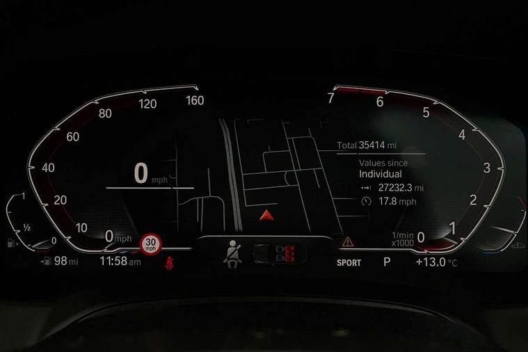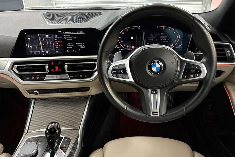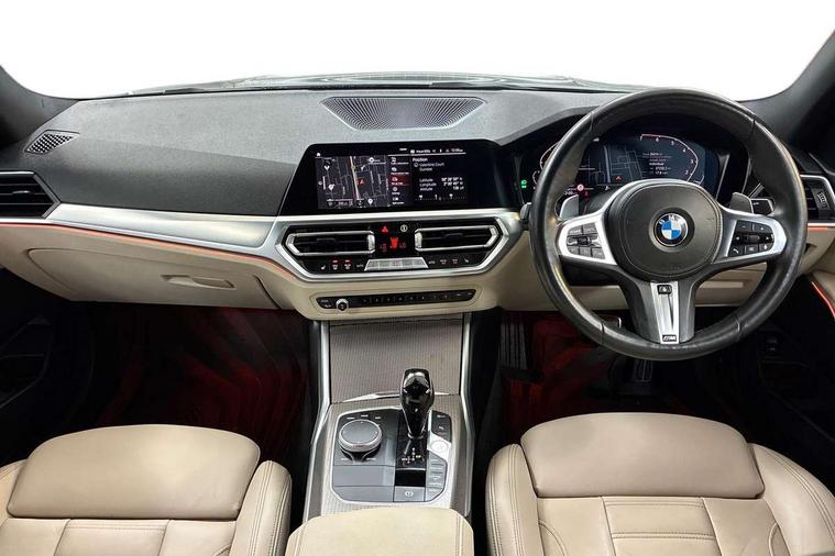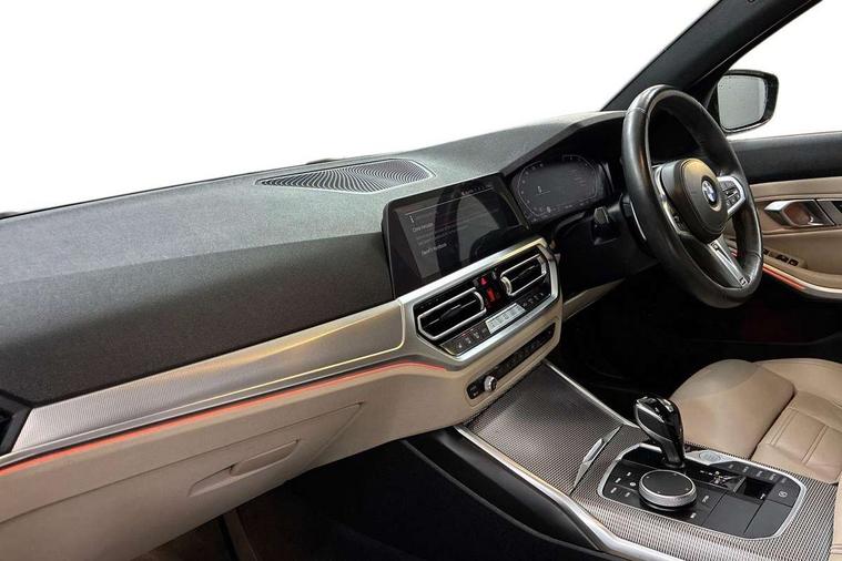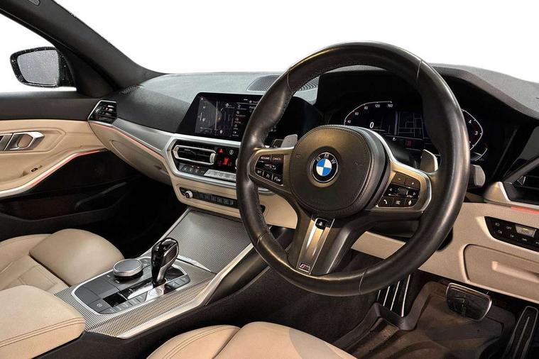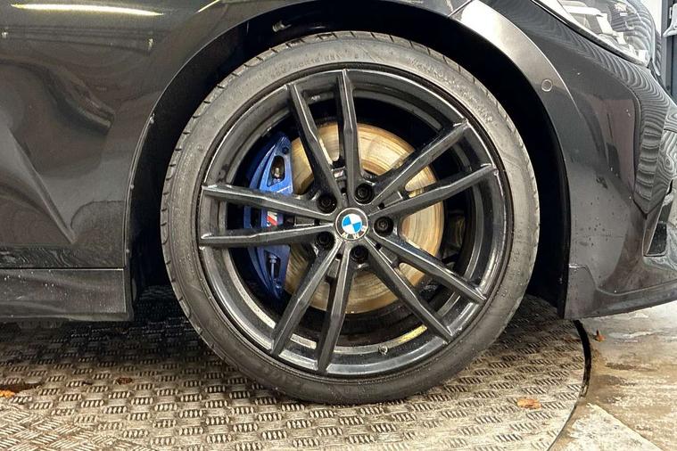 Active guard plus, Attentiveness assist, Auto start-stop, BMW Live Cockpit Professional sat nav system including 10.25" high resolution display and Intelligent Voice Assistant, BMW Online services, BMW Teleservices, Brake pad wear indicator in front and rear, Check Control warning system for monitoring of lights and door/luggage compartment open warning, Condition based service, iDrive controller on centre console, Instrument cluster with speedometer with mph readout, tachometer, fuel gauge and oil temperature gauge, Oil sensor for level and grade, On board computer - average speed+fuel consumption, service interval, clock/date, odometer/trip meter, outside temperature display and ice warning, Optimum shift indicator, Personal Profile, Variable sport steering, Battery cut-out switch, Electronic differential lock, Larger capacity fuel tank, M sport suspension, Sport automatic transmission with steering-wheel mounted gearshift paddles and launch control, Stroke dependent dampers, DAB tuner, Acoustic glazing, Active airstream chrome frame kidney grille with 8 high gloss black vertical slats, Automatic headlight beam throw control with load dependent regulating reaction, dynamic compensation of braking dive and acceleration squat, Black roof mouldings, Body colour - fuel filler flap, front and rear bumpers, door handles and mirror caps with integrated turn indicator + bottom segment in matt black, Dynamic brake lights, Extended LED headlights, Exterior mirrors - electrically folding with anti-dazzle, Front and rear bumper system with replaceable deformation elements, Front and rear electric windows with open and close fingertip control, anti trap facility and comfort closing, Front black door sill finishers with BMW designation, Green tinted heat protection glazing, High gloss shadow line exterior trim, Interior rear view electrochromatic mirror with automatic anti dazzle function, LED front fog lights, Left and right split exhaust tailpipes, Lightweight engineering, M aerodynamic body styling, M designation on left and right front side panels, M designation side badges, Matt black exterior B pillar, Model designation on right side of tailgate, Rain sensor with automatic headlight activation, Shark fin antenna, Two part LED tailights in L-shape with components in smoked glass, brake light, LED turn indicator and rear fog light, Visible VIN plate, Welcome lights in interior and door handle area, Windscreen wipers with integrated washing jets, 12V power socket in front storage compartment, 2 front cupholder in centre console with clamping elements and matt black inlay, 3 rear seats with non folding headrests with 3 point seat belts, 3 spoke M leather steering wheel, 4 pieces lashing eyelets in luggage compartment, 40:20:40 split folding rear seat, Ambient lighting, Anthracite headlining, Armrest integrated in front and rear door trim + front centre console armrest, Centred top Luggage compartment lights, Four grab handles integrated in roof lining, Front and rear door pockets, Front and rear velour floor mats, Front head restraints, Front sport seats, Heated driver and front passenger seats, Height adjustable mechanically and infinitely variable steering column, Illuminated glove compartment with separate small compartment, Interior lighting - front centre over interior mirror with soft light, rear centre and front and rear footwell lighting, Rear centre armrest with 2 cupholders, Rear centre console with storage compartment and ventilation grille, Steering column length adjustment lever, Sunvisors with vanity mirrors and ticket pocket, Three zone automatic air conditioning, Through loading system with 40/20/40 split folding rear seat, Toolkit located in luggage compartment, Connected pack professional - 3 Series Saloon/Touring, M Aerodynamics pack - 3 Series Saloon/Touring, 2 tone horn, ABS, Automatic Stability Control (ASC), BMW emergency call, Brake assist function, Brake drying, Brake energy regeneration, Braking pre-tensioning, CBC - (Cornering brake control), Child proof locking system in rear door, Child seat ISOFIX attachment rear outer seats, Crash sensor activating of airbags, Unlocking doors, hazard warning lights, fuel cut off, interior lighting+activation of safety battery terminal clamp, Driver and front passenger side airbags, integrated in the door side seat backrest bolsters for all seat variants, Driver/Front Passenger airbags, Dynamic brake control, Dynamic Traction Control - DTC, Electromechanical parking brake with automatic drive away release and auto hold function, Front passenger manual airbag deactivation, Head airbags for all 4 outer seats, Hill start assist, Seat belt security check for driver and front passenger, Side impact protection, Three 3 point seat belts on all seats including front belt stopper, pyrotechnic belt tensioners and belt force limiters, Tyre pressure monitoring with three level warning strategy, Variable torque distribution, Ventilated front and rear disc brakes, Warning triangle and first aid kit, Alarm system (Thatcham 1) with remote control and electronic engine immobiliser, Central locking switch for all doors, fuel filler cap and luggage compartment, Remote control with integrated key one button open/close vehicle and windows, sole opening of the luggage compartment lid and panic mode, Selectable automatic lock when driving away, Start/stop button with Comfort Go keyless engine start and auto Start/stop deactivation button, Vehicle key with M specific designation, Reduced rolling resistance tyres,