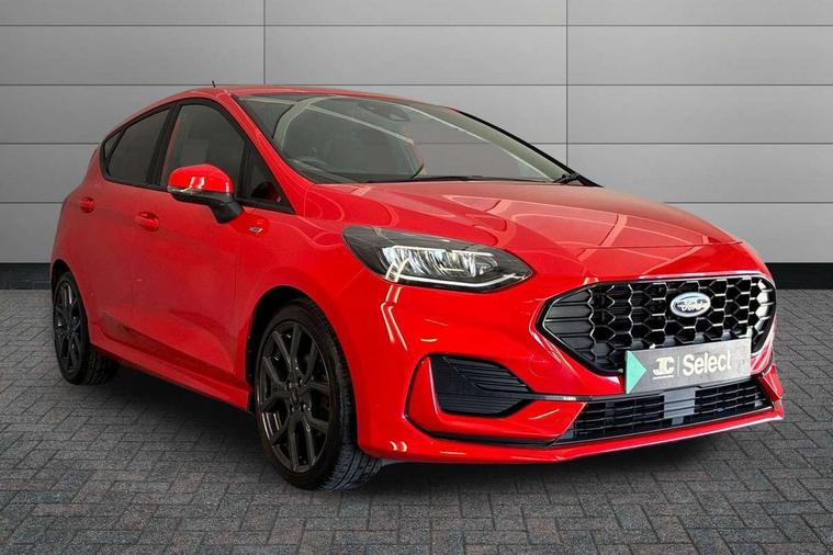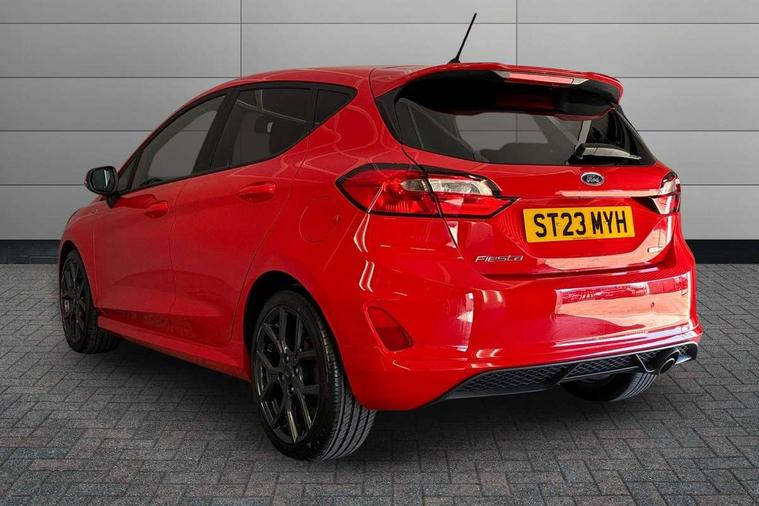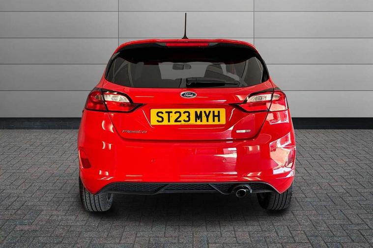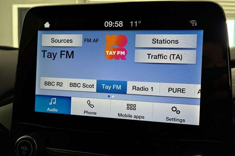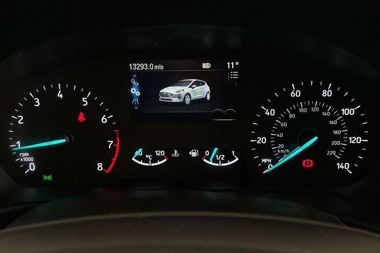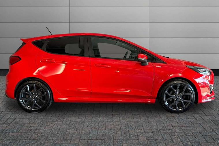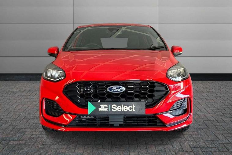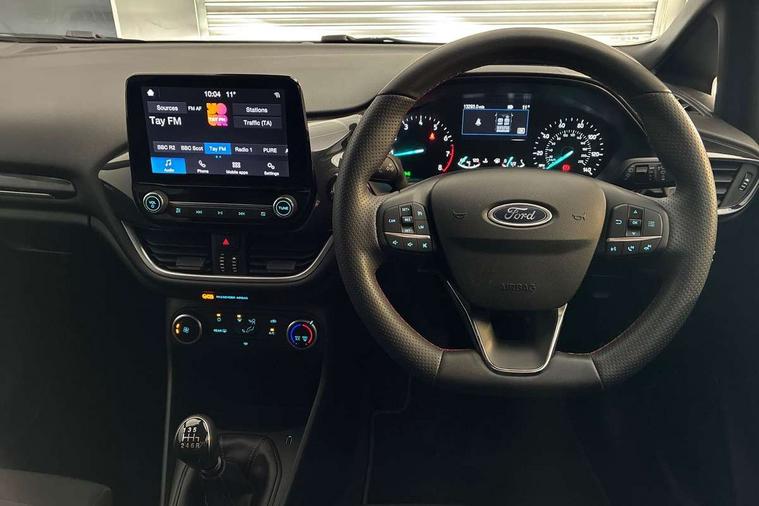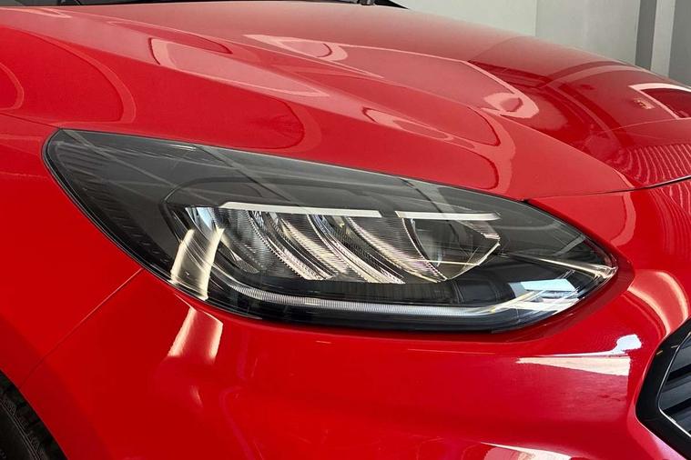 4.2" Colour TFT Ice blue illumination analogue cluster, Driver alert system, Electric power steering, Ford easy fuel, Lane keep assist, Lane keeping aid, Rear parking distance sensors, Selectable drive modes (Normal, Sport, Track), Trip computer, Sports suspension, 3rd brake light, Auto high beam, Automatic headlights, Body colour bumpers, Body colour large rear spoiler, Body coloured electrically operated with side indicators, Electric front windows/one touch facility, Electric rear windows, Quickclear heated windscreen, Rain sensing wipers and auto dimming rear view mirror, Rear privacy glass, Rear side wing doors, Rear wiper, Unique ST-Line grille, full bodystyling kit and large body coloured rear spoiler, 3 rear headrests, 3 seat bench in 2nd row, Adjustable head restraints, Black headlining, Centre console with opening armrest, 2x cupholders, 12v and USB, Cloth upholstery with red stitching, Leather gear knob, Manual 2 way passenger seat adjust, Manual 4-way driver seat adjust, Manual air conditioning, Premium floor mats, Sensico wrapped steering wheel, Single front passenger seat, 3 point seatbelts on all rear seats, Electronic stability control with hill start assist, Front and rear seat belt warning, Manual child lock in rear doors, Tyre pressure monitoring system, Keyless start with 'Ford Power' starter button, MyKey system, Remote central locking, Thatcham alarm with power door dead locks, 17" 5x2 spoke alloy wheels with rock metallic finish,