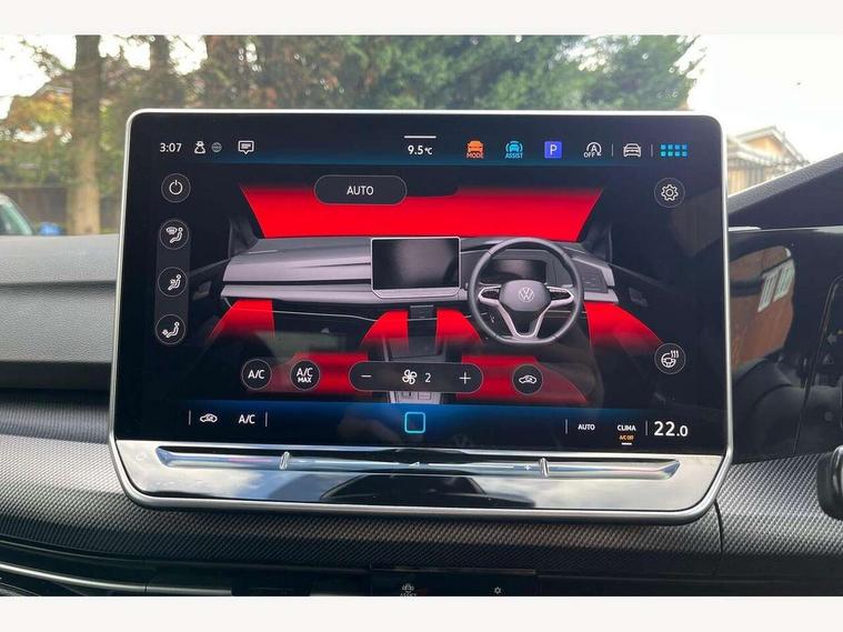 Activated carbon canister, Adaptive cruise control (ACC) with speed limiter and front assist (reacting to vehicles pedestrians and cyclists), Advanced driver attention and drowsiness monitor, Driver alert system, Dynamic road sign display, Dynamic steering, E-Sim card for online connectivity, eCall emergency call system, Front and rear parking sensors, Lane keeping system, Multi-color Digital cockpit pro, selection of different info profile possible, Multifunction camera for distance control, Navigation system, Oncoming vehicle braking when turning including swerve support, Power assisted speed sensitive steering, Preparation for light assist system, Speedo, rev counter, electronic odometer, trip, service interval display, exterior temperature and fuel gauge, Voice Control with voice enhancement, Warning signal and warning light for front and rear seatbelts not fastened, We connect plus preparation, We connect preparation, Wireless app connect, Hybrid propulsion system, Petrol Particulate Filter, Start-stop system with battery regeneration (recuperation - energy recovery during braking), XDS electronic differential lock for improved traction and handling, Comfort telephony + wireless charging, without wireless aerial connection, Digital radio reception (DAB), Diversity antenna for FM reception, Infotainment system with 12.9" display, 3rd brake light, Auto headlights, Automatic headlamp activation with Coming home and Leaving home feature, Body colored bumpers in R-Line style, Body colour door handles, Chrome plated radiator grille inserts and light switch surrounds, Exterior mirrors convex on the left and aspherical on the right, Front and rear electric windows, Heat insulating windshield made of laminated glass, LED daytime running lights, Rear exhaust tailpipe, Rear fog light on one side and reversing lights on both sides, Rear side wing doors, Rear windscreen washer and wiper with interval delay, Remote electrically foldable door mirrors, puddle lights and reverse activated passenger's door mirror, Welcome light with surround lighting, 12V socket in front centre console, 12V socket in luggage compartment, 2 USB C ports in front, 2 USB charging sockets on the centre console in the rear charging capacity upto 45W, 3 rear head restraints, 3 seat bench in 2nd row, Ambient lighting with 30 colour incl. LED light unit in front footwell with selectable light colour, Brushed stainless steel pedals, Carpet mats, front and rear, Door insert, side trim panel and arm support in leatherette, Front centre armrest, Front passenger seat, Front seat lumbar support adjuster, Front sports seats, Integrated front head restraints, ISOFIX anchors for child seats on outer rear bench seats and on front passanger seat compatible for i-Size, Luggage compartment lighting, Manual height adjustable front seats, Plastic gear knob, Rear cupholder and loadthough, Sardegna cloth upholstery with front and outer rear seats Art Velour inner sides of bolsters, Soul black instrument panel, Split folding backrest with centre armrest and unsplit rear seat bench, Storm grey roof lining, Sun visors with illuminated vanity mirrors, 3 point height adj front seatbelts + pretensioners, 3 rear three point seatbelts, ABS, Autonomous emergency braking front assist with pedestrian and cyclist monitoring, Child locks on rear doors, Driver and front passenger airbag with front passenger airbag deactivation, Electronic parking brake with auto hold, ESC (Electronic Stability Control), Extended pedestrian protection measures, Hill start assist, Rear disc brakes, Two tone horn, Tyre pressure monitoring system, Volkswagen roadside assistance, Alarm with interior protection, Anti theft wheel bolts, Preparation for alcohol interlock, Decorative inserts carbon grey for dashboard and front door trim panels,