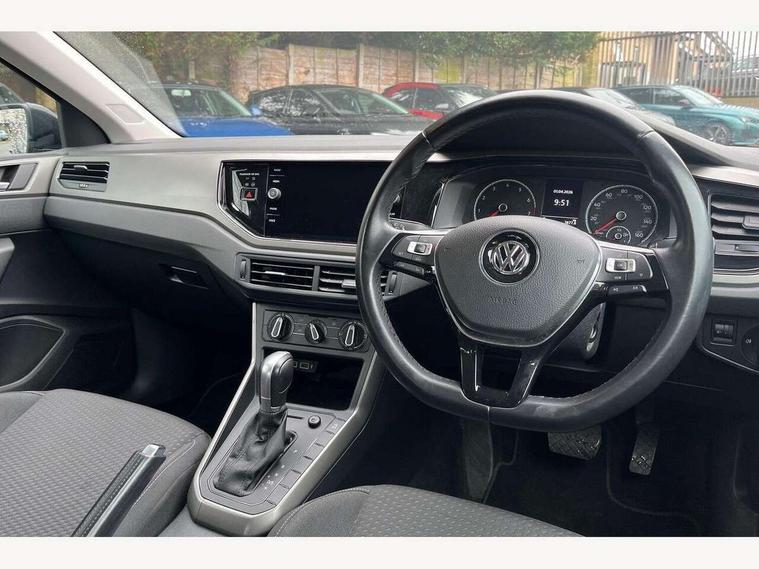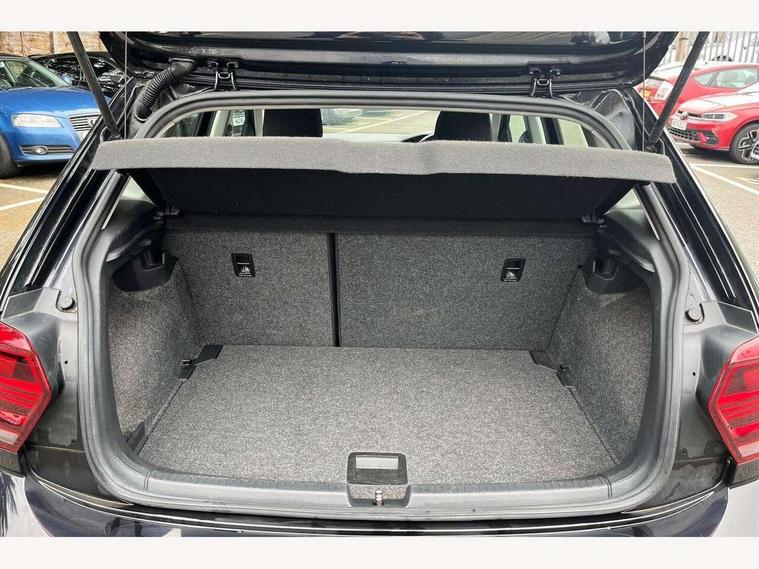 App-Connect, Bluetooth Telephone preparation, Discover navigation + European map data, Driver alert system, Multifunction colour display, PAS - speed related, Service interval indicator, Start/stop system, Trip computer, Warning buzzer and light for front seatbelts unfastened, Battery regeneration during braking, 6 speakers, Composition media system with radio, glovebox mounted CD, colour touch screen, SD card, aux-in, USB, multimedia interface, DAB Digital radio, Black grille with chrome surround, Black radiator grille with chrome insert, Body colour bumpers, Body colour door handles, Body colour rear spoiler, Body coloured side sills, Electric front windows, Front wash/wipe with interval delay, Fully galvanised body, Heat insulating tinted glass, Heated rear window with auto timer, High level 3rd brake light, LED daytime running lights, LED rear number plate lights, Rear electric windows, Rear windscreen washer and wiper with interval delay, 12V power socket in centre console, 2 bag hooks in luggage compartment, 2 cupholders, 3 rear head restraints, 3 spoke steering wheel, 4 grab handles, 60/40 split folding rear seat, Centre console storage, Chrome interior door handles, Chrome plated light switch, Driver/front passenger seat height adjustment + underseat drawers, Driver/passenger sunvisors with illuminated vanity mirrors, Dust/pollen filter, Front door pockets, Front seat backrest storage nets, Front/rear reading lights, Gear lever gaiter in high glass black trim surround, Glovebox, Handbrake grip button in chrome effect, Height/reach adjustable steering column, Instrument lighting, white adjustable panel illumination, Interior light with delay, Isofix Preparation 2 Rear child seats, Jack and tool kit, Luggage compartment cover, removable, Luggage compartment lighting, Multifunction leather steering wheel with leather gear knob/handbrake grip, Storage compartment in front doors, Storage compartment in rear doors, Storage compartment under front seats, Sunglasses holder, Variable boot floor, Variable Luggage compartment, Light and sight pack - Polo, 3 point height adj front seatbelts + pretensioners, 3x3 point rear seatbelts, ABS, Automatic post collision braking, Driver/front passenger airbag, Driver/Passenger whiplash optimised head restraints, ESP with EDL + ASR, Front and rear passengers curtain airbag system including front side airbags, Front disc brakes and rear drum brakes, Front passenger airbag deactivation, Hill hold control, Hydraulic Brake Assist (HBA), Two tone horn, Tyre pressure monitoring system, Alarm with remote central locking and interior protection, Electronic engine immobiliser, Air vents in High gloss black, Black high gloss trim, Full size spare wheel,