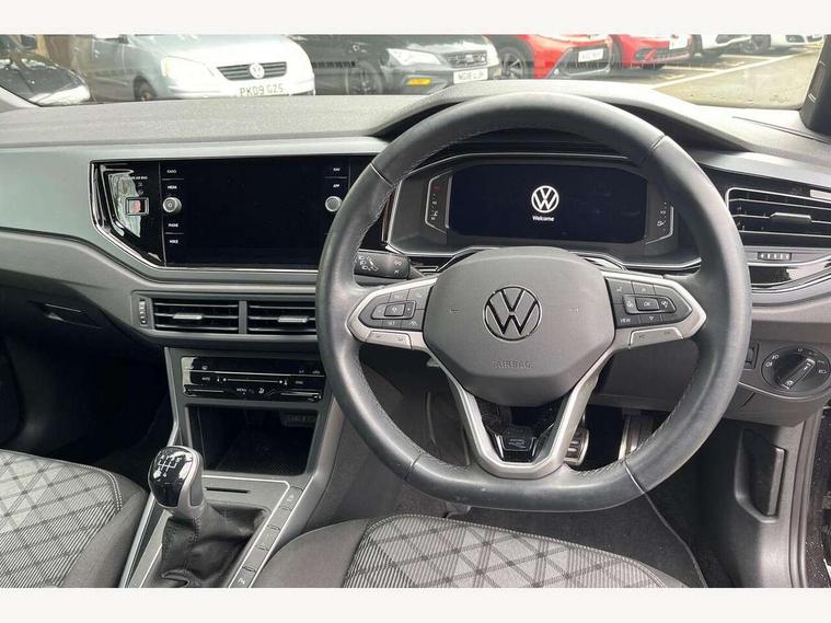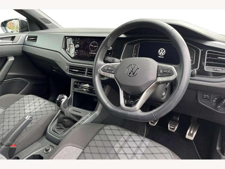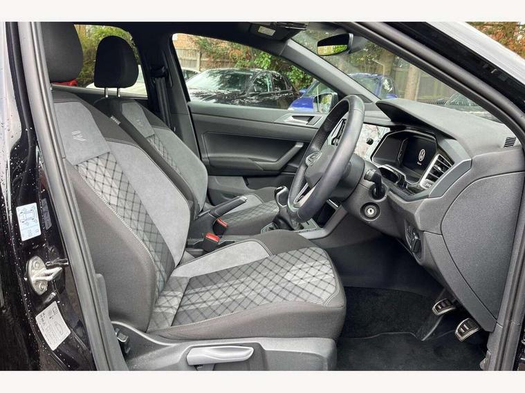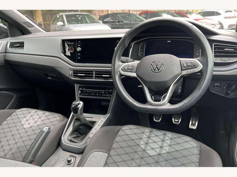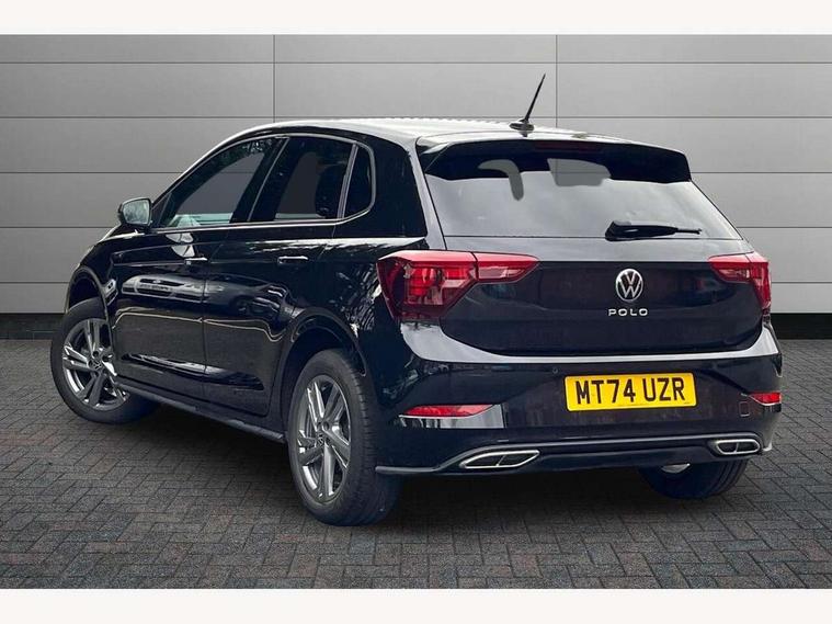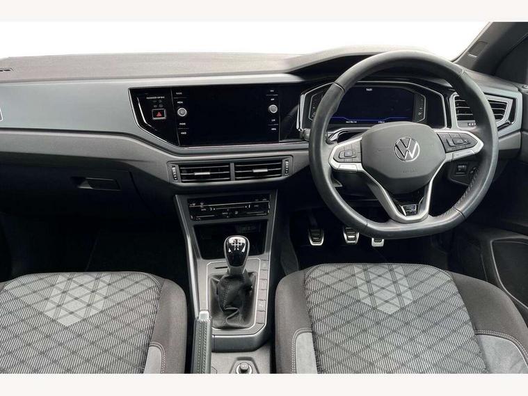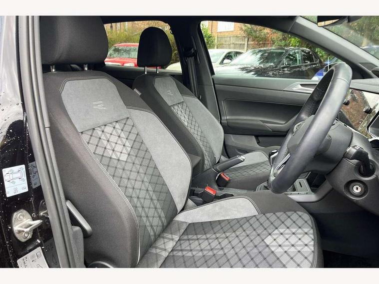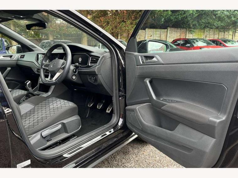 Advanced driver attention and drowsiness monitor, Bluetooth mobile phone interface, Digital Cockpit Pro with 10.25" Display, Dynamic road sign display, Emergency call service, Multifunction camera, Power assisted speed sensitive steering, Predictive adaptive cruise control without follow-to-stop and speed limiter, Preparation for We connect and We connect plus, Speedo and rev counter, electronic odometer, trip, service interval display and fuel gauge, Standard rear axle, Travel Assist - Lane keeping system and traffic jam assist, Travel assist including emergency assist, Trip computer, Warning signal and warning light for front and rear seatbelts not fastened, Washer fluid level indicator, Wireless app connect, Front wheel drive, Rear shock absorpion, Start-stop system with battery regeneration (recuperation - energy recovery during braking), DAB Digital radio, Diversity antenna for FM reception, Front and rear 6 speakers, Body colour bumpers, Body colour door handles, Electric front windows, Front scuff plates with R-Line logo, Heat insulating darkened glass in side and rear windows, Heat insulating glass windscreen, Power folding adjustable/heated exterior mirrors and front passenger exterior mirror lowering function, Rear electric windows, Rear fog light, Rear side wing doors, Rear windscreen washer and wiper with interval delay, Third brake light, 12V power socket in centre console, 2 USB-C ports in the front, 2 USB-C charging sockets on the center console in the rear, 3 rear head restraints, 60/40 split folding rear seat and rear seat bench not split, Air care climatronic air conditoning system with active combination filter and 2-zone temperature control, Black roof lining, Carpet mats, front and rear, Chrome plated radiator grille inserts, air vent surrounds and light switch surrounds, Door and side trim panel, Driver and front passenger seat height adjustment, Driver/passenger sunvisors with illuminated vanity mirrors, Front centre armrest, Front footwell illumination, Front seat backrest storage pockets, Front sports comfort seats, Handbrake lever handle in leather, Headliner in recycled material, Isofix child seat preparation easy-fit (for two outer rear seats, and front passenger seat) compatible with I-size, Karoso artvelours cloth upholstery, Leather trimmed gear knob, LED interior light with switch off delay and dimmer, 2 reading lights front and rear, Luggage compartment cover, Luggage compartment floor, Luggage compartment lighting, Lumbar adjustment for front seats, Multifunction steering wheel, Single front passenger seat, Stainless steel pedals, Standard pedal cluster, Light and sight pack - Polo R-Line/Black Edition, 3 point height adj front seatbelts + pretensioners, 3x3 point rear seatbelts, ABS, Driver and front passenger airbag with front passenger airbag deactivation, Drivers and front passengers safety optimised head restraints, ESC (Electronic stability control) + EDL (Electronic Differntial lock) and ASR (Traction control), Extended and predictive pedestrian/ cyclist protection, Front curtain and side airbags with center airbag, Hill hold control, Manual child lock in rear doors, Single tone horn, Tyre pressure loss indicator, Alarm with interior protection, Anti-theft alarm system with interior monitoring, backup horn, and towing protection, Anti-theft wheel bolts, Electronic engine immobiliser, Chrome applications on rotary light, mirror adjustment, window regulator switches, outlet with frame in black, Dark grey anodised matt decorative inserts in dash and front door panels, 16" Valencia alloy wheels, Low rolling resistance tyres,
