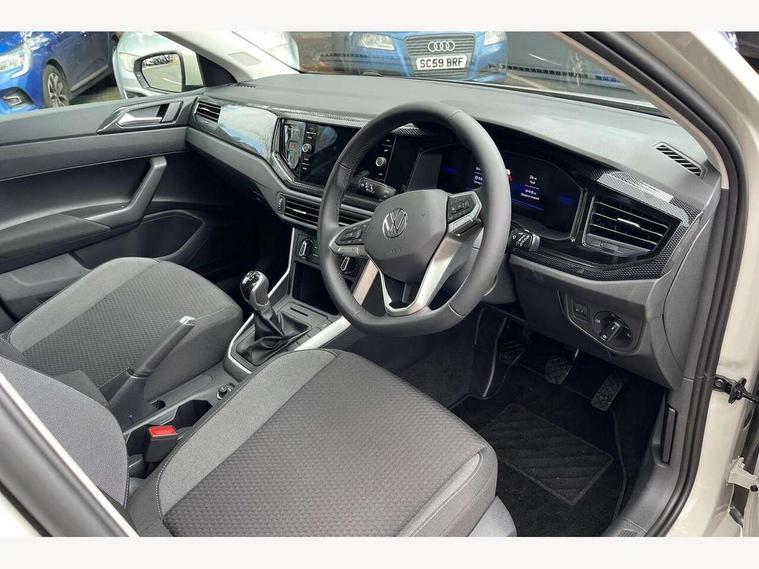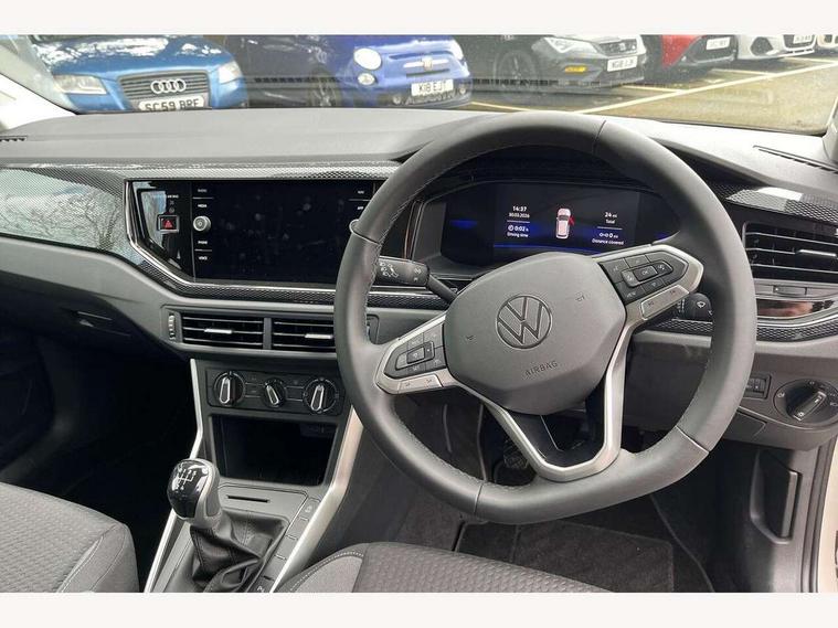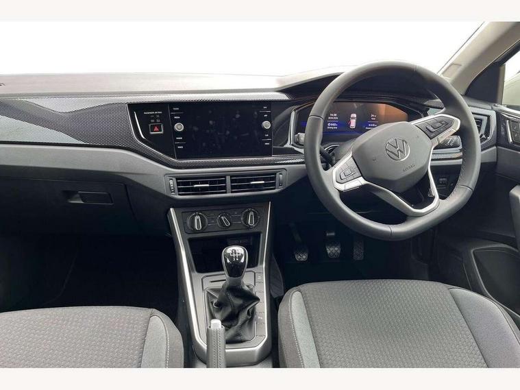Bluetooth mobile phone interface, Driver attention monitor driver alert system, Dynamic road sign display, Emergency call service, Mobile phone preparation with inductive charging function, Multifunction front facing camera for distance control, Park distance control, Power assisted speed sensitive steering, Predictive adaptive cruise control, Preparation for navigation system with media and internet package, Preparation for We connect and We connect plus, Rear view camera, Speedo and rev counter, electronic odometer, trip, service interval display and exterior temperature gauge, Standard rear axle, Travel Assist - Lane keeping system and traffic jam assist, Travel assist including emergency assist, Trip computer, Warning signal and warning light for front and rear seatbelts not fastened, Washer fluid level indicator, Wireless app connect, Front wheel drive, Rear shock absorpion, Start-stop system with battery regeneration (recuperation - energy recovery during braking), DAB Digital radio, Diversity antenna for FM reception, Body colour bumpers with chrome inserts, Body colour door handles, Body colour door mirrors, Electric front windows, Engine badge deletion, Headlight range adjustment, Heat insulating and laminated safety glass windshield, LED 3rd brake light, LED Headlights, LED rear combination lamps, Power folding adjustable/heated exterior mirrors and front passenger exterior mirror lowering function, Rear electric windows, Rear fog light, Rear side wing doors, Rear tinted glass from B-pillar backwards approx 65% tinted, Rear windscreen washer and wiper with interval delay, 12V power socket in centre console, 2 front and 2 rear reading lights with switch off delay and dimmer, 2 USB-C ports in the front, 2 USB-C charging sockets on the center console in the rear, 3 rear head restraints, 60/40 split folding rear seat and rear seat bench not split, Carpet mats, front and rear, Ceramique roof lining, Chrome plated radiator grille inserts, air vent surrounds and light switch surrounds, Door and side trim panel, Driver and front passenger seat height adjustment, Driver/passenger sunvisors with illuminated vanity mirrors, Front centre armrest, Front seat backrest storage pockets, Front standard seats, Handbrake lever handle in leather, Hartley/Thomas cloth upholstery, Headliner in recycled material, Isofix child seat preparation easy-fit (for two outer rear seats, and front passenger seat) compatible with I-size, Leather trimmed gear knob, Luggage compartment lighting, Removable luggage compartment cover, Removable luggage compartment floor, Single front passenger seat, Standard climatic zones, Standard pedal cluster, Three spoke leather wrapped multifunction steering wheel, Carpet mats pack - Polo, Light and vision pack - Polo, 3 point height adj front seatbelts + pretensioners, 3 point seat belt for centre rear seat, 3 point seatbelts, outer rear with ECE lable, ABS, Driver and front passenger airbag with front passenger airbag deactivation, Drivers and front passengers safety optimised head restraints, ESC (Electronic stability control) + EDL (Electronic Differntial lock) and ASR (Traction control), Extended and predictive pedestrian/ cyclist protection, Front assist with autonomous emergency braking (for Adaptive Cruise Control ACC up to 130 mph), Front curtain and side airbags with center airbag, Front disc brakes, Hill start assist, Manual child lock in rear doors, Rear drum brakes, Single tone horn, Tyre pressure loss indicator, Alarm with interior protection, Anti-theft alarm system with interior monitoring, backup horn, and towing protection, Anti-theft wheel bolts, Electronic engine immobiliser, Lava stone black gloss/matt decorative inserts in dash and front door panels, 16" Torsby alloy wheels, Low rolling resistance tyres,
