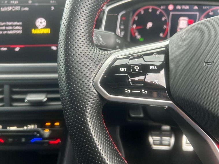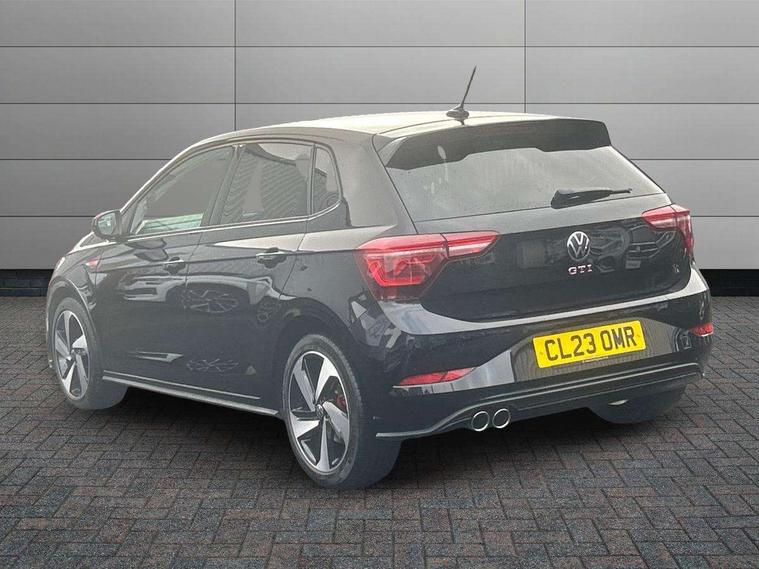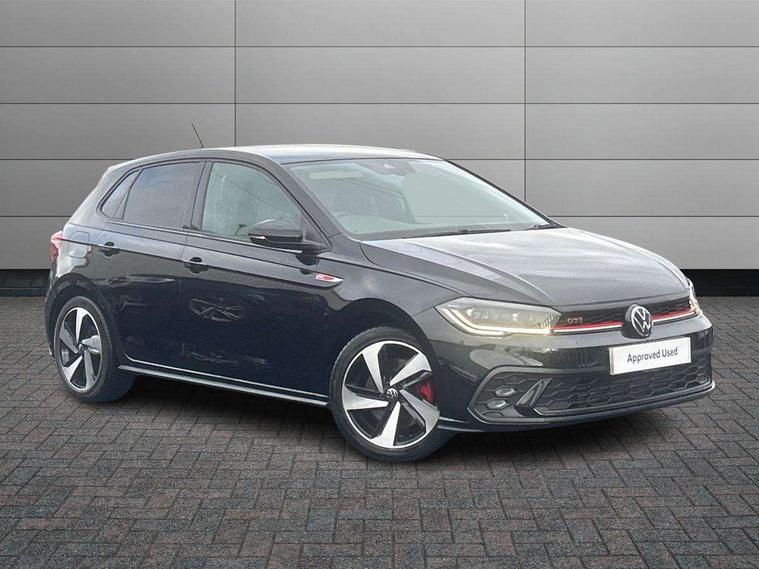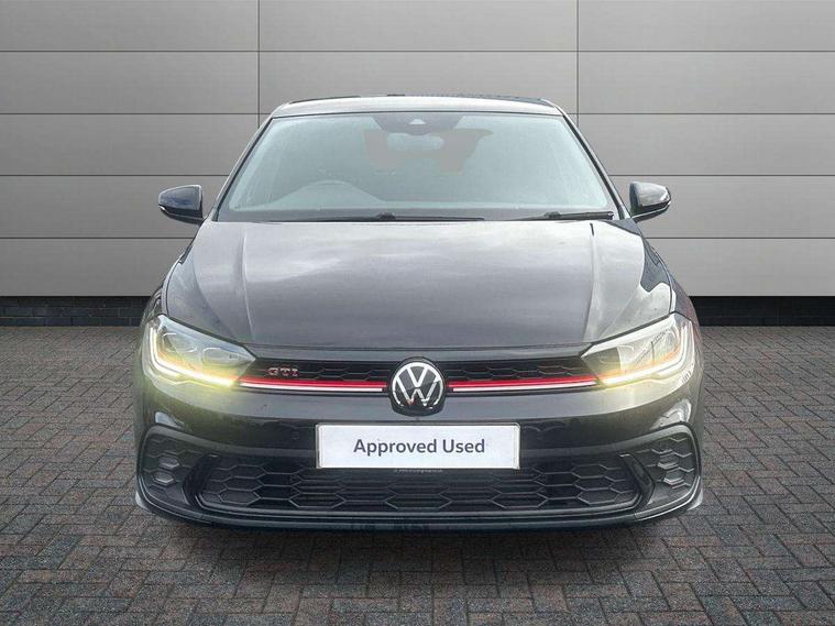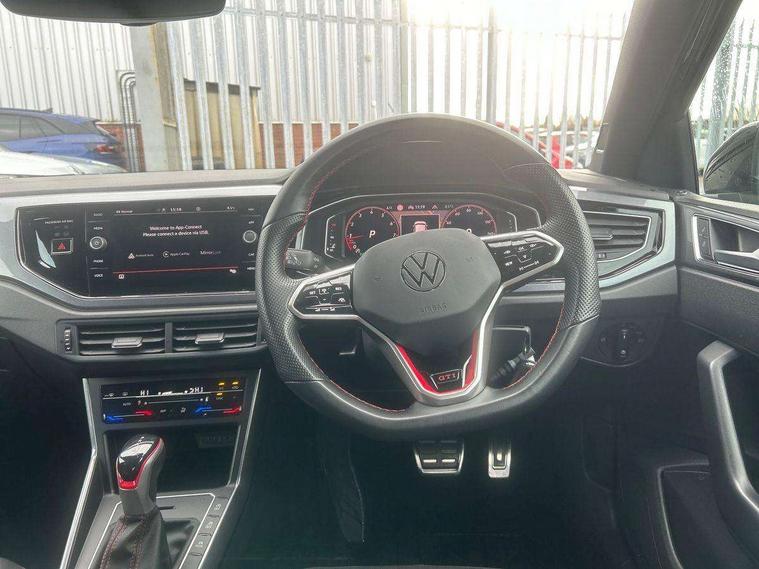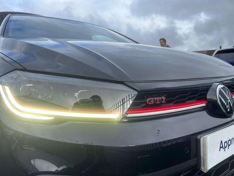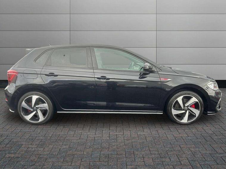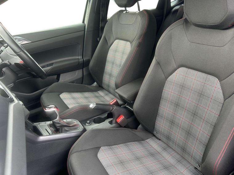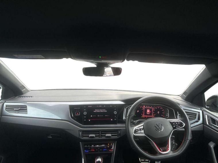 Adaptive cruise control with follow-to-stop and speed limiter, Bluetooth mobile phone interface, Digital Cockpit Pro with 10.25" Display, Driver alert system, Dynamic road sign display, Eco mode, Emergency call service, Power assisted speed sensitive steering, Preparation for We connect and We connect plus, Speedo and rev counter, electronic odometer, trip, service interval display and fuel gauge, Travel Assist - Lane keeping system and traffic jam assist, Travel assist including emergency assist, Trip computer, Warning signal and warning light for front and rear seatbelts not fastened, Washer fluid level indicator, Wireless app connect, Adaptive chassis control, Front wheel drive, Heavy duty rear axle, Rear shock absorpion sports version, Sports select suspension lowered by 15mm, Start-stop system with battery regeneration (recuperation - energy recovery during braking), DAB Digital radio, Diversity antenna for FM reception, Front and rear 6 speakers, Body colour bumpers, Body colour door handles, Electric front windows, Front scuff plates in aluminium with GTI logo, Heat insulating darkened glass in side and rear windows, Heat insulating glass windscreen, Power folding adjustable/heated exterior mirrors and front passenger exterior mirror lowering function, Rain sensor, Rear electric windows, Rear fog light, Rear side wing doors, Rear windscreen washer and wiper with interval delay, Sport bumpers with air intakes with honeycomb structure, Third brake light, Twin chrome exhaust tailpipes, 12V power socket in centre console, 2 USB-C ports in the front, 2 USB-C charging sockets on the center console in the rear, 3 rear head restraints, 60/40 split folding rear seat and rear seat bench not split, Air care climatronic air conditoning system with active combination filter and 2-zone temperature control, Black roof lining, Chrome plated radiator grille inserts, air vent surrounds and light switch surrounds, Door and side trim panel, Driver and front passenger seat height adjustment, Driver/passenger sunvisors with illuminated vanity mirrors, Front + rear carpet mats in recycled material, Front centre armrest, Front footwell illumination, Front seat backrest storage pockets, GTI sports gearshift knob in aluminium leather, Handbrake lever handle in leather, Headliner in recycled material, Isofix child seat preparation easy-fit (for two outer rear seats, and front passenger seat) compatible with I-size, LED interior light with switch off delay and dimmer, 2 reading lights front and rear, Luggage compartment cover, Luggage compartment floor, Luggage compartment lighting, Single front passenger seat, Stainless steel pedals, Standard pedal cluster, Three spoke leather wrapped multifunction sports steering wheel with shifting paddles, IQ LED matrix headlights pack - Polo, Light and sight pack - Polo GTI, 3 point height adj front seatbelts + pretensioners, 3x3 point rear seatbelts, ABS, Driver and front passenger airbag with front passenger airbag deactivation, Drivers and front passengers safety optimised head restraints, ESC (Electronic stability control) + EDL (Electronic Differntial lock) and ASR (Traction control), Extended and predictive pedestrian/ cyclist protection, Front and rear disc brakes with red brake calipers, Front curtain and side airbags with center airbag, Hill hold control, Manual child lock in rear doors, Two tone horn, Tyre pressure loss indicator, Alarm with interior protection, Anti-theft alarm system with interior monitoring, backup horn, and towing protection, Anti-theft wheel bolts, Electronic engine immobiliser, Chrome applications on rotary light, mirror adjustment, window regulator switches, outlet with frame in black, Low rolling resistance tyres,