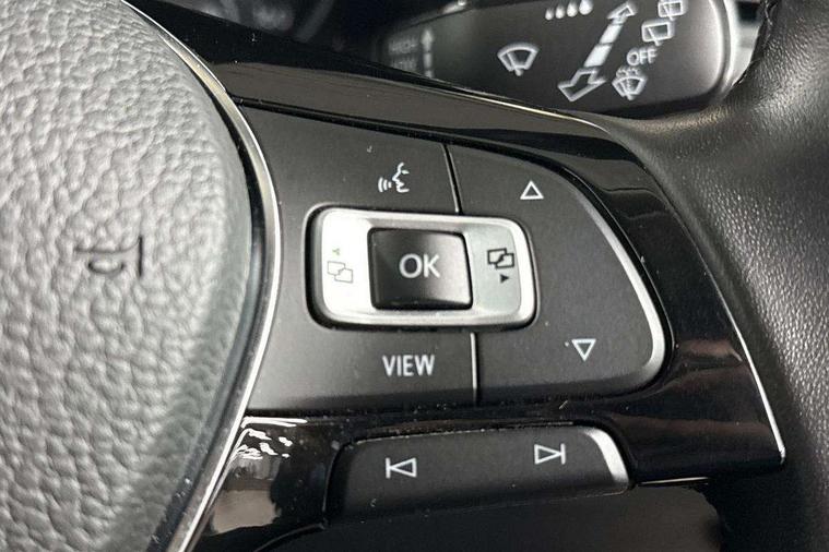 2 USB connection charging sockets, Adaptive cruise control, App-Connect, Automatic start/stop system, Bluetooth telephone and audio connection for compatible devices, Car information display, Front assist, radar sensor controlled distance monitor, city emergency braking + predictive pedestrian protection, Lane assist, Multifunction computer with visual gear change recommendation for fuel consumption, Power assisted speed sensitive steering, Service interval indicator, Think blue trainer driver tips and journey analysis, Warning sound and light for doors and tailgate open, Warning sound and light for front seatbelts unfastened, Battery regeneration during braking, Bluetooth - Simultaneous pairing of 2 compatible mobile devices, DAB Digital radio, Multi device interface (MDI) with USB connection, Music playback - MP3, WMA and AAC files, Premium USB cable in choice of either Apple or Android smartphone compatibility, SD card slot, SMS functionality - read, compose and send SMS messages using touch-screen display, Title and cover art display, Auto dimming interior rear view mirror, Automatic hazard lights activation under emergency braking, Black grained lower door protectors, Black grained wheel arches, Body colour bumpers with silver metallic underbody fascia, Body colour door handles, Chrome trim on upper and lower radiator grille, Door mirror integrated indicators, Dusk sensor, Electrically foldable, adjustable and heated door mirrors with puddle lights and reverse activated kerb-view adjustment on passenger's door mirror, Front and rear electric windows, Front windscreen wiper with intermittent wipe and 4 position delay, Fully galvanised body, Heated rear window, High level 3rd brake light, LED rear number plate lights, Manual coming/automatic leaving home lighting function, Rain sensor, Rear windscreen washer and wiper with interval delay, 12V socket in centre console storage area, 2 front reading lights, 3 rear head restraints, 4 load lashing points in luggage compartment, Climate control - 2 zone electronic air conditioning with automatic air recirculation and allergy filter, Drawer under drivers seat, Front centre armrest with storage compartment, longitudinal and height adjustable and two rear air vents, Front cupholders x 2, Front seat back storage pockets, Glovebox, Height adjustable front seats, Height/reach adjust steering wheel, Illuminated vanity mirrors, Instrument lighting, white adjustable panel illumination, Interior light delay, Isofix easy fit child seat preparation for 2 outer rear seats, Load through provision with single cup holder when folded down, Luggage compartment cover, removable, Luggage compartment lighting, Split folding rear seat backrests with centre armrest, Storage compartment in left and right luggage area, Storage compartment in rear doors, Storage compartments in driver and front passenger doors, 3 rear three point seatbelts, ABS, Driver and front passenger safety-optimised head restraints, Electronic parking brake with auto hold, ESC with EDL, ASR, EDTC and trailer stabilisation function, Front and rear curtain airbags, driver and front passenger airbags with passenger deactivation switch and front side impact airbags, Rigid safety cell with front and rear crumple zones, Three point height adjust front seatbelts + pretensioners, Tyre pressure loss indicator, Ventilated front and rear disc brakes, Volkswagen roadside assistance, Alarm with remote central locking and interior protection, Electronic engine immobiliser, Remote central locking with 2 remote folding keys, Dark oak brown decorative inserts in dash and door panel,