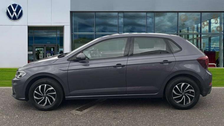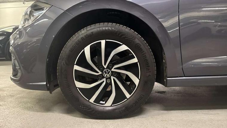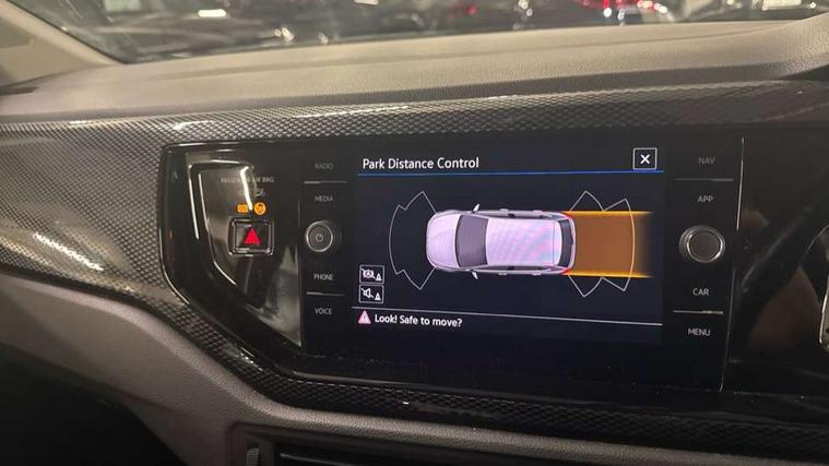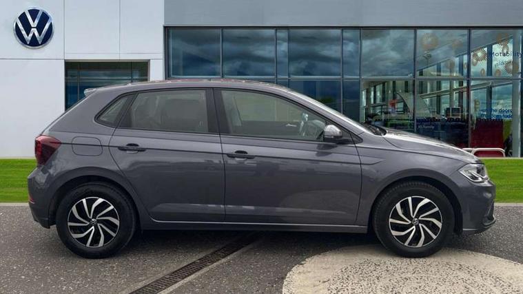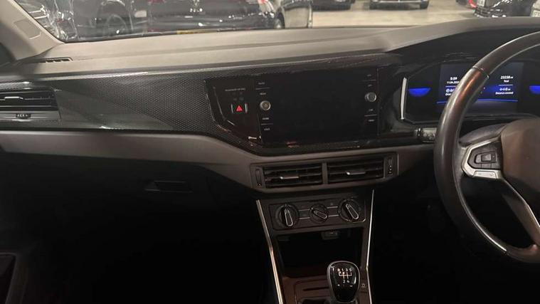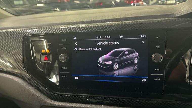 Adaptive cruise control without follow-to-stop and speed limiter, Bluetooth mobile phone interface, Driver alert system, Emergency call service, Front assist system, Power assisted speed sensitive steering, Preparation for We connect and We connect plus, Speedo and rev counter, electronic odometer, trip, service interval display and fuel gauge, Standard rear axle, Travel Assist - Lane keeping system and traffic jam assist, Travel assist including emergency assist, Trip computer, Warning signal and warning light for front and rear seatbelts not fastened, Washer fluid level indicator, Wireless app connect, Front wheel drive, Rear shock absorpion, Start-stop system with battery regeneration (recuperation - energy recovery during braking), DAB Digital radio, Diversity antenna for FM reception, Front and rear 6 speakers, Automatic dimming interior rear view mirror, Body colour bumpers, Body colour door handles, Body colour door mirrors, Electric front windows, Heat insulating darkened glass in side and rear windows, Heat insulating glass windscreen, Power folding adjustable/heated exterior mirrors and front passenger exterior mirror lowering function, Rain sensor, Rear electric windows, Rear fog light, Rear side wing doors, Rear windscreen washer and wiper with interval delay, Third brake light, 12V power socket in centre console, 2 front and 2 rear reading lights, 2 USB-C ports in the front, 2 USB-C charging sockets on the center console in the rear, 3 rear head restraints, 60/40 split folding rear seat and rear seat bench not split, Ceramique headliner, Chrome plated radiator grille inserts, air vent surrounds and light switch surrounds, Door and side trim panel, Driver and front passenger seat height adjustment, Driver/passenger sunvisors with illuminated vanity mirrors, Front centre armrest, Front seat backrest storage pockets, Front standard seats, Handbrake lever handle in leather, Hartley/Thomas cloth upholstery, Isofix child seat preparation easy-fit (for two outer rear seats, and front passenger seat) compatible with I-size, Leather trimmed gear knob, Luggage compartment cover, Luggage compartment floor, Luggage compartment lighting, Multifunction steering wheel, Single front passenger seat, Standard pedal cluster, Light and vision pack - Polo, 3 point height adj front seatbelts + pretensioners, 3x3 point rear seatbelts, ABS, Driver and front passenger airbag with front passenger airbag deactivation, Drivers and front passengers safety optimised head restraints, ESC (Electronic stability control) + EDL (Electronic Differntial lock) and ASR (Traction control), Extended and predictive pedestrian/ cyclist protection, Front curtain and side airbags with center airbag, Front disc brakes, Hill hold control, Manual child lock in rear doors, Rear drum brakes, Single tone horn, Tyre pressure loss indicator, Alarm with interior protection, Anti-theft alarm system with interior monitoring, backup horn, and towing protection, Anti-theft wheel bolts, Electronic engine immobiliser, Lava stone black gloss/matt decorative inserts in dash and front door panels, Low rolling resistance tyres,