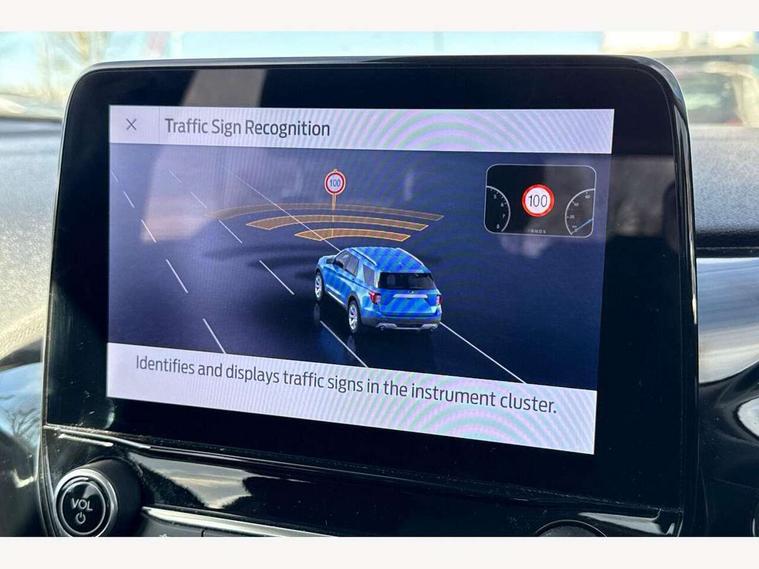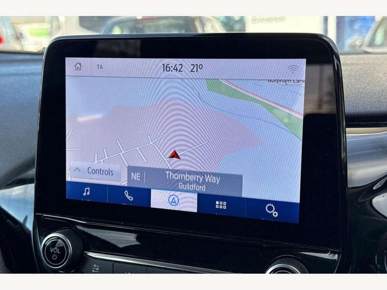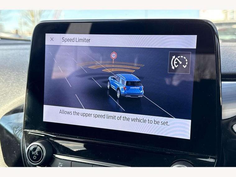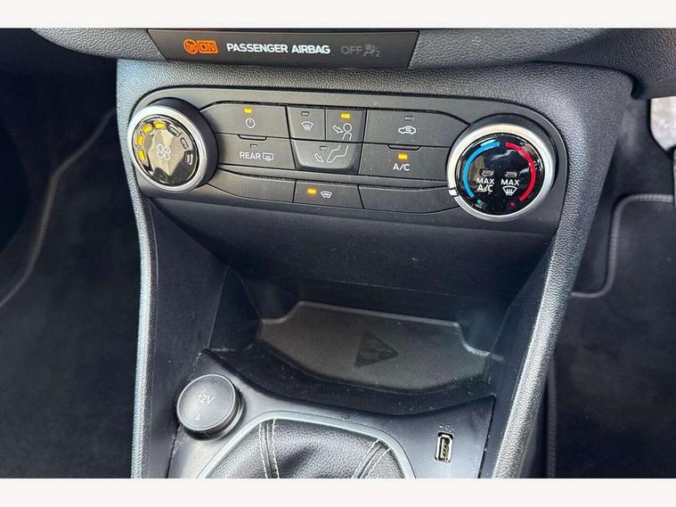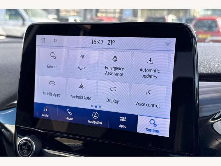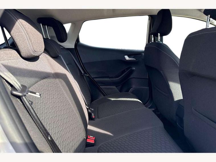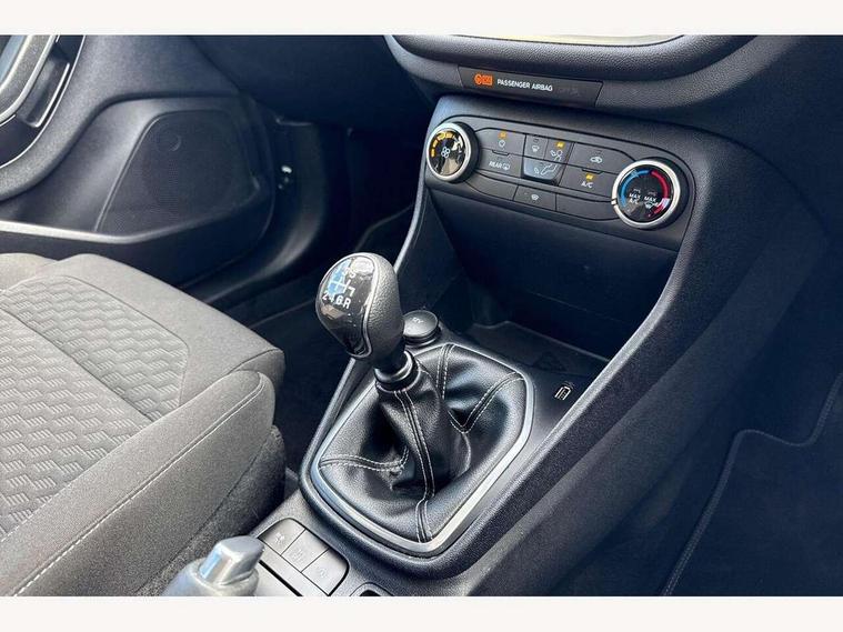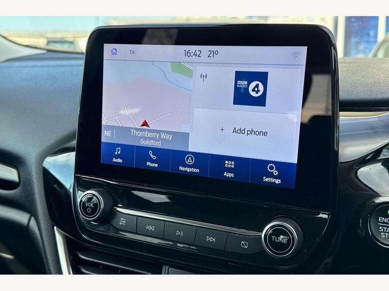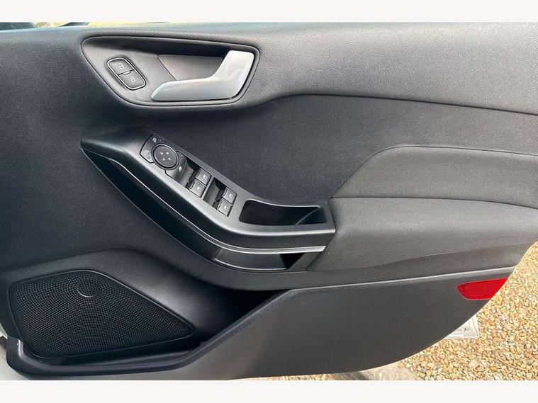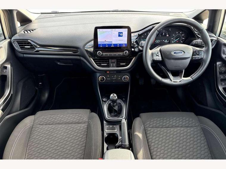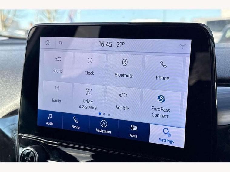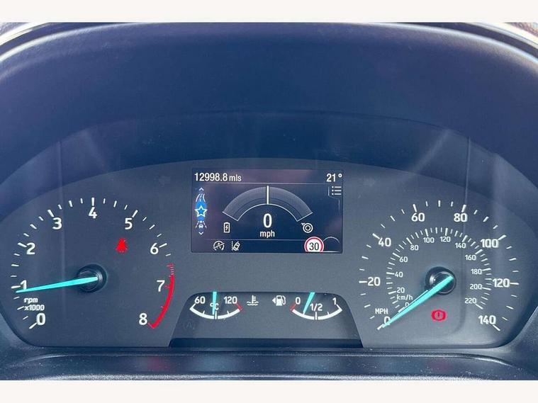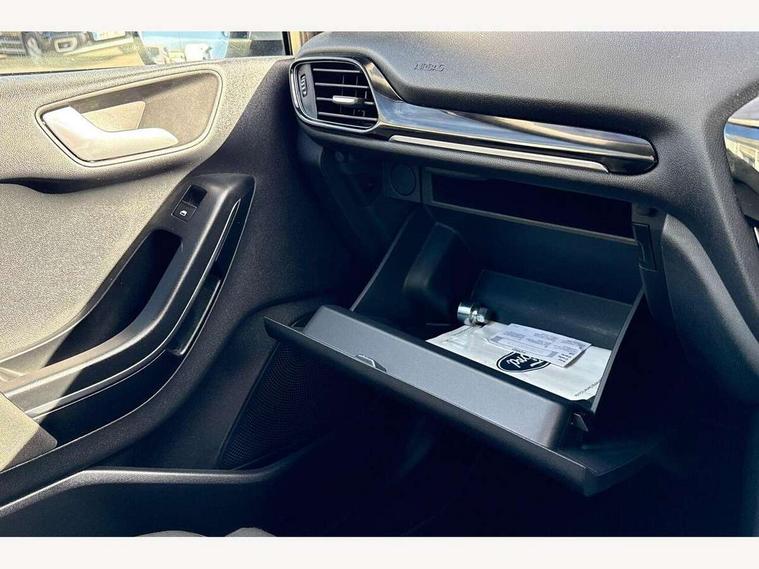 4.2" Colour TFT Ice blue illumination analogue cluster, Driver alert system, Electric power steering, Ford easy fuel, Ford SYNC 3 Nav with DAB radio, 8" touch screen, voice control, emergency assist, Apple CarPlay/Android auto, 2x USB, 6 speaker, Ford pass connect, Rear parking distance sensors, Selectable drive modes (Normal, Sport, Track), Speed sign recognition, Trip computer, Standard suspension, 3rd brake light, Auto high beam, Body colour bumpers, Body coloured electrically operated with side indicators, Electric front windows/one touch facility, Grey air vent inserts, High gloss chrome surround with satin grille insert, Quickclear heated windscreen, Rain sensing wipers and auto dimming rear view mirror, Rear privacy glass, Rear side wing doors, Rear wiper, 3 seat bench in 2nd row, Adjustable head restraints, Centre console with opening armrest, 2x cupholders, 12v and USB, Cloth upholstery with metal grey stitching, Front floor mats in velour, Leather gaiter, Manual 2 way passenger seat adjust, Manual 4-way driver seat adjust, Manual air conditioning, Sensico wrapped steering wheel, Single front passenger seat, NCAP Pack - Fiesta, 3 point seatbelts on all rear seats, Electronic stability control with hill start assist, Manual child lock in rear doors, Tyre pressure monitoring system, Keyless start with 'Ford Power' starter button, MyKey system, Remote central locking, Thatcham alarm with power door dead locks,