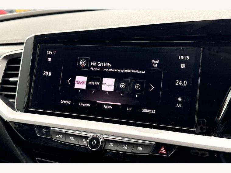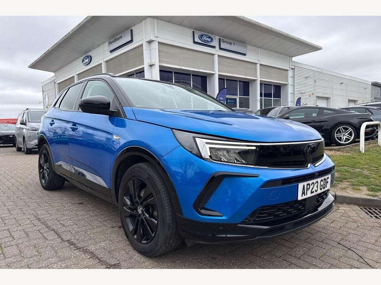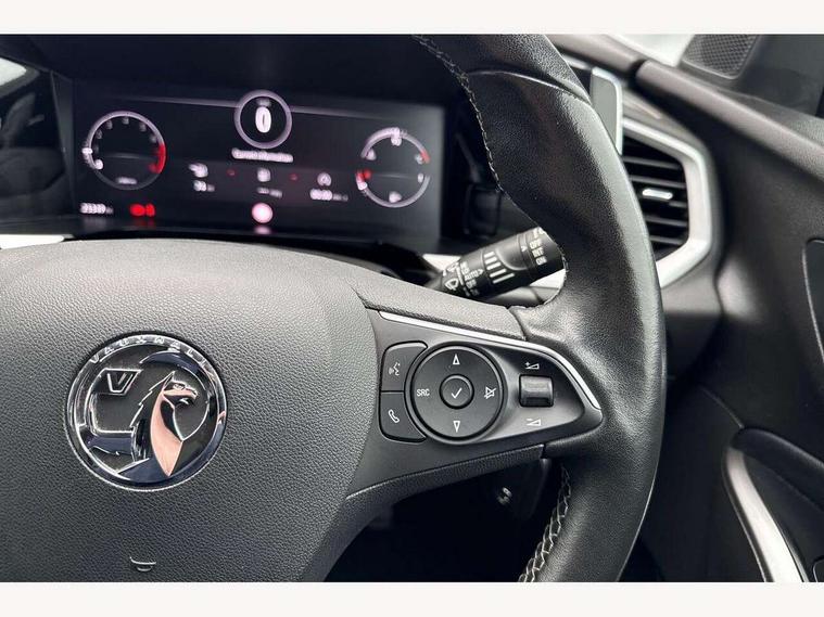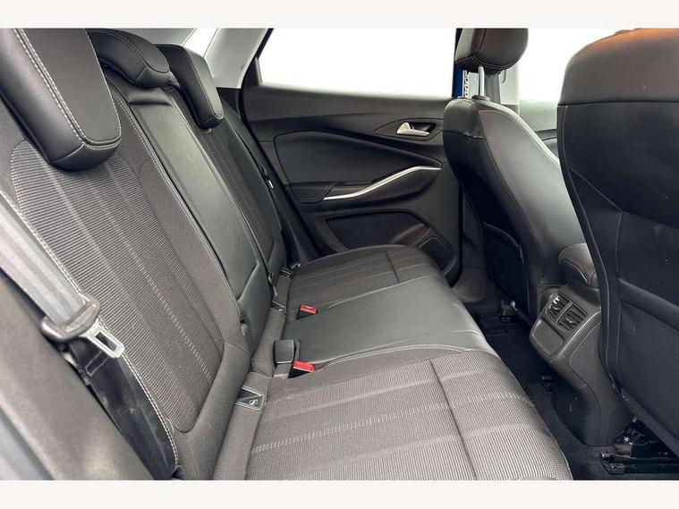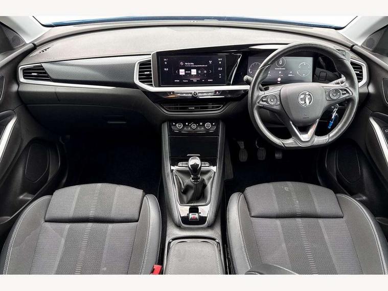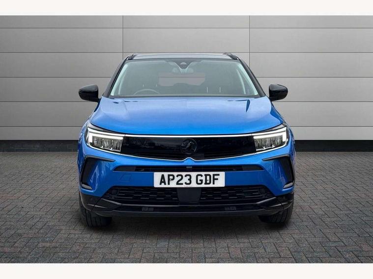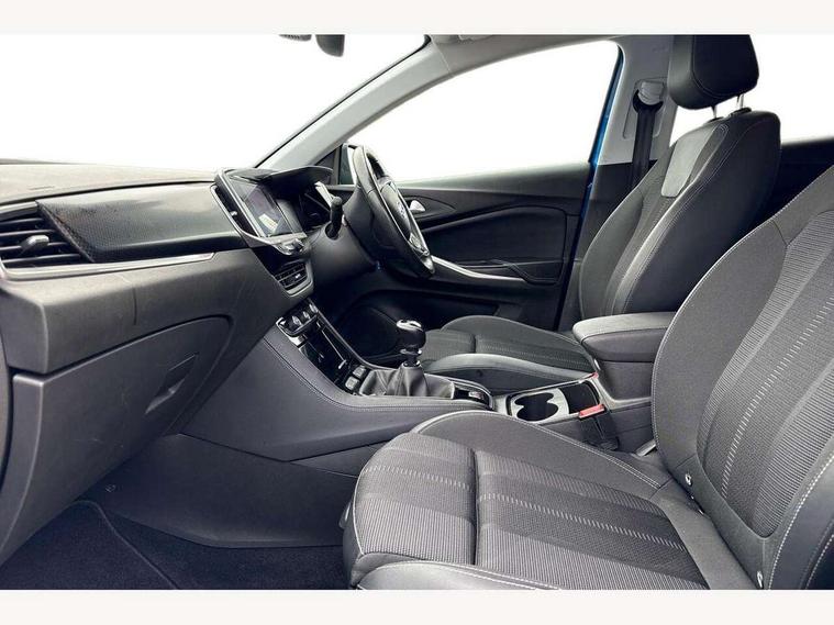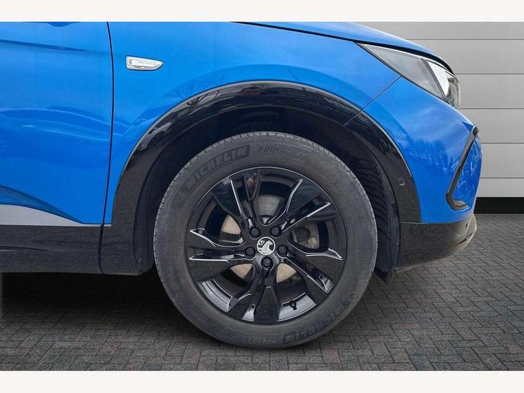 12" colour digital cluster, Central facia display with digital clock, outside air temperature and audio information, Cruise control with speed limiter, Digital fuel gauge with low fuel level warning light, Digital rev counter, Digital speedometer, Digital water temperature gauge with warning light, Driver drowsiness alert system, Driver information - Total mileage, service indicator, oil life, Front and rear parking distance sensors with 180 degree rear view camera and advanced park assist, Gearshift up/down indication light, Lane departure warning system, Lane keep assist, Lights on audible warning, Multi function trip computer - Trip odometer, vehicle range, average speed and fuel economy, instantaneous fuel economy and driving time, Multimedia navi pro with 10" colour touch+ sat nav+AM/FM/DAB radio, bluetooth audio streaming/mobile phone portal, Apple carplay/Android auto, USB, Side blind spot alert, Speed sensitive electric power assisted steering, Speed sign recognition, Vauxhall connect including Emergency call (SOS e-call) and Breakdown call (b-call), Anti-roll bars, Compound crank rear suspension with coil springs and gas pressure dampers, Independent decoupled MacPherson strut front suspension with gas pressure dampers and coil springs, anti-roll bar, Six speaker - four front + two rear, Steering wheel mounted audio/phone/cruise controls, Automatic lighting control, Automatically dimming anti dazzle rear view mirror, Black door mirrors, Black side window trim, Body colour door handles, Body colour upper front bumper, Carbon black lower front and rear bumpers, protective wheel arches and lower door cladding, Collapsible windscreen wipers, Dark tinted rear side and tailgate windows, Door to door illumination, Electric adjustable/heated/folding door mirrors, Electrically operated front and rear windows with safety auto reverse and one touch up/down facility, Front wiper system spraying directly from wipers, Hazard warning lights, Heated rear screen with timed cut off, High beam assist, High gloss black exterior detailing, High gloss black Griffin for Vizor and tailgate with high gloss black Grandland tailgate lettering, High gloss black protective front and rear skid plates and C-shape bumper inserts, High gloss black roof rails, High level centre rear brake light, Intermittent rear window wash/wipe, LED daytime running lights, LED Headlights, LED tail lights, Magic wash, Manual headlight beam levelling, Rain sensor windscreen wipers, Rear side wing doors, Rear spoiler, Reversing light, Shark fin aerial, Soundproof insulated windscreen, Two speed windscreen wipers with variable intermittent wipe, Upper and lower bumper design, Vizor front grille, Welcome lighting, 12V electrical accessory socket in front, 3 bench rear seats in 2nd row, 3 spoke flat bottom leather steering wheel with satin chrome effect bezel, 4 way electric driver lumbar support, 60/40 split folding rear seat, Advanced predictive logic control system using a sun sensor, Ambient centre console downlighter, Automatic air direction and fan speed with manual override, Charcoal filter, Chrome effect interior door handles, Covered storage compartment in centre console and in driver armrest, Driver's centre armrest, Drivers seat with height, reach, backrest adjustment and seat cushion extension, Dual zone electronic climate control, Ergonomic active drivers sports style seat, Focus cloth upholstery, Front door pockets with 2.6 litre capacity, Front passenger seat, Front passenger seat with reach and backrest adjustment, Front passengers sports style seat, Fully carpeted luggage area, Height adjustable headrests, Illuminated driver/passenger sunvisors with vanity mirror, Illuminated luggage area, ISOFIX on front passenger and rear outer seats, Luggage compartment cover, Reach + rake adjustable steering column, Rear centre seat head restraint, Rear door pockets with 1.8 litre capacity, Rear passenger compartment heating ducts, Rear reading lights, Two drinks holders in centre console, Anti-lock braking system (ABS), Automatic emergency braking with pedestrian detection, Child proof locks on rear doors, CSC - Cornering stability control, Deactivation switch for front passenger front and side impact airbags, Deflation detection system, Driver airbag, Dual seatbelt pretensioners on front seats, EBD - Electronic brakeforce distribution, Electronic parking brake, Electronic stability program (ESP) including traction control, Front brake ventilated disc 304mm diameter, Front passenger airbag, Front seat side impact airbags, Full-size curtain airbags for driver and front passenger, Hill start assist, Hydraulic Brake Assist (HBA), Inertia reel lap and diagonal seatbelts for all seats, Load limiters on outer rear seatbelt retractors, Pretensioners on outer rear seatbelt retractors, Rear brake ventilated disc 268mm diameter, Smart seatbelt reminder for front and rear seats, Tyre pressure monitoring system, Central locking, Deadlocking system, Electronically protected audio equipment, Engine deadlock immobiliser, Locking wheel nuts, Remote security alarm system, Black door panels with black premium leather effect inserts, Dax decor facia panel with palladium medium finish, 18" 5 twin spoke high gloss black alloy wheels, Tyre inflation kit,
