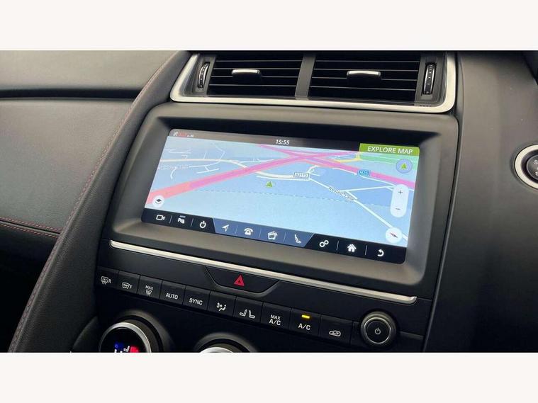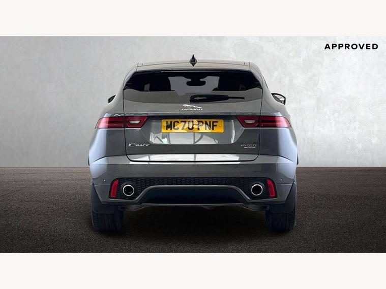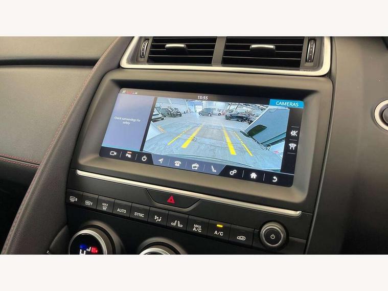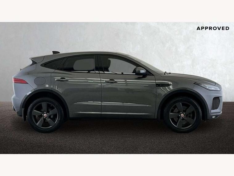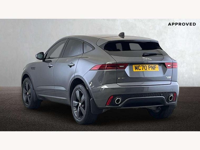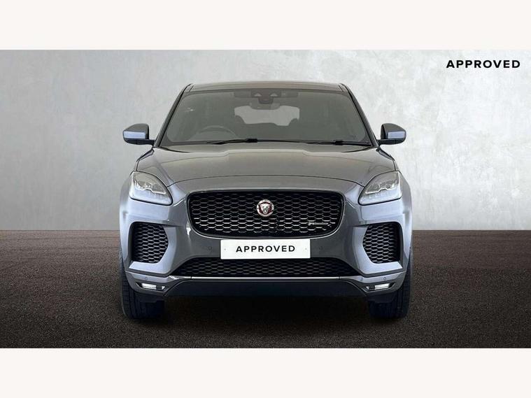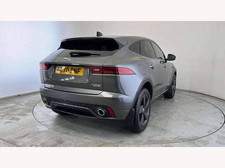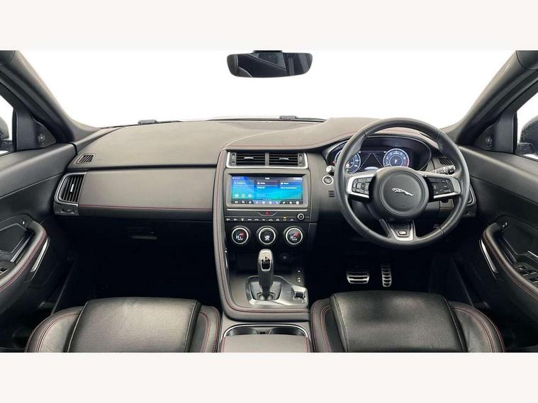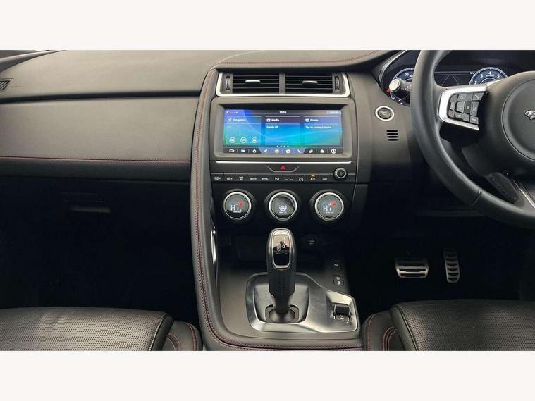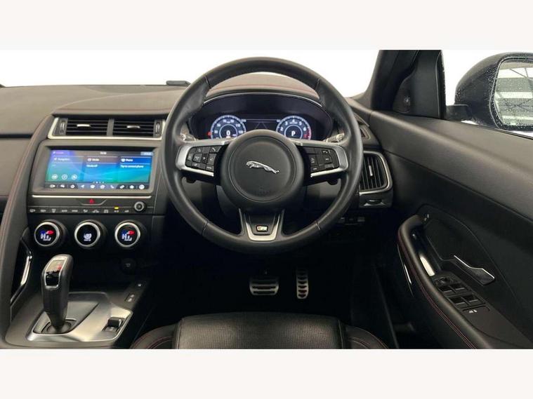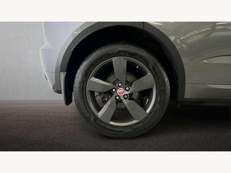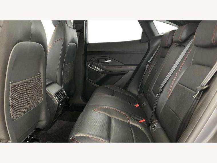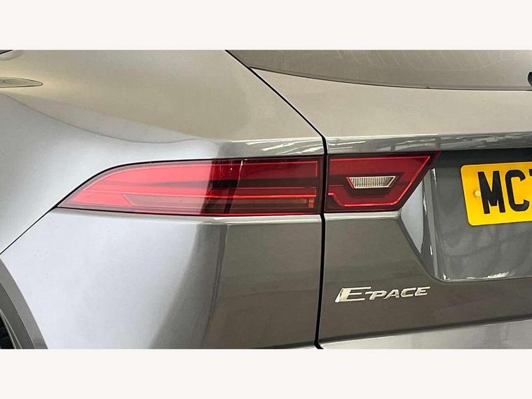 Driver condition monitor, Eco driving style assistant, Electric power assisted steering, InControl remote, InControl Touch navigation pro, Interactive Driver display instrument cluster, Lane keep assist, Outside temperature gauge, Push button starter, Speed proportional steering, Start up sequence with movement in dials and lighting, Traffic sign recognition with adaptive speed limiter, Trip computer, Voice control system, Efficient Driveline, Passive suspension, AM/FM DVD MP3 radio, Bluetooth connectivity including audio streaming, DAB Digital radio, Dynamic volume control, 3 flash lane change indicators, Approach Illumination, Auto dimming rear view mirror, Automatic headlights, Body colour side cladding, Chequered Flag badge in side vents, E Pace badge, Electric front/rear windows with one touch/auto up/down, Fixed panoramic glass sunroof, Front fog lights, Heated front windscreen, Heated rear window with timer, Heated washer jets, Jaguar script and leaper, Metal treadplates with Chequered Flag branding, P200 AWD badge, R Dynamic body colour bumpers, Rain sensor windscreen wipers, Rear fog lights, Tailgate/boot lid spoiler, Twin tailpipes with finishers, 12V power socket in rear, 2nd row 60/40 split/fold, 2nd row air vents, 3 seat bench in 2nd row, 4 Load area hooks, Black gearshift paddles, Bright metal pedals, Centre armrest console, Centre headrest in row 2, Ebony morzine headlining, Elasticated loadspace side strap, Front head restraints, Grained Leather upholstery with front sports seats, ISOFIX on outer rear seats, JaguarDrive selector, LED lighting in overhead console, Loadspace cover, Loadspace lamp, Passive front headrests, R branded leather steering wheel, Storage net in luggage compartment, Sunvisors with illuminated vanity mirrors, Tie down hooks in luggage area, Twin front cupholders, Two zone climate control, Black exterior pack - E-Pace, Connect pro pack - E-Pace, Smartphone pack - E-Pace, 350mm front brakes, 3x3 point rear seatbelts, ABS, All surface progress control (ASPC), Customer configurable autolock, DSC - Dynamic Stability Control, Electronic brake force distribution, Electronic parking brake, Emergency brake assist, Front airbags with passenger seat occupant detector, Front and rear curtain airbags, Front and rear seatbelt reminder, Front side airbags, Hill start assist, Low friction launch, Power child locks, Torque vectoring brake, Tyre pressure monitoring system, Intrusion sensor and alarm, Keyless entry, Locking wheel nuts,