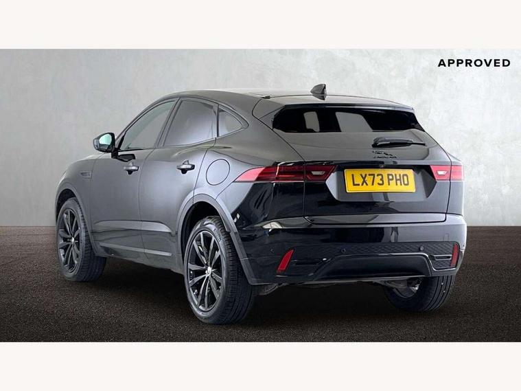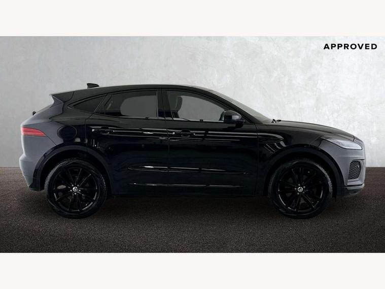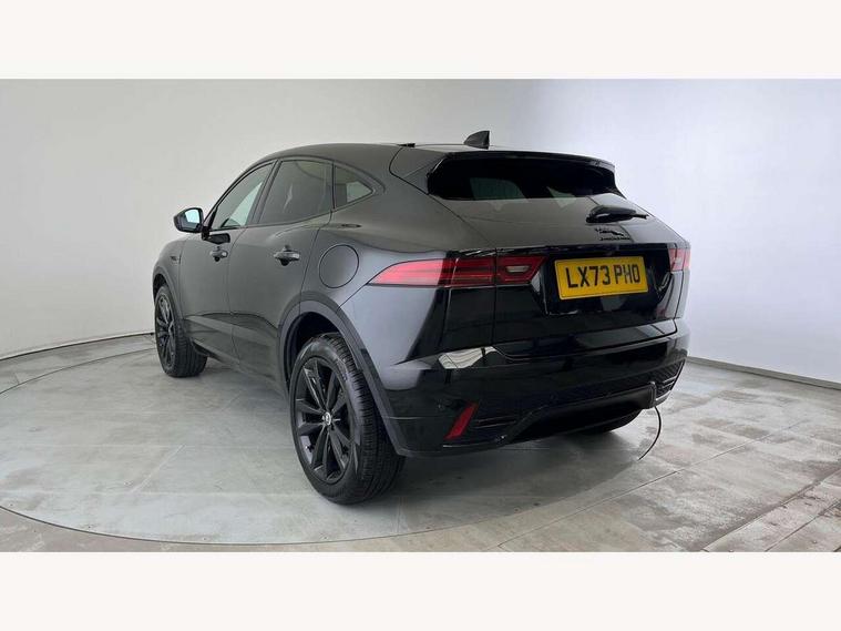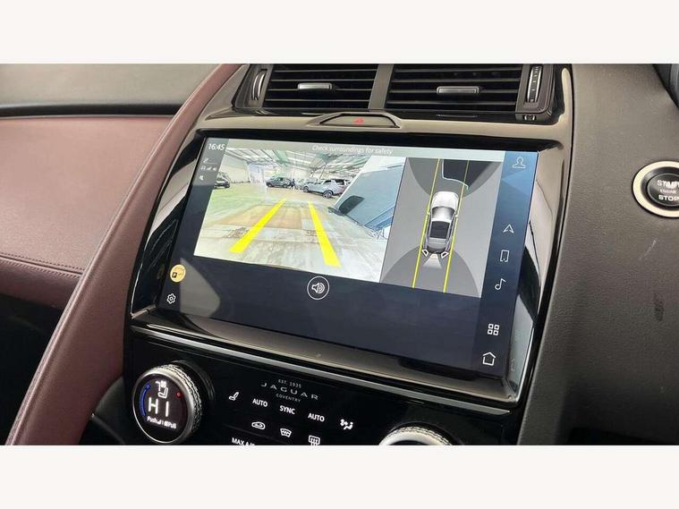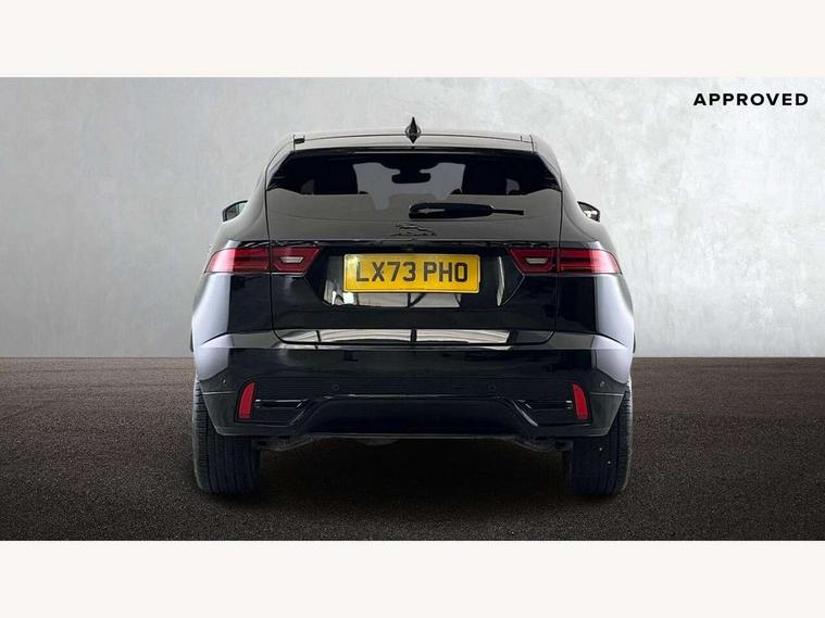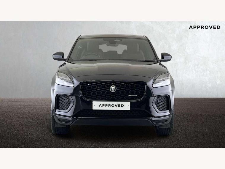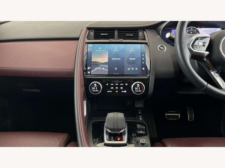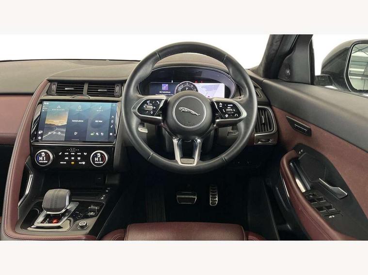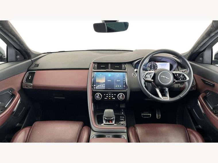 11.4" touchscreen with central ICP, Adaptive cruise control, Android Auto, Apple car play, Blind spot assist, Driver condition monitor, Eco driving style assistant, Electric power assisted steering, Emergency services call system, Front and rear parking aid, InControl remote, Interactive driver display, Jaguar drive control with adaptive surface response, Jaguar Toggle sport shift selector, Lane keep assist, Outside temperature gauge, Pivi pro connected infotainment system with smart settings and navigation pro, Push button start, Rear collision monitor, Rear traffic monitor, Speed proportional steering, Traffic sign recognition with adaptive speed limiter, Trip computer, Voice control system, 7 kW onboard charger, Configurable dynamics, Electric rear axle drive, Gasoline particulate filter, Home charging cable Mode 2, Large fuel tank, Passive suspension, Public charging cable Mode 3, Bluetooth connectivity including audio streaming, DAB digital audio broadcast, Dynamic volume control, 3 flash lane change indicators, Approach Illumination, Automatic headlights, Body colour door handles, Body colour front and rear lower bumper main moulding and lower side cladding, Body colour upper spoiler, Body coloured side sills, Centre high-mounted stop light, Dark satin grille tips, Electric front/rear windows with one touch/auto up/down, Electric heated/power fold memory door mirrors with approach lights and auto dimming driver side, Fixed panoramic glass sunroof, Heated washer jets, Heated windscreen, Jaguar script and leaper, Leaper for duo leather and embossed leaper for windsor leather, LED tail lights, LED third brake light, Metal load space scuff plates, Narvik black antenna pod and side pillar finisher, R Dynamic badge, R Dynamic body colour bumpers, Rain sensor windscreen wipers, Rear fog lights, Rear side wing doors, Rear wash wiper, Satin black grained front outer grille, low grill mesh and low bumper valence, side fender vent mesh and finisher, rear tow eye cover and grille mesh, Twin exhaust tailpipe, Variable front intermittent wipers, 16 way heated and cooled, electric adj driver memory front seats with 2 way manual headrests and heated rear seats with centre armrest, 3 rear head restraints, 3 seat bench in 2nd row, 40:20:40 rear seat fold, Bright metal pedals, Carpet mats, Centre console with armrest, Ebony suede cloth headlining, Enhanced ambient lighting, Hooks loadspace, ISOFIX on outer rear seats, Leather steering wheel, Loadspace cover, Loadspace light, Loadspace storage net, Luggage tie-downs in loadspace, Manual height/reach adjust steering wheel, Multifunction steering wheel, Overhead lighting console, Passive front head restraints, Power sockets, Premium cabin lighting, Rear air vents, Rear bench seats, Satin chrome gearshift paddles, Single front passenger seat, Sunvisors with illuminated vanity mirrors, Twin front cupholders, Two zone climate control, Windsor leather upholstery + sport seats, Online pack with data plan - E-Pace, 3x3 point rear seatbelts, ABS, All surface progress control (ASPC), Child locks on rear doors, Customer configurable autolock, DSC - Dynamic Stability Control, Electronic brake force distribution, Electronic parking brake, Emergency brake assist, Emergency braking, Front airbags with passenger seat occupant detector, Front and rear curtain airbags, Front and rear seatbelt reminder, Front passenger airbag deactivation, Front seatbelt pretensioners, Front side airbags, Height adjustable front seatbelts, Hill start assist, Low friction launch, Power child locks, Torque vectoring brake, Tyre pressure monitoring system, Intrusion sensor and alarm, Keyless entry, Locking wheel nuts, Remote central locking,