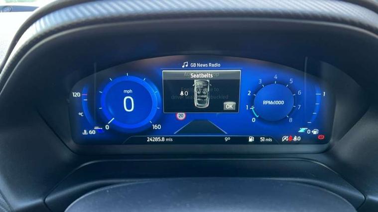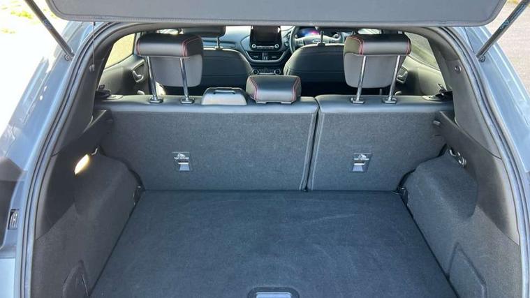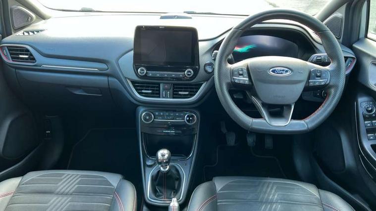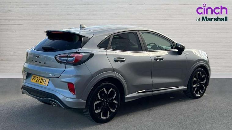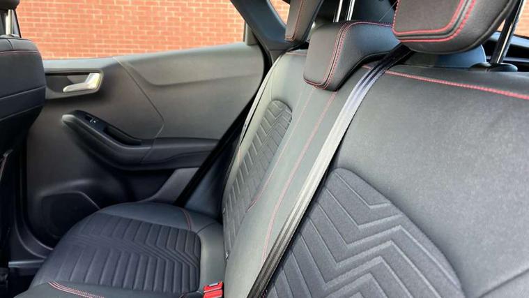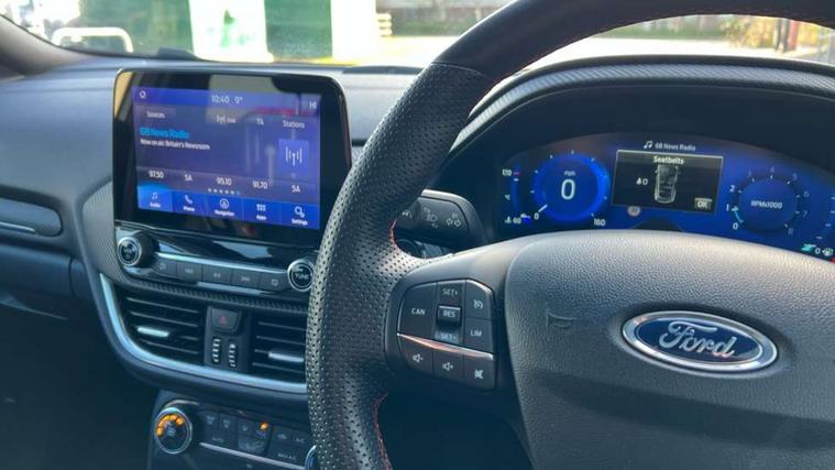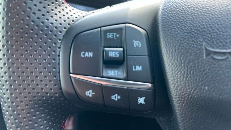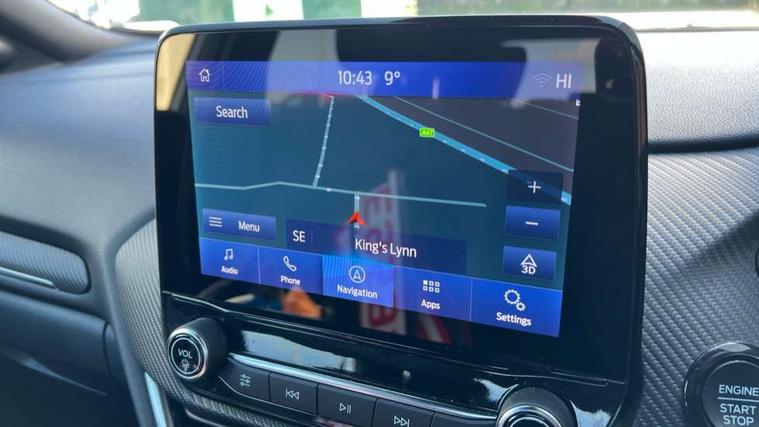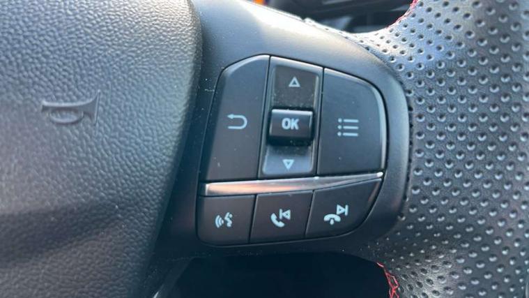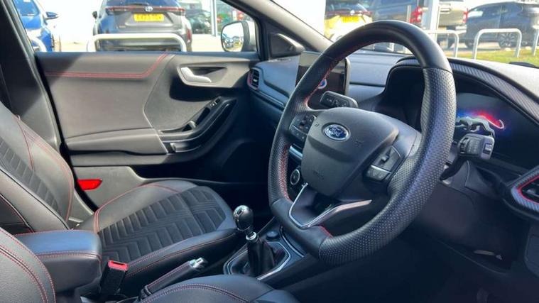 Driver impairment monitor, Emergency call service, Ford easy fuel, Full digital 12.3" instrument cluster, Lane keeping aid with lane departure warning, Power assist steering, Power start button, Rear parking sensor, Selectable drive modes(Normal, Eco, Sport, Slippery and Trail), Speed sign recognition, Sport suspension, Automatic headlights with auto high beam, Automatic rain sensing wipers, Front fog lamps, LED daytime running lights, LED rear lamps, Power foldable heated door mirrors with puddle lamps, Privacy glass to side rear windows and tailgate glass, Quickclear heated windscreen, Rear side wing doors, Rear wiper, ST-Line body styling kit with unique grille and large body colour rear spoiler, Third brake light, 3 seat bench in 2nd row, Centre console with armrest and stowage, Ford megabox extended bootspace, Front and rear head restraints, Front floor mats, Manual 4 way driver seat adjust with lumbar adjustment, Manual 4 way passenger seat with lumbar seat adjustment, Sensico partial premium upholstery, Single front passenger seat, ST-Line flat bottomed sensico leather steering wheel with leather handbrake and aluminium gear knob, Wireless charging pad with electronic air temperature control (EATC), B&O Premium Audio system + Ford SYNC 3 navigation pack - Puma, Driver assistance pack with Lane departure warning - Puma, 3 rear seatbelts, Child safety lock, Electronic stability control (ESC) and hill start assist, Pedestrian/cyclist detection & post-collision braking, Pre collision assist with autonomous emergency braking, Tyre pressure monitoring system (TPMS), Thatcham alarm, Carbon look interior deco spears,