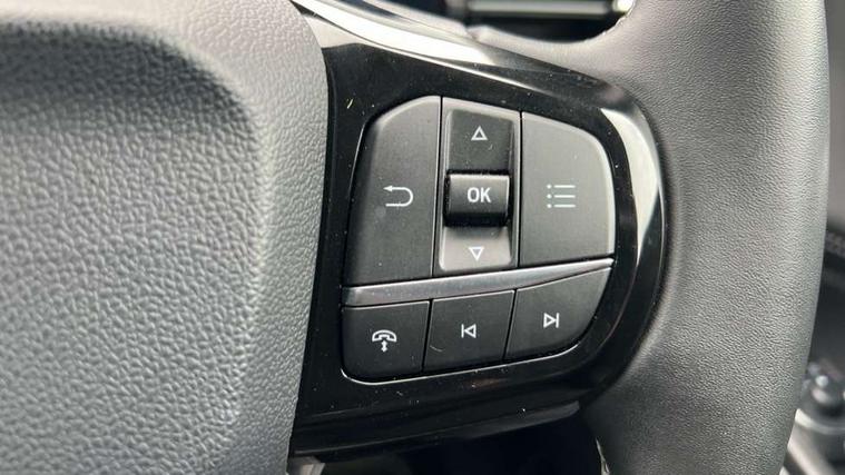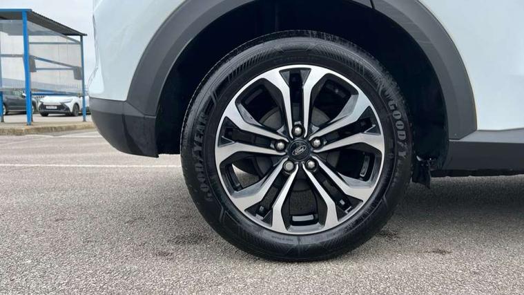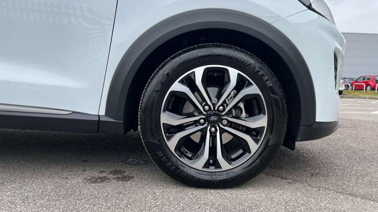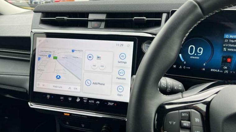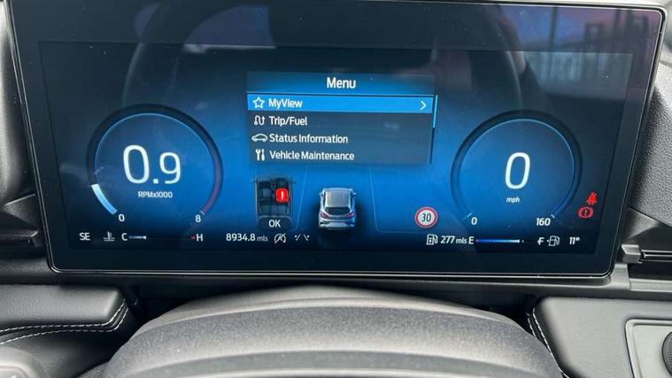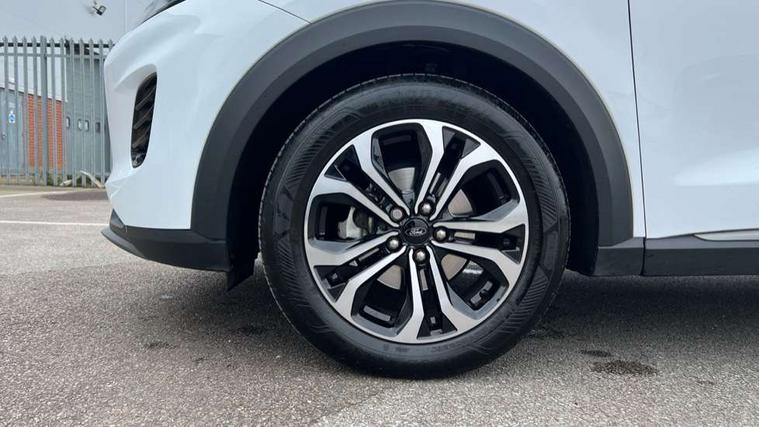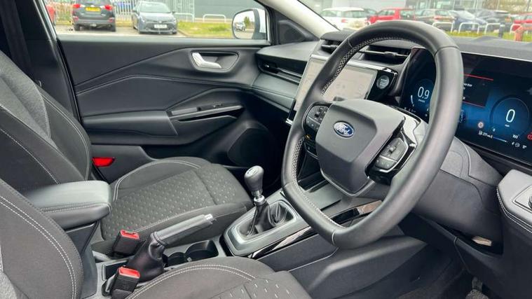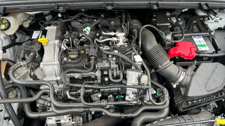 Driver impairment monitor, Emergency call service, Ford easy fuel, Full digital 12.8" instrument cluster, Lane keeping aid with lane departure warning, Power assist steering, Selectable drive modes(Normal, Eco, Sport, Slippery and Trail), Speed sign recognition, Standard suspension, 12" landscape touchscreen display with wireless apple car play and android auto 6 speaker audio system, Ford pass connect and emergency assistance, Ford SYNC4 with connected navigation, Automatic headlights with rain sensing wipers and auto high beam, Front fog lamps, LED daytime running lights, LED rear lamps, LED third brake light, Quickclear heated windscreen, Rear privacy glass, Rear side wing doors, Rear wiper, 3 seat bench in 2nd row, Centre console with armrest and stowage, Electronic automatic temperature control (EATC), Ford megabox extended bootspace, Front and rear head restraints, Front floor mats, Manual 4 way driver seat adjust with lumbar adjustment, Single front passenger seat, Titanium cloth upholstery, 3 rear seatbelts, Child safety lock, Electronic stability control (ESC) and hill start assist, Pre-collision assist with autonomous emergency braking, pedestrian/cyclist detection & post-collision braking, Tyre pressure monitoring system (TPMS), Thatcham alarm, 17" Absolute black machined finish alloy wheel,