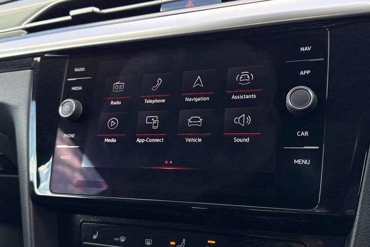 Adaptive cruise control (ACC) with speed limiter, front assist (reacting vehicles pedestrian and cyclists) and follow to stop, App connect including wireless Apple CarPlay, Camera for warning system, Digital cockpit with 10.25" high resolution TFT display screen with customisable menus and information, Driver alert system with fatigue detection, Driver profile selection including ECO function, Dynamic road sign display, eCall - Emergency call service for SOS calls to emergency response, Emergency assist, Hands free boot opening, Press and drive key, Progressive steering, Speedo and rev counter, electronic odometer, trip, service interval display and exterior temperature gauge, Travel assist - Lane keeping assist and traffic jam assist, Voice activation for telephone and navigation, Start/stop function with battery regeneration, Premium USB cable in choice of either Apple or Android smartphone compatibility, Auto dimming interior rear view mirror, Automatic headlights, Body colour door handles, Body colour side skirt, Body coloured top and matt black lower door mirrors with integrated indicators, Chrome plated radiator grille inserts and light switch surrounds, Chrome side window surrounds, Dynamic headlight range control, Electric folding door mirror, adjustable, heated with front passenger exterior mirror lowering function, Front and rear electric windows, Front and rear stainless steel door sill protection, Front windscreen washers and wipers with 4x interval delay, Heat insulating side and rear windows, Heated rear windscreen, Heated windscreen washer jets, High level 3rd brake light, LED rear combination lamp with dynamic indicators, LED rear number plate lights, Panoramic sunroof with tilting and sliding including integrated roller blind, R Line design body coloured bumpers, Rain sensor, Rear fog lamp on one side and reversing lamp on both sides, Rear side wing doors, Rear tinted glass from B pillar backwards, approx 65% tinted, Rear wash/wipe, Tailpipes behind rear bumper, 12V socket in front centre console, 12V socket on rear of front centre armrest, 3 rear head restraints, 3 seat bench in 2nd row, 30 colours options interior ambient lighting, 60:40 split folding rear seat backrests with centre armrest, Air care climatronic 3 Zone electronic air conditioning with automatic air recirculation, Black roof lining, Chrome trim on upper and lower air vents extending across cockpit, Driver and front passenger sunvisor with vanity mirror, Front + rear carpet mats, Front cupholders x 2, Front footwell illumination, Front sports comfort seats, Glovebox, Heated front seats, Height/reach adjust steering wheel, Isofix child seat preparation easy fit for two outer rear seats, Luggage compartment lighting, Removable luggage compartment cover, Single front passenger seat, Split folding front seat backrest with front centre armrest, Stainless steel pedals, Two LED front reading light, 3 rear three point seatbelts, ABS+EBD+Brake assist, Child locks on rear doors, Driver airbag and front passenger airbags with deactivation switch including driver knee airbags, Electronic parking brake, Electronic stability control (ESC) and Electromechanical brake booster, Front disc brakes, Front side airbags with curtain airbags, Hill start assist, Pro active occupant protection to detect critical situations with elevated accident potential from the front, Rear disc brakes, Three point height adjust front seatbelts + pretensioners, Two tone horn, Tyre pressure loss indicator, Warning buzzer for seatbelts if unfastened, Warning triangle, Alarm with interior protection with deactivation via infotainment system, Electronic engine immobiliser, Keyless entry system including start/stop button on centre console, Aluminium decorative inserts, Chrome trim on lower doors in front and rear, Leatherette insert on door and side trim panel in foam film, Piano black decorative inserts in centre console,