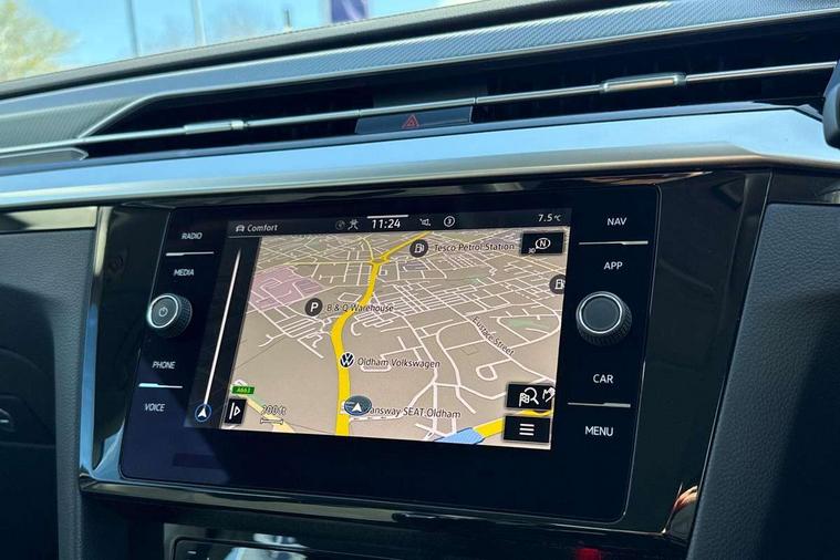 Adaptive cruise control (ACC) with speed limiter, front assist (reacting vehicles pedestrian and cyclists) and follow to stop, App connect including wireless Apple CarPlay, Camera for warning system, Digital cockpit with 10.25" high resolution TFT display screen with customisable menus and information, Driver alert system with fatigue detection, Driver profile selection including ECO function, Dynamic road sign display, eCall - Emergency call service for SOS calls to emergency response, Emergency assist, Hands free boot opening, Press and drive key, Progressive steering, Side scan lane change assist including rear cross traffic alert, Speedo and rev counter, electronic odometer, trip, service interval display and exterior temperature gauge, Tailgate, Travel assist - Lane keeping assist and traffic jam assist, Voice activation for telephone and navigation, 10 amp mode 2 charging cable, 16 amp mode 3 charging cable, Dynamic Chassis Control (DCC) - Adjustable dampers lowered by 15mm, Start/stop function with battery regeneration, 8 Speakers, Premium USB cable in choice of either Apple or Android smartphone compatibility, Auto dimming interior rear view mirror, Automatic headlights, Body colour door handles, bumpers and side skirts, Body coloured top and matt black lower door mirrors with integrated indicators, Chrome plated radiator grille inserts and light switch surrounds, Chrome side window surrounds, Dynamic headlight range control, Electric folding door mirror, adjustable, heated with front passenger exterior mirror lowering function, External USB-C data socket with increased charging performance in front, Front and rear electric windows, Front and rear stainless steel door sill protection, Front windscreen washers and wipers with 4x interval delay, Heat insulating glass windscreen, Heat insulating side and rear windows, Heated rear windscreen, Heated windscreen washer jets, LED 3rd brake light, LED rear combination lamp with dynamic indicators, LED rear number plate lights, Rain sensor, Rear boot spoiler, Rear fog lamp on one side and reversing lamp on both sides, Rear side wing doors, Rear wash/wipe, Tailpipes behind rear bumper, 12V socket in front centre console, 12V socket on rear of front centre armrest, 3 rear head restraints, 3 seat bench in 2nd row, 6 way electric adjustable ergoComfort driver seat with electric adjustable backrest, 60:40 split folding rear seat backrests with centre armrest, Air care climatronic 3 Zone electronic air conditioning with automatic air recirculation, Art velour vienna leather upholstery, Chrome trim on upper and lower air vents extending across cockpit, Driver and front passenger sunvisor with vanity mirror, Front + rear carpet mats, Front cupholders x 2, Front footwell illumination, Front sports comfort seats, Glovebox, Heated front seats, Height/reach adjust steering wheel, Isofix child seat preparation easy fit for two outer rear seats, Luggage compartment lighting, Power adjustable lumbar support on right front seat, Removable luggage compartment cover, Single front passenger seat, Split folding front seat backrest with front centre armrest, Stainless steel pedals, Two LED front reading light, 3 rear three point seatbelts, ABS+EBD+Brake assist, Child locks on rear doors, Driver airbag and front passenger airbags with deactivation switch including driver knee airbags, Drivers and front passengers safety optimised head restraints, Electronic parking brake, Electronic stability control (ESC) and Electromechanical brake booster, Front disc brakes, Front precrash preventive occupant protection, Front side airbags with curtain airbags, Hill start assist, Pro active occupant protection to detect critical situations with elevated accident potential from the front, Rear disc brakes, Three point height adjust front seatbelts + pretensioners, Two tone horn, Tyre pressure loss indicator, Warning buzzer for seatbelts if unfastened, Warning triangle, Alarm with interior protection with deactivation via infotainment system, Electronic engine immobiliser, Keyless entry system including start/stop button on centre console, Remote central locking, Aluminium decorative inserts, Chrome trim on lower doors in front and rear, Leatherette insert on door and side trim panel in foam film, Piano black decorative inserts in centre console, Tyre mobility kit,