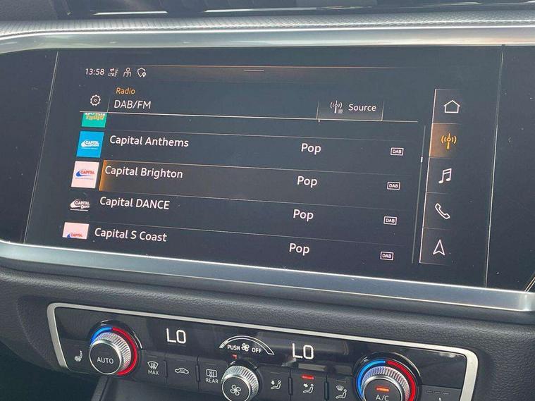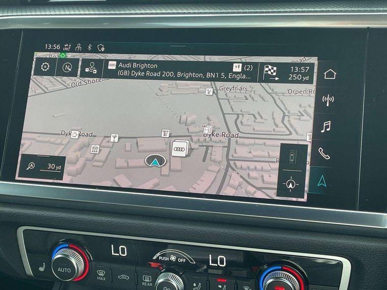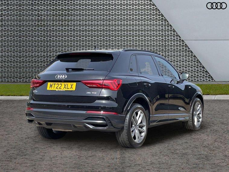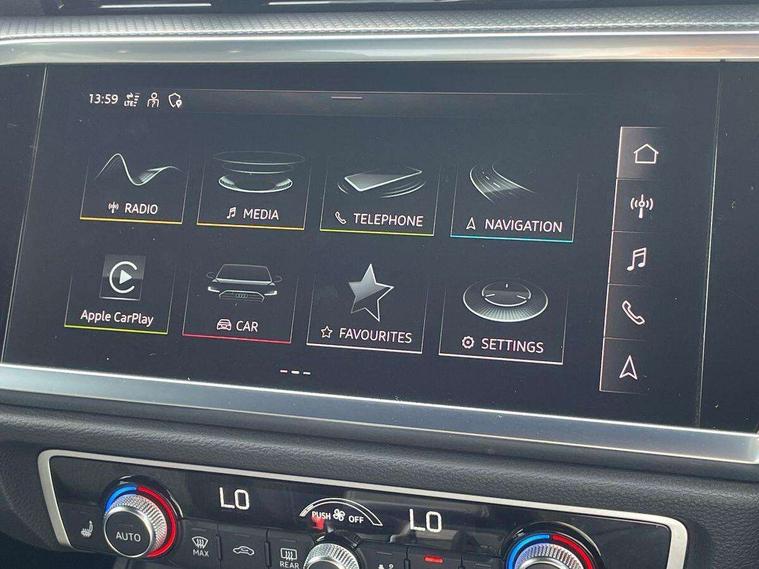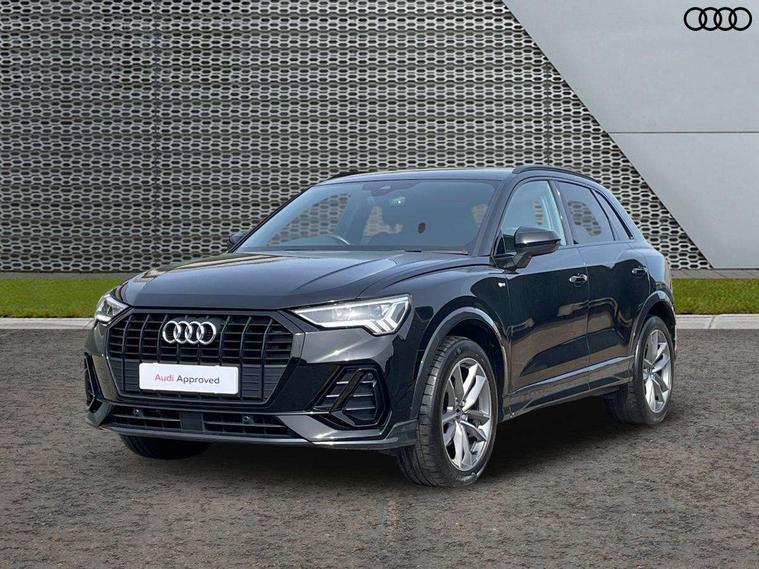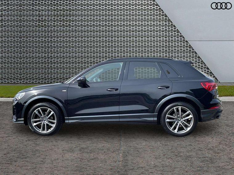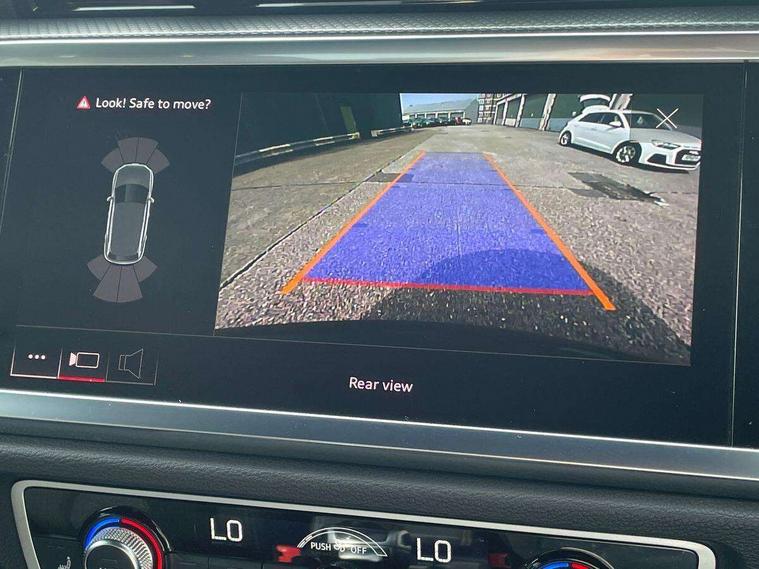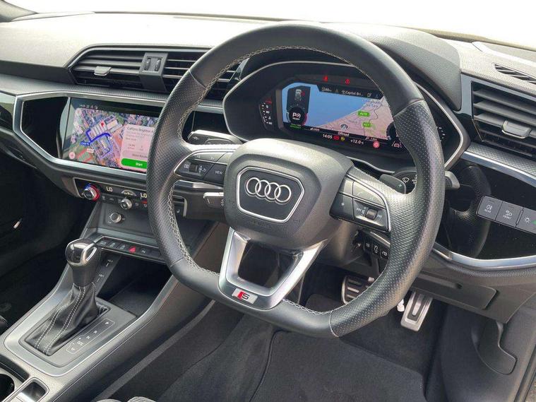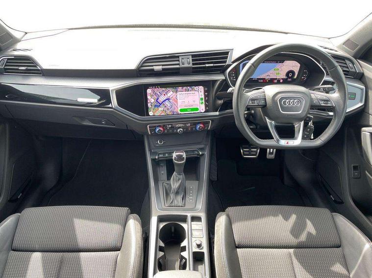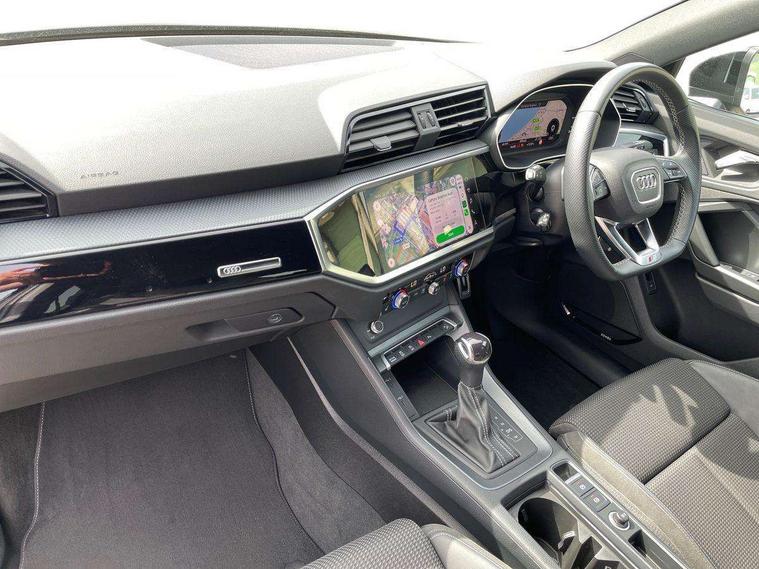 Amazon alexa Integration, Audi connect safety and service (e-call), Audi drive select, Audi lane departure warning, Audi smartphone interface includes wireless Apple carplay/Android Auto, Audi Virtual Cockpit - 10.25" display, Bluetooth interface, Camera based traffic sign recognition, MMI Navigation Plus with high resolution 10.1 inch touchscreen colour display, Power operated tailgate, Progressive steering, Service interval indicator, Start stop system with recuperation, Voice control system with natural language interaction, Diesel particulate filter, Sports suspension, 2 USB-C ports with charge and data functions, 6 passive loudspeakers, DAB digital radio module, Acoustic windscreen, Auto dimming frameless rear view mirror, Black roof rails, Electrically folding, adjustable and heated door mirrors with integrated LED side indicators and kerb view function for passenger side, Front and rear electric windows, Front fog lights, Grille vertical bars in aluminium silver/Matt, High gloss black finish B and C pillars, LED headlights with LED daytime running lights, LED rear lights, LED third brake light, Privacy glass dark tinted rear and rear-side windows (from B-pillar backwards), Rain and light sensors, Rear diffuser strip in matt titanium black, Rear side wing doors, Rear wiper, S line bumpers in contrasting Manhattan grey, Variable front intermittent wipers, 12V socket in rear centre console, 3 seat bench in 2nd row, 40:20:40 folding with manual adjustment for 60:40 forwards/backwards position and backrest angle, Adjustable rear seat bench/backrest with centre armrest and cupholder, Black cloth headlining, Dual zone electronic climate control, Front and rear black floor mats with contrast stitching in rock grey, Front and rear headrests, Front and rear roof module including reading lights, Front centre armrest, Glove compartment lighting, Height and reach adjustable steering wheel, Illuminated door sill trims with S logo, ISOFIX child seat mounting for front passenger with airbag deactivation and outer rear seat including top tether attachment point for outer rear seats, Luggage compartment light, Manual front seats with height adjustment, Perforated leather gearknob, Single front passenger seat, Stainless steel luggage compartment sill finisher, Stainless steel pedals, Black styling pack - Q3, Non smoking pack - Q3, 3x3 point rear seatbelts, 6 airbags - Driver, front passenger, curtain and side windows, Electromechanical parking brake, Electronic stabilisation control including ABS, ASR and EDL, Front seatbelt reminder, Hill descent control, Hill hold assist, Manual child lock in rear doors, Pre sense basic, Seatbelt monitoring, Tyre pressure warning, Warning triangle and first aid kit, Anti theft alarm, Anti theft wheel bolts, Audi pre-sense front with pedestrain and cyclist recognition, Immobiliser, Remote central locking, Detail dashboard around MMI touch colour display in glass look, black with surround in aluminium look, Leatherette door armrest, Piano black inlay,