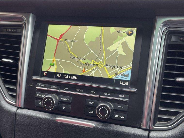 7-inch high-resolution TFT colour display, Brake pad wear sensors front and rear, External temperature gauge, Front/rear park distance control, Instrument cluster with high-resolution 4.8-inch TFT colour display, Mobile telephone preparation, Off-road button, On board computer, Porsche communications management, Power tailgate, Service interval indicator, Sports button in centre console, Diesel particulate filter, Porsche stability management (PSM), DAB Digital radio, USB interface in rear, 2 speed front wipers + intermittent wipe, Colour coded bumpers, Day time running light, Electric front and rear windows + anti trap + one touch, Electric/heated/folding door mirrors, Front fog lights, Heat insulating laminated glass, Heated rear window with auto timer, Heated washer jets, Intermittent rear wash/wipe, Painted side air intakes, Rain sensor, Tinted LED tail lights, Towbar preparation, Trailer Stability Programme, Welcome home function, 3 zone climate control, 4 12v Sockets, 4 way adjustable front head restraints, 40:20:40 split folding rear bench seat, Active carbon filter, Air quality sensor, Automatic air recirculate, Clothes hooks on front seat backrests, Front and rear cupholders x 2, Front armrest, Front reading lights, Ignition Lock illumination, Illuminated air conditioned glovebox, Illuminated centre console storage, Illumination of luggage compartment, Isofix system on outer rear seats, Pollen filter, Rear centre armrest, Rear headrests, Rear reading lights, Retractable Loadspace Cover, Retractable luggage net, Steering wheel gearshift paddles, Storage bins on all doors, Storage compartments in cargo area side walls, 3 point automatic seatbelts, 3 point rear seatbelts, ABS+ABD, ASR, Curtain airbags, Electronic parking brake, Front seat belts warning, Front seatbelt pretensioners + load limiters, Front side airbags, Full size driver and passenger airbags, Height adjustable front seatbelts, Hill hold control, Manual passenger airbag deactivation function, Motor Slip Regulation (MSR) - Engine Drag Torque Control, PTM (Porsche Traction Management), Silver anodised brake calipers, Two tone horn, Tyre pressure monitoring system, Alarm system, Electronic transponder immobiliser, Remote central locking, Trim strip in silver,