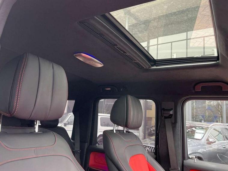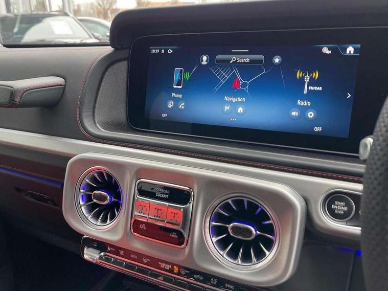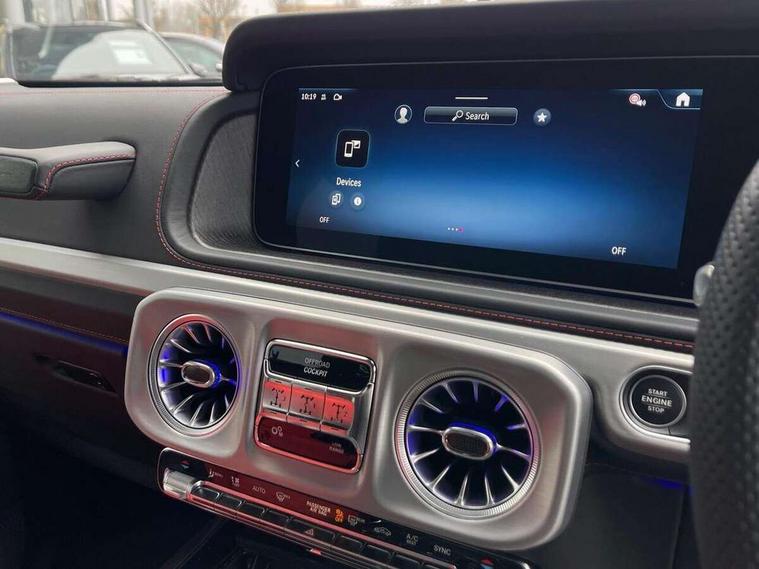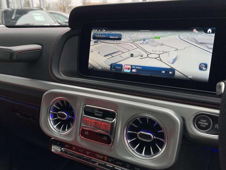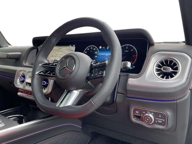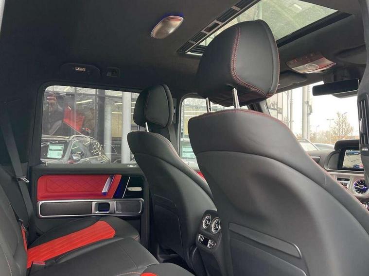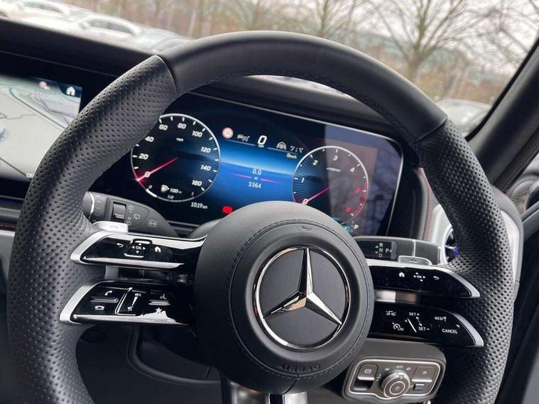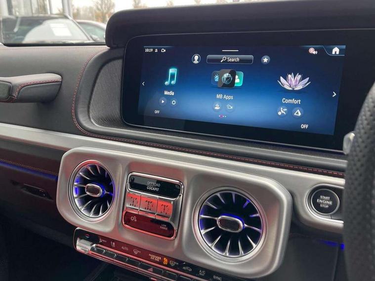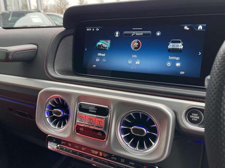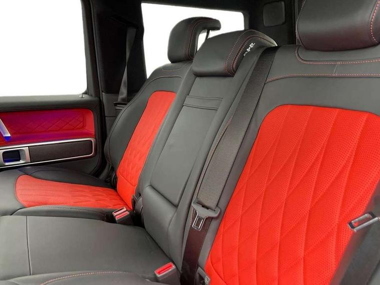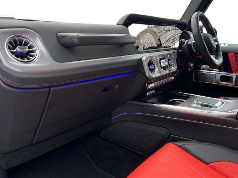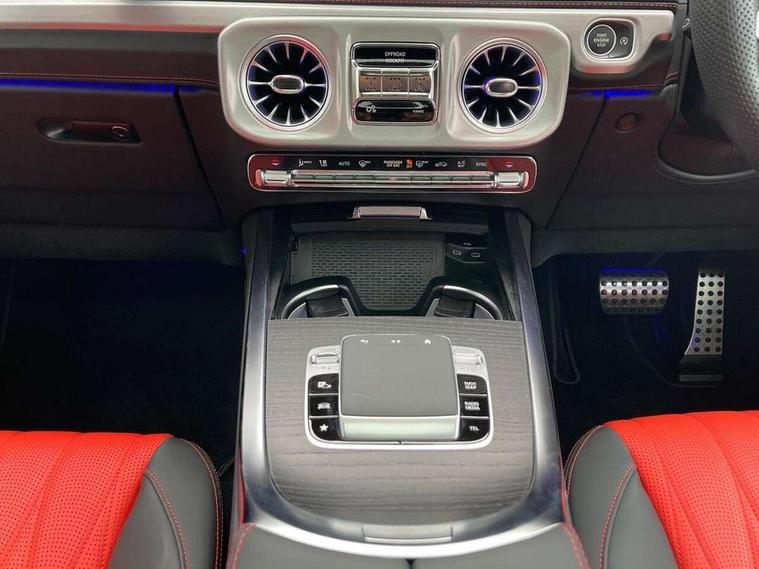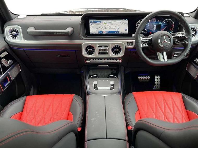 360 degree parking camera, Active parking assist with PARKTRONIC, Attention assist, Bluetooth interface for hands free telephone, Communications module (LTE), Cruise control with variable speed limiter, DYNAMIC SELECT - 7 drive programmes (Comfort, eco, sport, individual, trail, rock, sand), MBUX augmented reality for navigation, Mercedes connect me, Mercedes-Benz emergency call, PAS, Passive person presence reminder, Remote Services Premium, Service indicator (ASSYST), Smartphone integration with Apple CarPlay and Android auto, Trip computer, Widescreen cockpit with dual bonded 12.3" widescreen displays, Wireless charging, 4MATIC permanent four wheel drive, 9G-TRONIC transmission, Diesel particulate filter (DPF), Differential lock, Low range gear reduction (Electronically selectable while driving), Suspension with selective passive damping system, 2 USB ports in the rear, Aux-in socket, Burmester 3D surround sound system, DAB digital radio tuner, MBUX multimedia system, Sound personalisation, 3rd brake light, Adaptive highbeam assist plus - automatic low high beam switching, AMG Line exterior, Automatic headlamp activation, Automatically dimming rear view mirror, Bumper insert in stainless steel, Dark tinted heat insulated glass, Door mirrors - Electrically adjustable/heated/integrated indicators, front area lighting and automatically dimming driver's mirror, Electric sunroof sliding, with one-touch opening, Front and rear electric windows, Heated windscreen, LED daytime running lights, Memory function for exterior mirrors, Multibeam LED headlights with anti-dazzle feature, Privacy glass - Dark glass from B-pillar backwards, Rain sensor windscreen wipers, Rear side wing doors, Rear wiper, Tail lights featuring LED technology, Towbar, Trailer coupling with ESP trailer stabilisation, Transparent Bonnet, Underguard in silver, 1/3 to 2/3 split folding rear seats, 12V socket in centre console, rear and load compartment, 2 cup holders in front and rear, 3 seat bench in 2nd row, Ambient lighting with 64 colours and projection of brand logo, AMG floor mats with AMG lettering, AMG sports seats, Centre armrest between front seats with integrated stowage compartment, Cushion length adjustment with gapless cushion, Designo dinamica microfibre roof lining in Black, Electrically adjustable steering column, with automatic adjustment for entry/exit, Exclusive line interior, Front head restraints, Heated rear seats, Heated steering wheel, Ionisation of interior air including fine particle activated charcoal filter system, Luggage compartment cover, Memory function for front seats, Memory function for head restraints and steering wheel, Multifunction sports steering wheel in nappa leather, Partition net, Rear head restraints, Single front passenger seat, THERMOTRONIC automatic climate control system with 3 climate zones and 3 climate styles - Medium, Diffuse and Focused, Stowage space pack - G class, 3x3 point rear seatbelts, ABS with Brake Assist, Airbags - windowbags, Brake calipers with Mercedes-Benz lettering, Driver/Front Passenger airbags, Electronic four wheel traction control, ESP with ASR, Front side airbags, Hill start assist, i-Size child seat attachment system for the outer rear seats, PRE-SAFE system for preventive occupant protection, Rear door child safety locks, Rear side airbags, Seat belts, 3-point design in black, Seatbelt pretensioners, Tyre pressure monitoring system, Anti-theft alarm system/interior protection with tow-away protection and interior monitoring systems, Dashcam, Guard 360 degree vehicle protection plus, Immobiliser, Keyless Go starting function, Full size spare wheel,