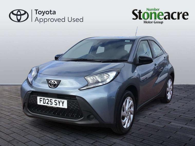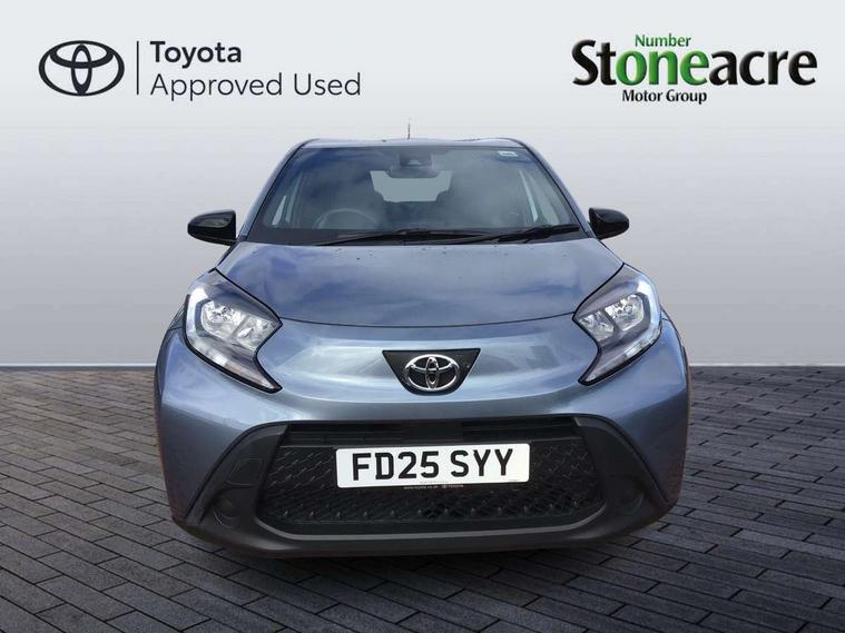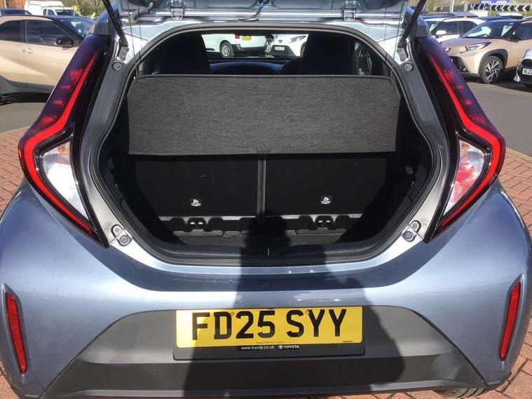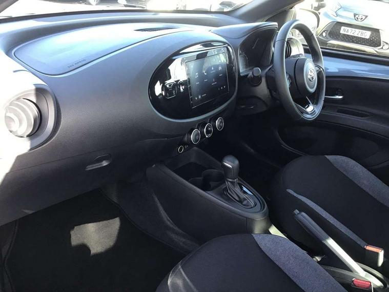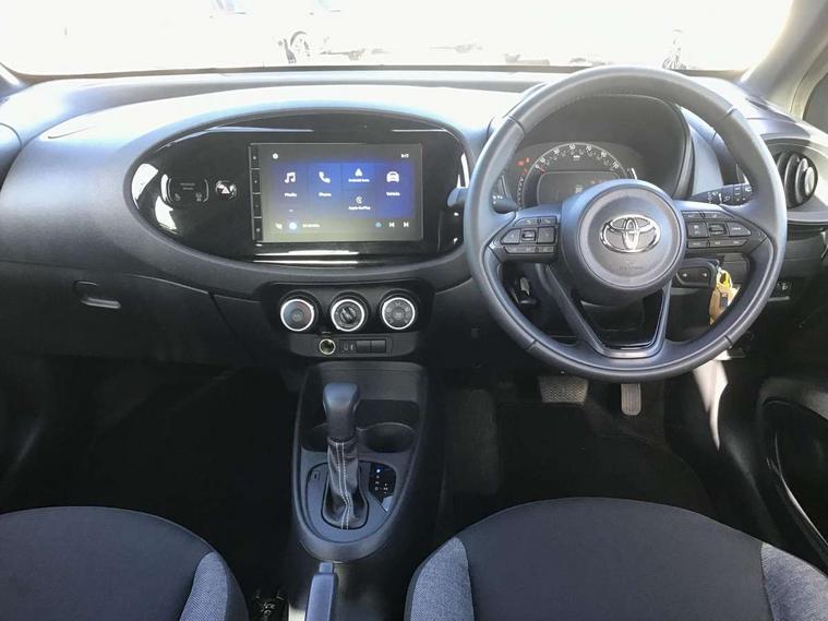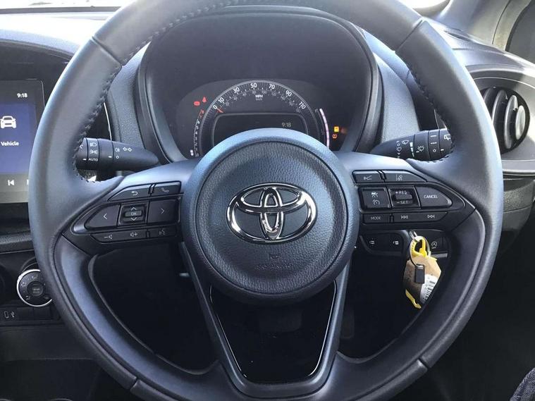 4.2" TFT colour screen, Adjustable speed limiter, Analogue speedometer, Bluetooth connectivity, Digital tachograph, Driver attention alert system, eCall emergency call system, ECO-driving indicator, Electric power steering, Intersection turn assist, Key reminder warning, Noise reduction kit, Pre collision system with emergency steering assist, Reversing camera with static guide lines, Smart phone integration with Apple car play/Android Auto, Speed limit display, Start and stop, Vehicle Stability Control (VSC), 4 speakers, 9" HD multimedia display touch screen with Toyota smart connect, DAB digital audio broadcast, USB connector, Auto headlights, Automatic headlights cut-off, Bicycle towing hook, Black lower front grille, Black rear bumper, Black side protection mouldings, Black upper front grille, Black wheel arch mouldings, Body colour door handles, Body coloured front bumper, Boot door scuff plate, Electric heated door mirrors, Follow me home headlights, Front power windows, Gloss black door mirrors, Headlight cut-off reminder, LED daytime running lights, LED front light guide, LED High mounted stop lamp, Manual day/night rear view mirror, Manual headlight levelling, Pagoda roof, Power adjustable door mirrors, Power back door, Projector halogen headlights, Rain sensor, Rear combination lights LED bulb type, Rear side wing doors, Rear windscreen defogger, Rear windscreen wiper, Short antenna, Variable intermittent windscreen wipers, 12v power outlet - front, 2 seat bench in 2nd row, 3 spoke leather steering wheel, 50/50 split folding rear seat, Adhesive roof headlining, Adjustable speed limiter switch on steering wheel, Audio and telephone switches on steering wheel, Black insert on steering wheel, Boot light, Centre room light, Chrome interior door handles, Chrome surround on air conditioning buttons, Clean air filter, Fabric upholstery, Floor mats, Front and rear cup holders, Front head rest deco art, Front head restraints, Gear shift indicator, Height adjustable driver seat, Intelligent adaptive cruise control switch on steering wheel, ISOFIX child restraint system on rear seats, Lane departure alert switch on steering wheel, Leather gearshift knob, Light grey roof lining, Manual air conditioning, Manual tilt steering wheel, Manually reclining and sliding driver seat, Manually reclining and sliding front passenger seat, Multimedia switches on steering wheel, Pollen filter, Rear door pockets, Rear head restraints, Resin console box storage, Satin silver insert on gear shift knob, Silver stitching on gear shift knob, Single compartment glovebox with lights, Single front passenger seat, Soft tonneau cover, Sun visors with mirror on driver and passenger side, Voice recognition switch on steering wheel, Toyota safety sense pack - Aygo X, Anti lock braking system + Electronic brake force distribution, Child safety door lock, Emergency brake light signal (EBS), Hill start assist control (HAC), Passenger airbag on/off switch, Seat belt reminder for front and rear seats, Supplement restraints system (SRS) - 6 airbags, Traction control, Tyre pressure warning system, Immobiliser, Remote power door locks, Black air vent surround, Black wheel centre caps, Tyre repair kit,