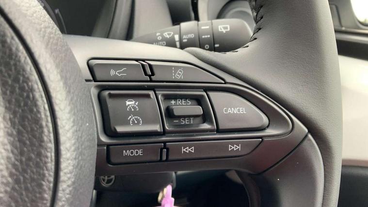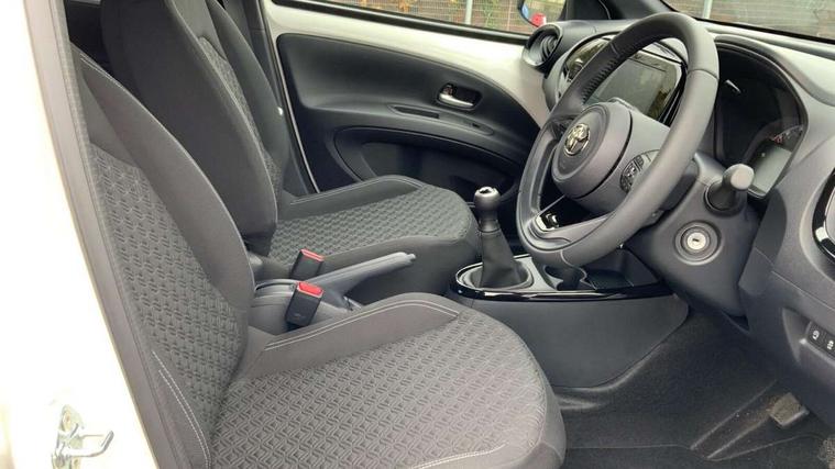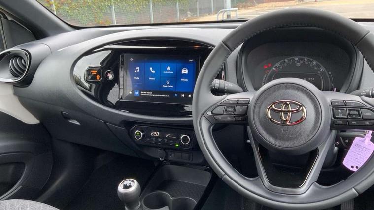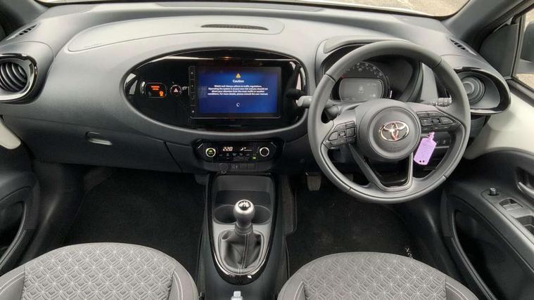 4.2" TFT colour screen, Adjustable speed limiter, Analogue speedometer, Bluetooth connectivity, Digital tachograph, Driver attention alert system, eCall emergency call system, Electric power steering, Intersection turn assist, Key reminder warning, Noise reduction kit, Pre collision system with emergency steering assist, Reversing camera with static guide lines, Smart phone integration with Apple car play/Android Auto, Speed limit display, Start and stop, Vehicle Stability Control (VSC), 4 speakers, 9" HD multimedia display touch screen with Toyota smart connect, DAB digital audio broadcast, USB connector, Auto headlights, Auto wipers, Automatic headlights cut-off, Bicycle towing hook, Black contrast roof, Black side protection mouldings, Black wheel arch mouldings, Body colour door handles, Body coloured front bumper, Boot door scuff plate, Eclipse black rear bumper, Electric heated door mirrors, Follow me home headlights, Front fog lights, Front power windows, Gloss black door mirrors, Gloss black upper front grille, Headlight cut-off reminder, LED daytime running lights, LED front light guide, LED High mounted stop lamp, Manual day/night rear view mirror, Manual headlight levelling, Pagoda roof, Power adjustable door mirrors, Power back door, Privacy glass, Projector halogen headlights, Rain sensor, Rear combination lights LED bulb type, Rear side wing doors, Rear windscreen defogger, Rear windscreen wiper, Short antenna, Variable intermittent windscreen wipers, 12v power outlet - front, 2 seat bench in 2nd row, 3 spoke leather steering wheel, 50/50 split folding rear seat, Adhesive roof headlining, Adjustable speed limiter switch on steering wheel, Audio and telephone switches on steering wheel, Auto air conditioning, Black insert on steering wheel, Black roof lining, Boot light, Centre room light, Chrome interior door handles, Chrome surround on air conditioning buttons, Clean air filter, Console box storage in body color, Fabric upholstery, Floor mats, Front and rear cup holders, Front head rest deco art, Front head restraints, Height adjustable driver seat, Intelligent adaptive cruise control switch on steering wheel, ISOFIX child restraint system on rear seats, Lane departure alert switch on steering wheel, Leather gearshift knob, Manual tilt steering wheel, Manually reclining and sliding driver seat, Manually reclining and sliding front passenger seat, Multimedia switches on steering wheel, Pollen filter, Rear door pockets, Rear head restraints, Satin silver insert on gear shift knob, Single compartment glovebox with lights, Single front passenger seat, Soft tonneau cover, Sun visors with mirror on driver and passenger side, Voice recognition switch on steering wheel, Toyota safety sense pack - Aygo X, Anti lock braking system + Electronic brake force distribution, Child safety door lock, Emergency brake light signal (EBS), Hill start assist control (HAC), Passenger airbag on/off switch, Seat belt reminder for front and rear seats, Supplement restraints system (SRS) - 6 airbags, Traction control, Tyre pressure warning system, Immobiliser, Remote power door locks, Black wheel centre caps, Tyre repair kit,