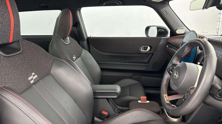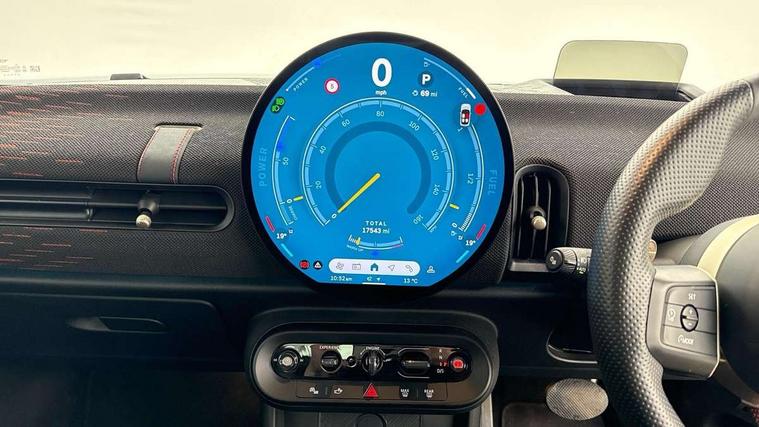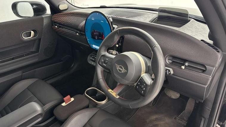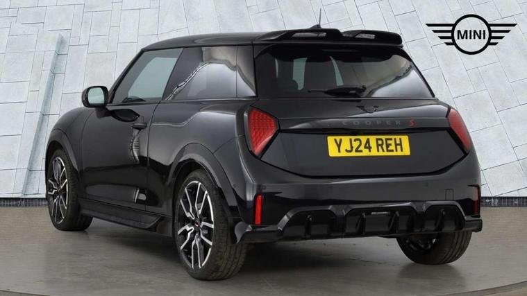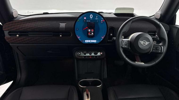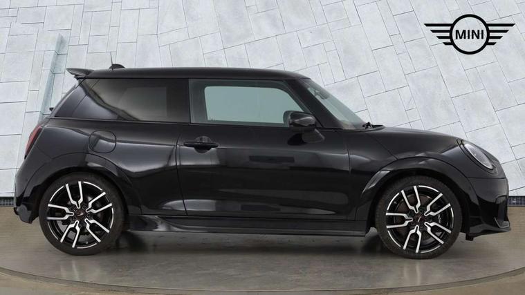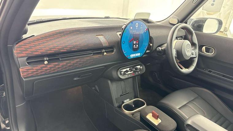 Central toggle bar, Circular OLED Screen, Compatible mobile phone bluetooth with audio streaming, Cruise control, Digital instrument cluster, Electro-mechanical speed dependant steering assistance, Emergency call service, MINI Experience Modes, Mini navigation system, On board computer, Service interval indicator, 7 speed steptronic sport transmission with double clutch, Adaptive suspension, DAB Digital radio, Personal eSim, Auto headlights, Electric adjustable heated door mirrors, Electric front windows, Front and rear apron, Heated rear window, Heated windscreen washer jets, High gloss black wheel arches, High gloss hexagonal patterned grille surround, JCW body kit, LED daytime running lights, LED indicator lights, LED rear lights, Rain sensor window wipers, Rear fog lights, Rear roof spoiler with airblades, Rear window wiper, 2 seat bench in second row, 2 zone automatic air conditioning, 60/40 rear seat bench, Ambient lighting, Cupholders, Dark headliner, Floor mats, Front and rear head restraints, Front compact armrest, Heated steering wheel, Height adjustable passenger seat, Lidded storage box in Black/Red knit, Luggage compartment lighting, Perforated Vescin steering wheel, Single front passenger seat, Steering wheel paddle shift, Sunvisors with vanity mirrors, Vescin/Cord upholstery, Driving assistant pack - Cooper Hatchback, Level 1 pack - Mini Hatchback, Park assistant pack - Cooper Hatchback, 3 point seatbelts on all four seats, 6 Airbags - front, side, head and seat belt tensioners, Acoustic pedestrian protection, Anti-lock braking system (ABS), Brake caliper in Black with JCW badge, DSC - Dynamic Stability Control, Electronic parking brake, Front and rear disc brakes, Front ISOFIX (iSize), Front passenger airbag deactivation, JCW Sport Brakes, Traction control, Tyre pressure monitoring system, Alarm, Immobiliser, Remote central locking, Black/Red decorative dash strap, JCW Black/Red dashboard knit, 18" JCW Lap spoke 2-tone alloy wheels, Tyre repair kit,
