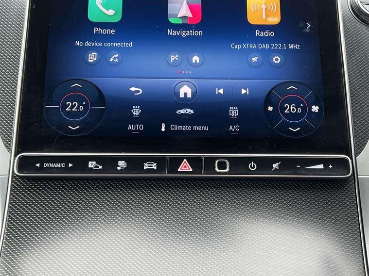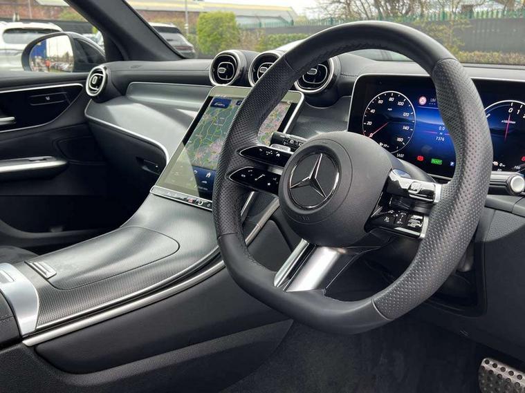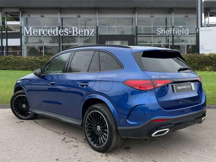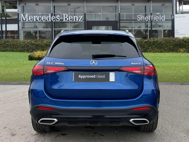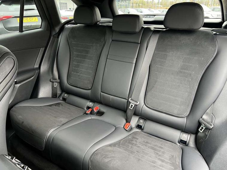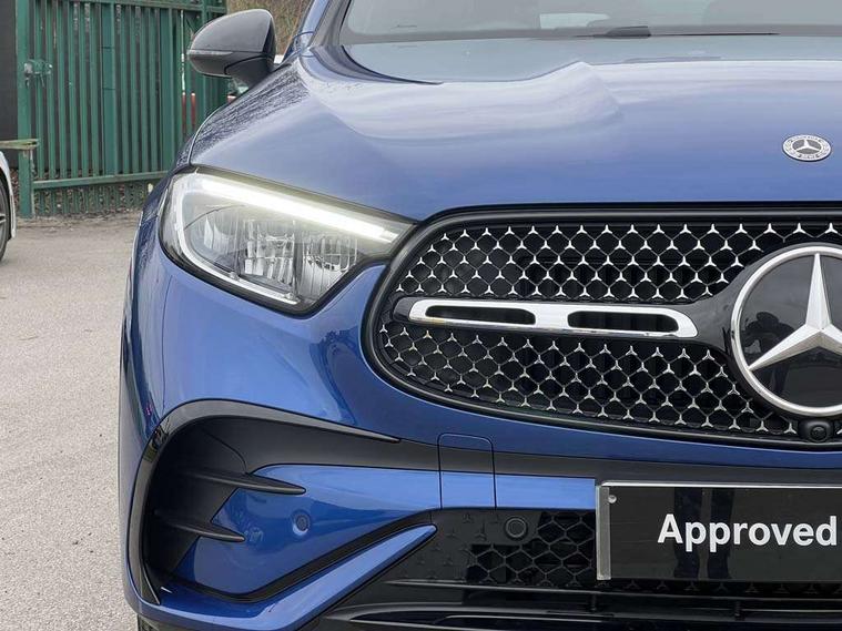 11.9" high resolution multimedia colour display, 12.3" Digital individually configurable instrument display, Acoustic presence indicator, Active lane keeping assist, Attention assist, Blind spot assist, Bluetooth interface for hands free telephone, Collision prevention assist plus, Cruise control with speedtronic variable speed limiter, Direct steer speed sensitive steering, DYNAMIC SELECT with a choice of driving modes (ECO, Comfort, Sport and Individual), eCall emergency call system, ECO start/stop function, Fingerprint scanner, Fluorescent jacket for driver, Hard disc navigation, Instrument display in miles with English lettering, MBUX navigation premium, MBUX voice control activated by keywords "Hey Mercedes", Mercedes me connect, Multi function trip computer, Outside temperature display, Remote and charging services plus, Remote boot release, Service indicator (ASSYST), Smartphone integration, Speed limit assist, Status display for rear seat belts in instrument cluster, Tailgate, Wireless charging system for mobile devices in the front, 1 x type 2 and 3 phase 4m straight wallbox cable, 49 litre fuel tank, 4MATIC permanent four wheel drive, 7.4 kW monophase on board charger, 9G TRONIC plus automatic transmission, Alternating current charging system (AC charging), Comfort suspension, DC Charging system, Petrol Particulate Filter (PPF), Self levelling suspension, DAB digital radio tuner, MBUX extended functions, Mercedes benz sound system, Pre installation for Mercedes Benz Link, Adaptive brake lights, Adaptive high beam assist, AMG bodystyling front apron, rear apron and side skirts, AMG Line exterior, Auto headlights, Black roof rails, Body colour bumpers, Electrically adjustable door mirrors, EQ Hybrid badging on front wings, Front and rear electric windows, Headlight washers, Heat insulating dark tinted glass, Heated rear window, High level LED brake light, LED high performance headlamps with integrated LED daytime running lights, LED indicator lights, LED rear fog lights, LED tail lamp, Radiator grille with Mercedes Benz pattern and integreated Mercedes star and louvre in dark grey matt with chrome inlay and black frame, Rain sensor windscreen wipers, Range adjustable headlights, Rear side wing doors, Rear wiper, Two chrome plated tailpipe trim elements, Variable front intermittent wipers, Welcome and follow-me home light functionality, Wheel arch liners in the vehicle colour, 3 seat bench in 2nd row, 40:20:40 split folding rear seats, Ambient lighting premium with projection of brand logo, AMG floor mats, AMG line interior, Artico man-made leather/Microcut microfibre upholstery, Audio and onboard settings control on multifunction steering wheel, Automatic child seat recognition sensor, Black fabric roof lining, Double cup holder in centre console, Easy-pack removable load compartment cover, Front centre armrest with stowage compartment, Front head restraints, Galvanised steering wheel gearshift paddles, Heated front seats, Height/reach adjustable steering column, Illuminated glove compartment, Instrument panel and beltlines in ARTICO manmade leather in nappa look, Multifunction sports steering wheel in nappa leather, Partition net, Rear centre headrest, Rear head restraints, Rear top tether child seat ISOFIX attachment, Single front passenger seat, Sports pedals with stainless steel surfaces and rubber studs, Sports seats, Sun visors, THERMATIC automatic climate control, Anti theft protection package - GLC, Boot comfort package - GLC, Easy tailgate pack - GLC, Exterior chrome package - GLC, Interior chrome package - GLC, Interior lighting pack - GLC, Mirror pack - GLC, Night package - GLC Urban Edition, Parking package with reversing camera - GLC, Seat comfort package - GLC, Stowage space package - GLC 300e/300de, USB Package - GLC, 3 rear 3 point seatbelts, Active braking assist, Anti-lock braking system (ABS), ASR traction control, Automatic front passenger airbag deactivation, Black seat belts, Brake calipers with Mercedes-Benz lettering + perforated brake discs, Child proof door locks, Dual-stage airbags - driver and front passenger, driver knee bag and window bags for driver, front passenger and rear passengers, Electronic parking brake, Electronic stability programme (ESP) with curve dynamic assist and cross wind assist, Front and rear seatbelt reminder, Front passenger seat occupancy sensor, Front seatbelt pretensioners, Hill start assist, Tyre pressure monitoring system, Warning triangle and first aid kit, Automatic door locking, Guard 360 degree vehicle protection plus, Interior protection/immobiliser, Keyless Go starting function, Remote central locking, Silver grey diamond pattern trim with centre console in criss cross look, 20" AMG multi spoke light alloy wheels in painted black rim flange with high sheen finish, Summer tyres, TIREFIT with tyre inflation compressor,