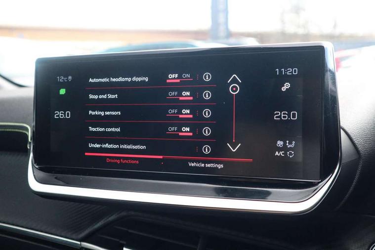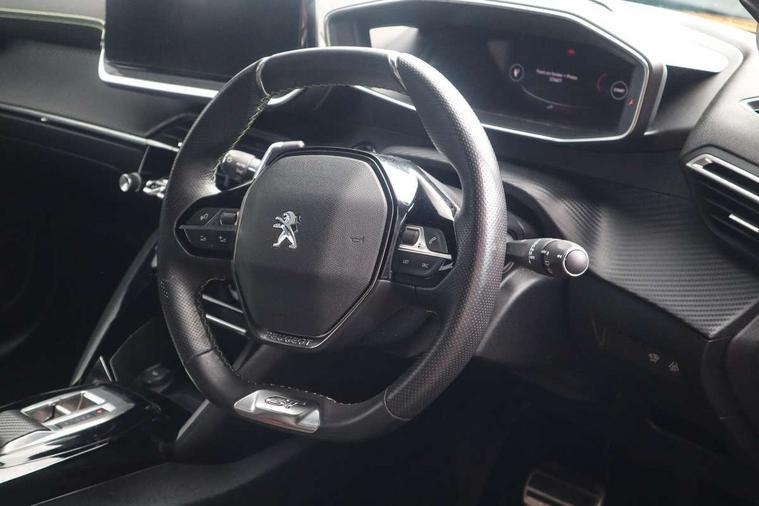 10" Capacitive colour touchscreen with connected 3D navigation, Bluetooth telephone facility, Driver attention warning, e-Toggle driving selector, Exterior temperature indicator with ice warning, Mirror screen with mirror link, apple carplay and android auto, Multi function trip computer, PEUGEOT i-Cockpit with compact steering wheel, PEUGEOT i-Cockpit with configurable 3D headup instrument panel, PEUGEOT SOS and assistance, Push button start, Smart phone docking station, Speed limit recognition and recommendation, Start/stop system, Visio park assist 180 with colour reversing camera + front and rear parking sensor, 2 front USB socket with USB-C, 2x USB sockets in rear, 6 speakers radio with mp3 compatible, DAB Digital radio, Voice recognition for radio, navigation and telephony features, 2 X Rear number plate lights, Automatic hazard light activation upon heavy brake application, Automatic lights, Automatic windscreen wipers, Body coloured exterior door handles, Dark tinted rear side and tailgate windows, Diamond Black roof, Electric front windows + one touch + anti-pinch, Electric rear windows with one touch/anti-pinch, Electrically adjustable, heated and power folding door mirrors, Extended diamond black rear spoiler, Follow me home headlights, Frameless electrochrome interior rear view mirror, Full LED headlights with smartbeam assist, Gloss black finish on B pillar, Gloss black rear cluster connecting strip, Gloss black wheel arch extensions, Gloss black window surround, GT model designation badging on C pillar, GT model designation badging on tailgate, Headlights left on audible warning, LED daytime running lights with 3 claw headlight with distinctive tooth design, LED side indicator lights integrated into door mirrors, LED third brake light, Model designation badges front and rear, Nera black door mirror shells, Peugeot scuff plates, Radiator grille - Dark chrome chequered and gloss black edge trim, Rear bumper with gloss black finish, Rear full LED 3D peugeot signature claw effect lights with daylight function, Rear lower bumper diffuser effect trim in gloss black, Rear reversing lights, Rear side wing doors, Rear windscreen wiper triggered automatically in reverse gear, Roof mounted aerial with fin design, Roof spoiler, Tailgate with heated rear windscreen and wiper blade, Twin chrome exhaust tailpipes, Variable front intermittent wipers, 1/3 to 2/3 split folding rear seats, 12V socket, 3 seat bench in 2nd row, 8 Colour personalisable ambient lighting, Aluminium pedals and foot rest, Automatic air conditioning, Automatic gear lever in full grain leather and satin chrome, Driver and front passenger seat manual adjustment in longitudinal and back rest angle, Driver and front passenger seat mechanical height adjustment, Driver and front passenger sport seats, Electric power steering with reach and rake adjustable steering column, Front and rear carpet mats in black with lime green stitch detail, Front centre armrest with storage compartment, Front LED interior light with 2 reading spotlights and rear interior light with timer, High centre console with 2 cup holders, ISOFIX child seat mounting points on passenger seat, Lime green contrast stitching to armrest, front centre console, door panels and dashboard facia, Map pockets on the backs of the front seats, Mistral full grain perforated leather steering wheel with aikinite stitch detail and satin chrome 'GT' emblem, Paddle shifts, Piano keys gloss black plated toggle switches to access main functions of the vehicle, Piano keys gloss black plated toggle switches to access touchscreen functions, Push button finished in black with chrome circle, Rear centre headrest, Roof lining - Mistral black, Seatbelt unfastened on the move audible and visual alert for front and rear seats, Single front passenger seat, 3 rear 3 point seatbelts, ABS (Anti-lock Braking System) with EBD (Electronic Brakeforce Distribution) and EBA (Emergency Braking Assistance), Active safety brake with night function/cyclists/pedestrians, Adaptive driver and front passenger airbags with passenger airbag deactivation function, Child locking functionality on rear doors, Driver/front passenger side airbags, Electric parking brake, ESP with Hill Assist, Front and rear curtain airbags, Front and rear disc brakes, Front optimised safety headrests and 3 x rear retractable headrests with height adjustable, Front three point retractable seatbelts with force limiters, Tyre pressure sensor, Acoustic vehicle alert system (AVAS), Automatic door locking when moving off, Deadlock, Electronic code immobiliser, Remote central locking, Thatcham cat. 1 alarm with anti lift sensor, Carbon effect Dashboard, front and rear door panel finish, 17" Bronx two-tone alloy wheels, Space saver spare wheel,