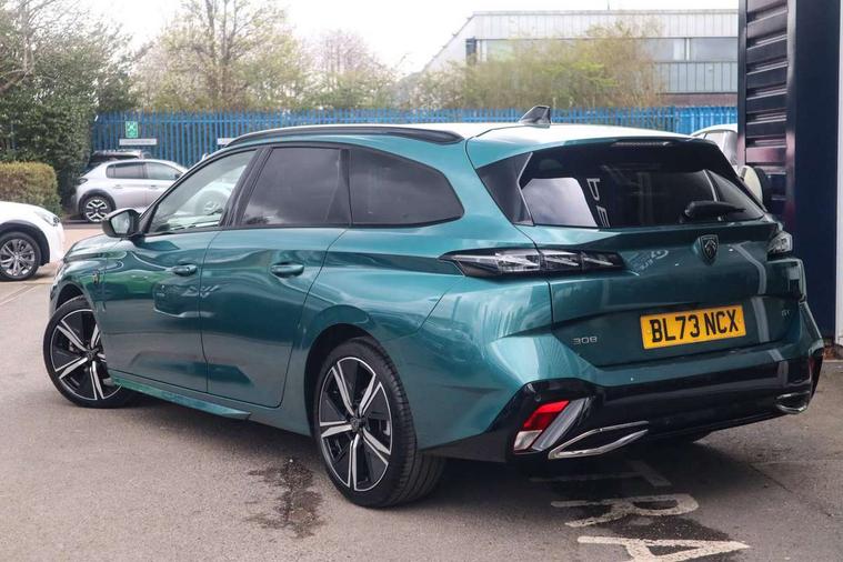 Bluetooth telephone facility, Compact drive selector, Driver attention warning, Emergency call service, Exterior temperature indicator with ice warning, Front and rear parking sensors, Intelligent speed adaptation, Lane keep assist, Mirror screen with wireless apple carplay and android auto, Multi driving mode selector - Eco / Normal / Sport mode selector, Multi function trip computer, Peugeot connect advanced with connected 3D navigation, PEUGEOT i-Cockpit - compact steering wheel, 10" HD colour touchscreen with configurable 3D headup instrument panel, PEUGEOT SOS and assistance, Service interval indicator, Speed limit recognition and recommendation, Sport pedals with foot rest, DAB Digital radio, Peugeot customisable iToggles, Voice recognition for radio, navigation and telephony features, 2 X LED rear number plate lights, Acoustic and tinted windscreen, Acoustic laminated front side windows, Automatic hazard light activation upon heavy brake application, Automatic triggered rear windscreen wiper in reverse gear, Bi-tone roof rails, Body colour door handles, Body colour rear roof spoiler, Dark chrome chequered radiator grille, Dark tinted rear side and tailgate windows, Electric operated/heated door mirrors, Extended lower body sills to the front and side, Frameless electrochrome rear view mirror, Front and rear electric windows with one touch/anti pinch, Full LED matrix headlights with automatic adjustment, Gloss black finish B pillar, Gloss black rear cluster connecting strip, GT model designation badging on tailgate, High beam assist, LED 3rd brake light, LED side indicator lights integrated into door mirrors, Lion emblem badging on front wings, Model designation badges on front and rear, Nera black door mirrors, Peugeot aluminium door sills, Peugeot signature LED daytime running lights, Power folding door mirrors, Rear full LED 3D Peugeot new claw effect lights with sequential welcome sequence upon unlocking the vehicle, Rear lower bumper gloss black diffuser effect trim, Rear reversing lights, Rear side wing doors, Tailgate with heated rear windscreen and wiper blade, Twin exhaust pipes with chrome surround, 12V socket, 2 front USB socket including 1 USB type c, 3 seat bench in 2nd row, 40/20/40 flat folding rear seats, 8 Colour personalisable ambient lighting, Automatic air conditioning with AQS 3, Carpet mats, Central front armrest with storage compartment, Dynamic front seats, Electric power steering with reach and rake adjustable steering column, Front central console with two cup holders, LED Glovebox light, Manual driving mode - change gear manually via steering mounted paddles, Multifunction full grain leather steering wheel with admite green stitching & GT badging, Piano keys gloss black plated toggle switches to access main functions of the vehicle, Rear centre armrest with cupholders, Roof lining - Mistral black, Seatbelt unfastened on the move audible and visual alert for front and rear seats, Single front passenger seat, Sunvisor with concealable mirrors and LED lighting, Twin USB charging ports in the rear (Type C), Two position boot floor, Driver sport pack with sports power steering - 308, Visibility pack with automatic magic wash windscreen wipers - 308, 2x Isofix child seat fitting on outer rear seats, 3x Rear three-point retractable seatbelts with force limiters in the outer rear seats, ABS + EBD + EBA, Active safety brake with night function/cyclists/pedestrians, Adaptive driver and front passenger airbags with passenger airbag deactivation function, Automatic post collision braking, Child locks on rear doors, Driver/front passenger side airbags, Electronic parking brake, ESP, Front and rear curtain airbags, Front optimised safety headrests and rear retractable headrests (x3), height adjustable, Front three point retractable seatbelts with force limiters, Front/rear disc brakes, Hill start assist, Tyre pressure sensor, Automatic door locking when moving off, Deadlocking system, Electronic code immobiliser, Locking wheel nuts, PEUGEOT Open and Go keyless entry system, Thatcham cat. 1 alarm with anti lift sensor, Tyre repair kit,