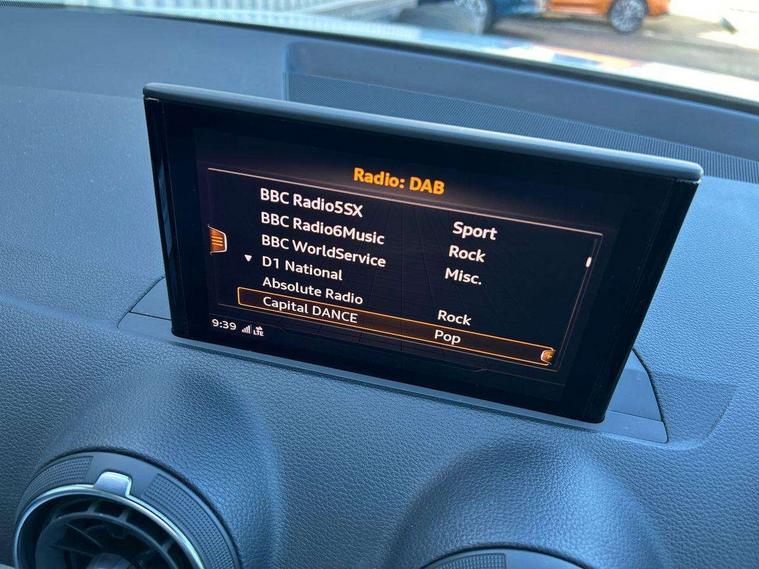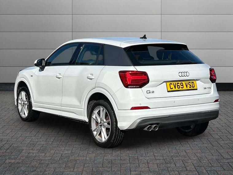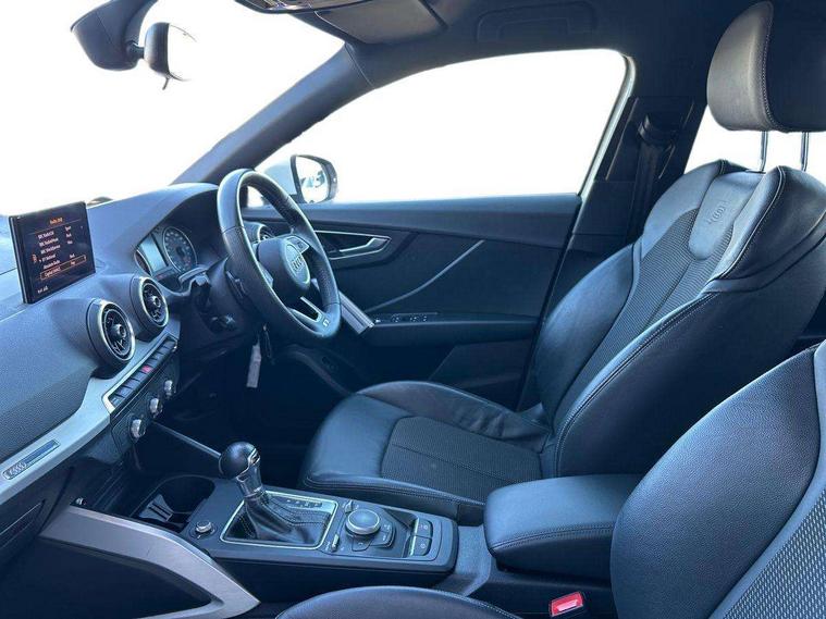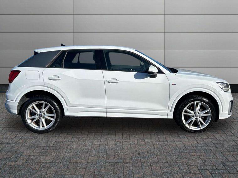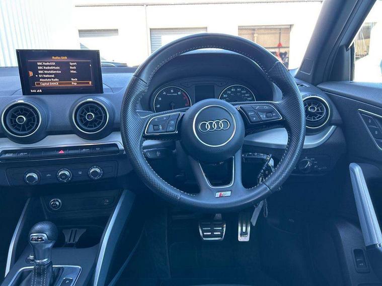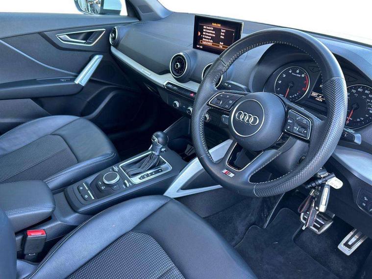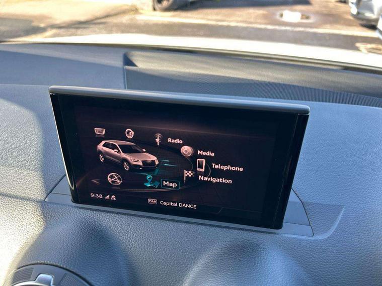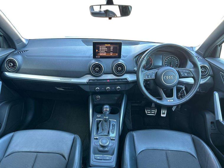 Audi drive select, Audi smartphone interface, Automatic start/stop system with recuperation, Bluetooth interface includes bluetooth audio streaming, Cruise control, MMI - Multi Media Interface control system, MMI SD card integrated nav with 3D map display, dynamic route guidance with TMC, MMI search, natural voice recognition and myAudi special destinations, Power operated tailgate, Progressive steering, Service interval indicator, Dynamic suspension, 2 x SDXC card reader, Audi music interface - apple iPod, apple iPhone, USB storage media, compatible MP3 players, 2 x USB charging points and 1 x Aux-in, CD Drive, DAB digital radio and AM/FM radio, MMI radio plus with 7" colour MMI screen and MMI controller, Black window trims, Bumper in full body colour paint finish, Chrome exhaust tailpipe, Electrically adjustable and heated door mirrors with integrated LED side indicators, Front and rear electric windows, Front underbody guard and rear diffuser trim in selenite silver, Front windscreen with grey tinted sunband, Headlight washers, Interior mirror, LED headlights with LED rear lights + dynamic rear indicators, LED indicator lights, Manual folding door mirrors, Rain and light sensors, Rear wiper, S Line badges on the front wings, S Line body styling - front and rear bumpers, side skirts, radiator grille, rear diffuser insert and front air intakes, 60/40 split folding rear seat bench, Black cloth headlining, Electronically operated child locks, Floor mats with contrast stitching, Front centre armrest, Front headrests, Front sport seats with S embossed logo, Height/reach adjust steering wheel, Illuminated door sill trims with S logo, ISOFIX child seat mounting for front passenger with airbag deactivation and outer rear seat including top tether attachment point for outer rear seats, Manual seat adjustment including seat height adjustment for front seats, Stainless steel pedals, Storage compartments - Glovebox, cupholder compartment in centre console, storage compartment in rear centre console, front and rear door pockets, Three rear headrests, Non smoking pack - Q2, 3x3 point rear seatbelts, 6 airbags - Front, curtain and front side airbags, Electromechanical parking brake, Electronic stabilisation control including ABS, ASR and EDL, Extended and proactive pedestrian protection, Hill hold assist, Multi collision brake assist, Pre-sense front with pedestrian recognition, Seatbelt monitoring, Tyre pressure warning light, Warning triangle and first aid kit, Anti theft alarm, Anti theft wheel bolts, Central locking system with remote control key, Aluminium interior element,