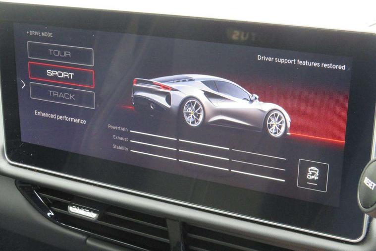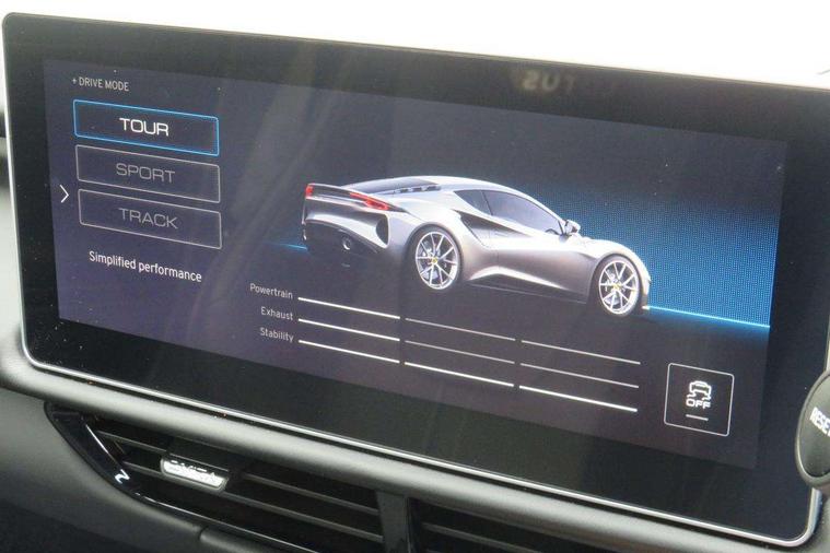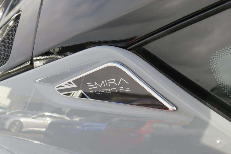 10.25" touchscreen MMI, 12.3" TFT supervision cluster display, Apple car play/Android Auto, Cruise control, Drive mode selector, eCall emergency call system, Embedded navigation system, Engine start button, Exterior temperature display, Hands free bluetooth system, Hydraulic PAS, On board diagnostics, Paddle shift with PRND selector, Rear parking sensors, Rev counter, Service interval indicator, Speed limiter, Steering wheel with cruise control operation, Tailgate, Travel data recorder, Trip computer, Voice control system, Anti-roll bars, Exhaust particle filter, Launch control, Auxiliary input socket, Centre console media control knob, DAB Digital radio, iPod interface, Steering wheel audio controls, USB port, Auto dimming rear view mirror, Automatic headlight levelling, Automatic lights, Body coloured bumpers, Door mirror indicators lights, Door mirror memory, Door sill protection, Electric adjustable door mirrors, Emira branded sill kickplates, Emira branding to front and rear lamp with Emira logo headlight internal bezel, Front electric windows, Initial anti-corrosion treatment, LED 3rd brake light, LED daytime running lights, LED fog lights, LED headlamps, LED indicator lights, NOx storage catalytic converter, Power folding and heated door mirrors, Rain sensor, Rear boot, Rear LED lights, Rear window heating, Tailgate demist function, Variable front intermittent wipers, Welcome home lighting, 12 way electrically adjustable front seats with driver's memory function, 12V Accessory socket, Aluminium treadplates with Emira engraved, C-pillar union flag badge "Emira Turbo SE", embossed aluminium and black monochrome texture, Cabin air filter, Cargo net, Central multimedia display, Centre console armrest, Coat hooks, Cup holders, Driver seat base with adjustable inclination, Driver/passenger electric lumbar adjustment, Emira badge on dashboard in front of passenger, Front head restraints, Front passenger seat backrest adjust, Front sport seats, Height/reach adjustable steering column, Illuminated passenger vanity mirror, Luggage compartment light, Multifunction sport steering wheel, Premium floor mats with grey contrast stitch, Satin chrome interior trim finishers, Single front passenger seat, Single zone climate control air conditioning, Sport pedals, Steering wheel lower spoke finished in satin chrome, Stowage - door bin, glovebox, centre console, Timed interior light, White ambient lighting, Anti-lock braking system (ABS), Branded brake calipers, Curtain Airbag, EBA, Electronic parking brake, Electronic Stability Programme (ESP), Emergency door unlock, Front and rear seatbelt reminder, Front seatbelt pretensioners, Front side airbags, Full size driver and passenger airbags, Height adjustable front seat belts (4 levels), Hill holder, Passenger airbag deactivate switch, Power assisted brakes, Traction control, Two piece high performance brake discs, Tyre pressure monitoring system, Alarm, Central locking, Immobiliser, Keyless start, Locking wheel nuts, Remote central locking, Vehicle tracking system preparation, Warranty - 3 Years/Unlimited Mileage, A-pillars, B-pillars, cantrail and headlining finished in black Alcantara, Leather interior door trim, Metal finish dash trim, Tool kit, Tyre repair kit,