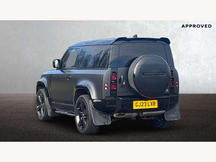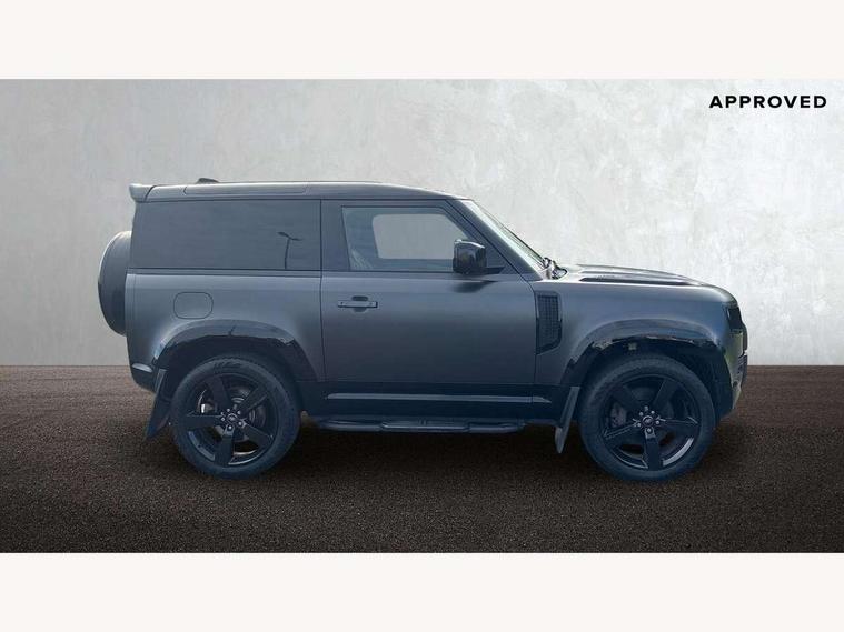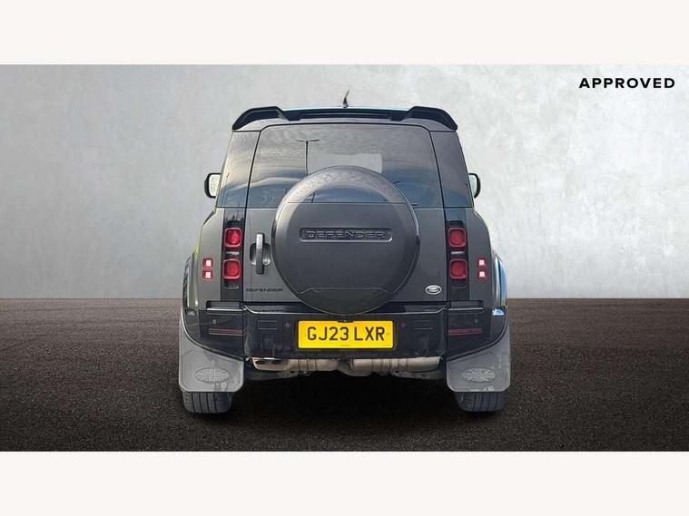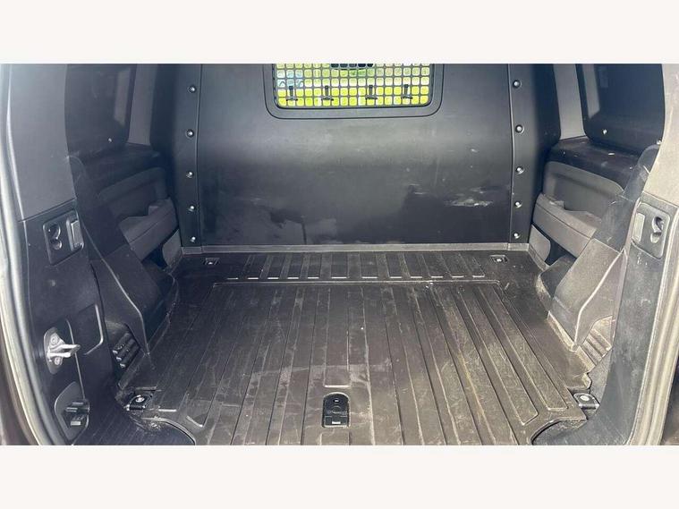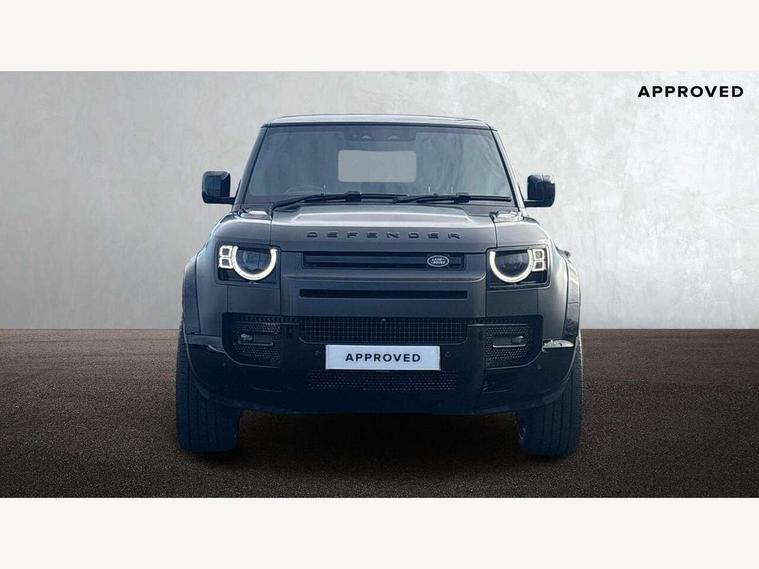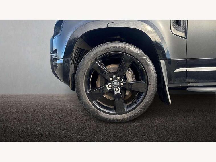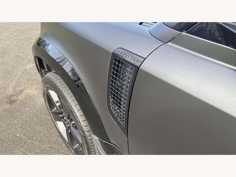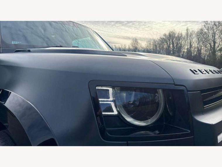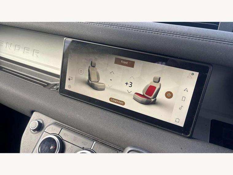 Customer Configurable Autolock, 360 parking aid, 3D Surround Camera with 360 View, 180 Rear View, Front Traffic Detection, Forward Vehicle Guidance, Tow Hitch Assist and clear sight Ground View, Blind spot assist, Brake Hold, Driver condition monitor, Electric power assisted steering (EPAS), Lane keep assist, Low traction launch, Pivi pro connected, Rear traffic monitor, Traffic sign recognition adaptive speed limiter, Trip computer, Tyre pressure monitor, Wade Sensing, Android Auto, Apple CarPlay, DAB Radio (Digital Audio Broadcasting), Meridian 280W sound audio system with 7 speakers with subwoofer, Alpine lights, Assisted tailgate, Auto High Beam Assist, Automatic headlight levelling, Automatic headlights and rain sensitive front wipers, Centre high mounted stop light, Electric heated/power fold door mirrors with approach lights and auto dimming driver side, Electric windows with one touch open/close and anti-trap, Exterior signage panel, Follow me home lighting, Front fog lights, Heated rear window with timer, Heated windscreen, LED tail light, Privacy glass, Puddle lights, Rear fog lights, Rear wash wiper, Side-hinged tailgate, Standard roof, Standard tread plates, Additional lashing points, Dual zone climate control, Durable rubber cabin flooring, Footwell lights, Full height bulkhead behind row 1 seats, Glovebox storage, High sided rubber mats, Loadspace cover, Loadspace hooks, Loadspace rubber mat, Manual adjustable steering column, Overhead stowage for sunglasses, Rear centre headrest, Rear reading light, Standard interior, Standard seating configuration, Sunvisors with illuminated vanity mirrors, Twin front cupholders, Upgraded loadspace LED lighting, Online pack - Defender with data plan, Brake pad wear indicator, Electronic traction control, Emergency braking, Front airbags, with passenger seat occupant detector, Power operated child locks, Remote for (e-Call, Optimised assistance call, InControl app, Climate, beep and flash and door), Seat belt reminder, Intrusion sensor, Keyless entry system, Locking wheel nuts, 8 speed automatic transmission, ABS and EBA, All wheel drive, CBC - (Cornering brake control), Dynamic stability control, Electronic brake force distribution, Electronic park brake, Gradient acceleration control, Hill Descent Control, Hill start assist, Particulate filter (DPF), Push button start, Roll stability control, Trailer stability assist, Twin speed transfer box (high/low range),