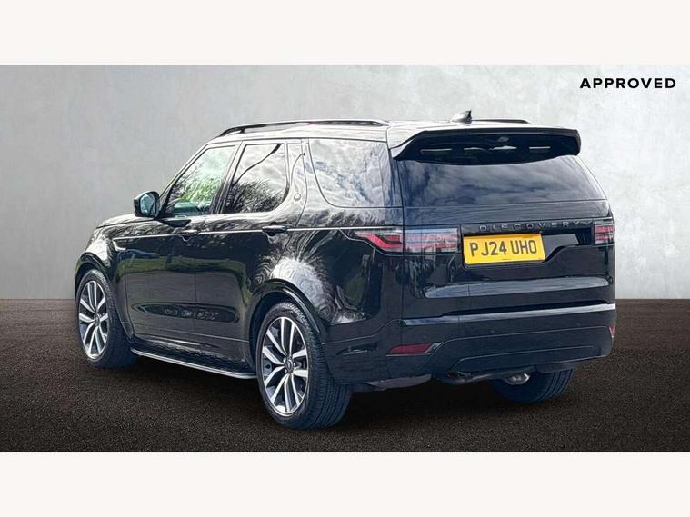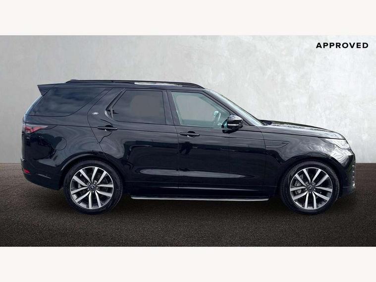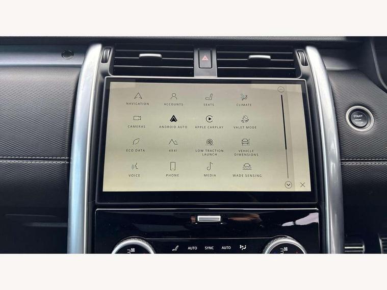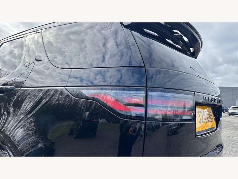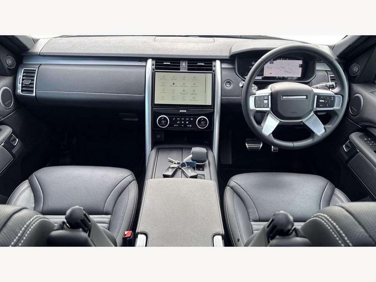 11.4" touchscreen, 3D surround camera, Adaptive cruise control, Android Auto, Apple car play, Blind spot assist, Driver condition monitor, Electric power assisted steering (EPAS), Emergency services call system, Front and rear parking aid, Interactive driver display, Lane keep assist, Power inner tailgate, Power tailgate/boot lid, Push button start, Rear collision monitor, Rear traffic monitor, Remote, Remote boot release, Service interval indicator, Speed proportional steering, Sportshift selector, Stop/start system, Traffic sign recognition with adaptive speed limiter, Trip computer, Wade Sensing, Adaptive dynamics, Dynamic stability control, Electronic air suspension, Front axle open differential, Digital Audio Broadcast radio-DAB, Dynamic volume control, Pivi pro connected, USB/aux input socket, Acoustic laminated windscreen, Animated directional indicators, Auto dimming interior rear view mirror, Auto high beam assist, Automatic headlight levelling, Automatic headlights, Body colour bumpers, Body colour door handles, Centre high mounted stop light, D300 badge, Electric heated/power fold memory door mirrors with approach lights and auto dimming driver side, Electric windows with one touch open/close and anti-trap, Heated rear window, Heated windscreen, LED darkend tail lights, LED headlights with signature DRL, Narvik black Discovery script, Privacy glass, Puddle lights, Rain sensing windscreen wipers, Rear fog lights, Rear side wing doors, Rear wash/wipe, Trailer stability assist, Variable intermittent wiper, 12V power sockets, 12V USB charging socket in loadspace, 18 way heated electric memory driver seats with captains armrest + manual height adjust headrest + 4way power lumbar support, 2 seat bench in 3rd row, 3 seat bench in 2nd row, Central hinged twin lidded storage, Ebony morzine headlining, Electric adjustable steering column, First and second row door bins, Footwell lights, Front and rear 12V with front USB, Front passenger seat isofix location point, In-facia storage, Isofix child seat preparation for front passenger seat, Loadspace cover, Loadspace Hook, Loadspace light, Lockable glovebox, Lower centre console storage, Luggage tie downs in loadspace, Multi function steering wheel, Overhead lighting console, Premium carpet mats, Premium non-leather steering wheel, Rear ISOFIX, Shopping bag hook, Single front passenger seat, Storage glovebox, Sunvisors with illuminated vanity mirrors, Third row storage, Treadplates with metal inserts, Twin front cupholders with cover, USB with 12V socket in centre console, Black exterior pack - Discovery Dynamic SE/HSE, Online pack with data plan - Discovery, 3x3 point rear seatbelts, Anti-lock braking system (ABS), Brake pre-fill technology, Cornering brake control, Curtain airbags, Customer configurable autolock, Driver and passenger airbags, EBD - Electronic brakeforce distribution, Electronic traction control, Emergency brake assist, Emergency braking, ESP, Front side airbags, Gradient acceleration control, Hill descent control, Hill launch assist, Power operated child locks, Rear airbags, Roll stability control, Seat belt reminder, Torque vectoring brake, Tyre pressure monitoring system, Immobiliser, Intrusion sensor, Keyless entry, Locking wheel nuts, Remote central locking, All terrain tyres,
