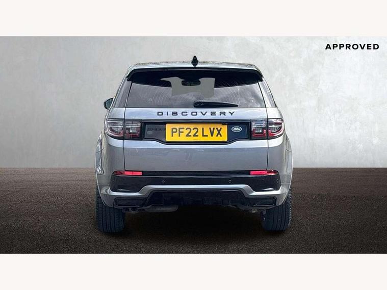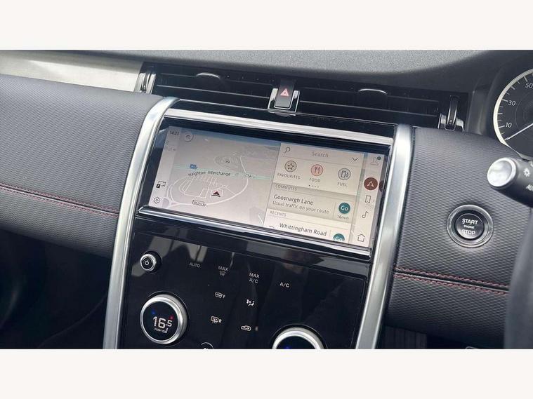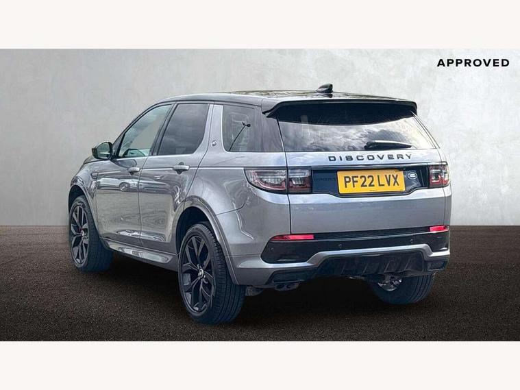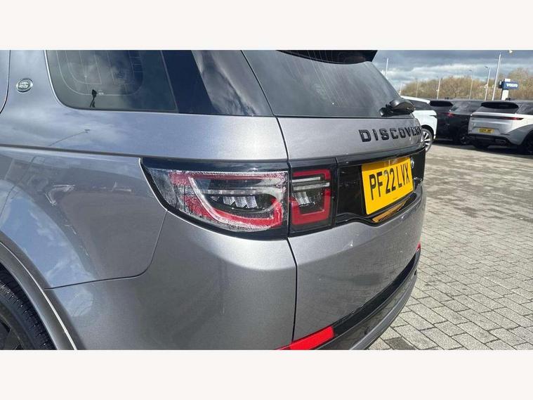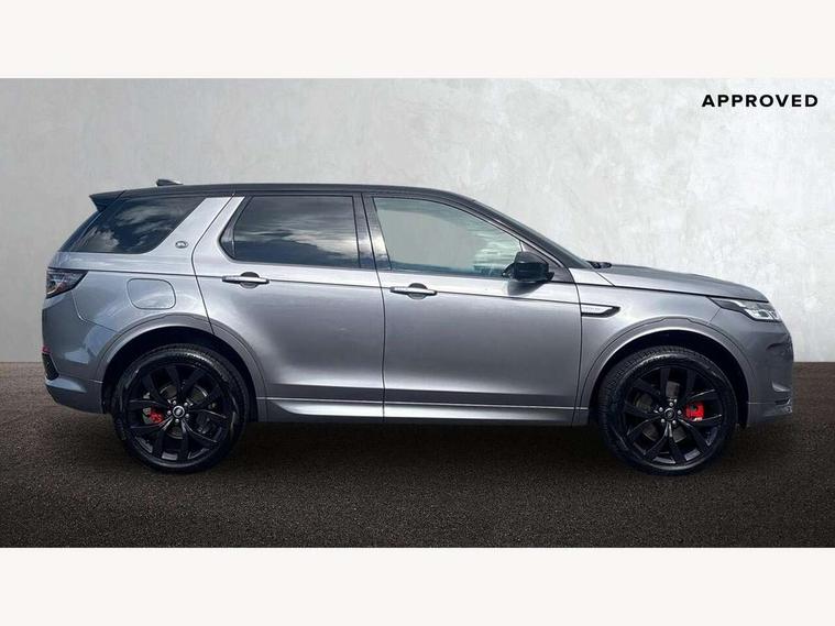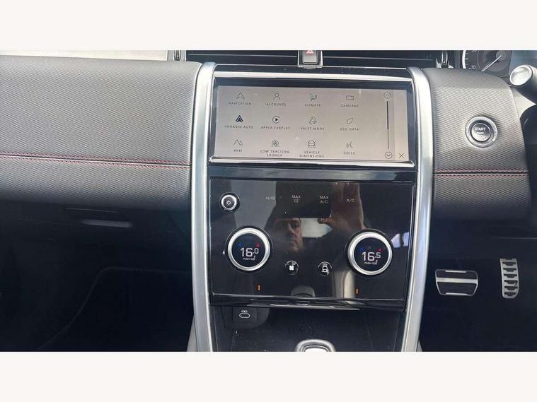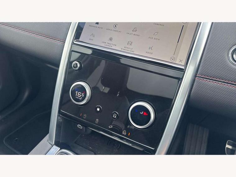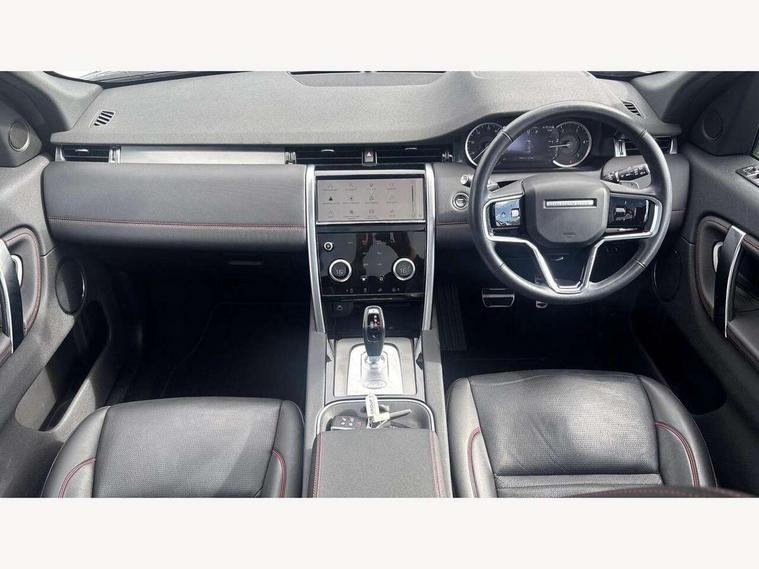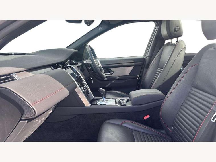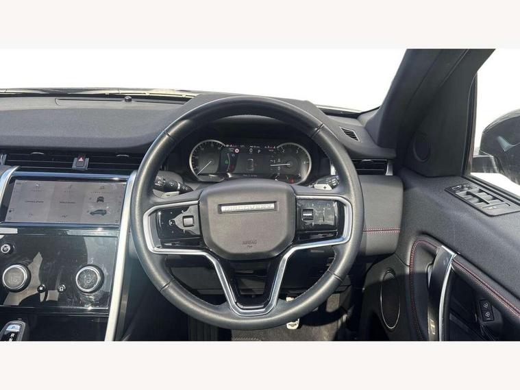 10" touch screen, Adaptive cruise control, Android Auto, Apple CarPlay, Driver condition monitor, eCall emergency call system, Front and rear parking aid, InControl remote premium, Lane keep assist, Locking fuel flap, PAS, Pivi Pro connected navigation system with upgraded Infotainment, Powered tailgate/boot lid, Push button start, Rear collision monitor, Service interval indicator, Traffic sign recognition with adaptive speed limiter, Trip computer, Wade Sensing, All terrain progress control, Coil suspension system, Diesel particulate filter, Dynamic stability control, Terrain Response 2, Bluetooth connectivity including audio streaming, Digital Audio Broadcast radio-DAB, Steering wheel mounted audio controls, 3rd brake light, Automatic headlights, ClearSight interior rear view mirror, Electric front/rear windows, Electric heated/power fold door mirrors with approach lights and auto dimming driver side, Fixed panoramic sunroof with powered sunblind, Front and rear recovery eyes, Heated rear window, Heated windscreen including heated washer jets, No badges, R Dynamic badge, Rain sensing windscreen wipers, Rear fog lights, Rear side wing doors, Rear wing door, Rear wiper, 5 seats, Bright metal pedals, Centre console with armrest, Footwell lights, Front and rear grab handles, Front passenger isofix child seat attachment, Loadspace cover, Loadspace light, Overhead lighting console, Overhead stowage for sunglasses, Rear headrests, Satin chrome gearshift paddles, Sunvisors with illuminated vanity mirrors, Tilt/reach adjustable steering wheel, Black exterior pack - Discovery sport, Online pack with data plan - Discovery, 3 point seatbelts on all seats, ABS, Brake hold function, Child locks on rear doors, Collision mitigation braking system, Cornering brake control (CBC), Driver/Front Passenger airbags, Drivers knee airbag, Electronic brake force distribution, Electronic parking brake, Emergency brake assist, ESP + traction control, Hill descent control, Hill launch assist, Pedestrian airbag system, Rear seat ISOFIX, Roll stability control, Side and curtain airbags for front and 2nd row seats, Trailer stability control, Tyre pressure monitoring system, Battery Back Up System (BBUS) with tilt sensor, Global lock and unlock switch on driver door, Intrusion sensor, Keyless entry, Locking wheel nuts, Centre stack rails in noble chrome,
