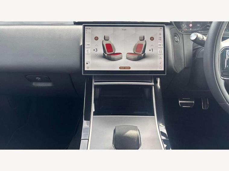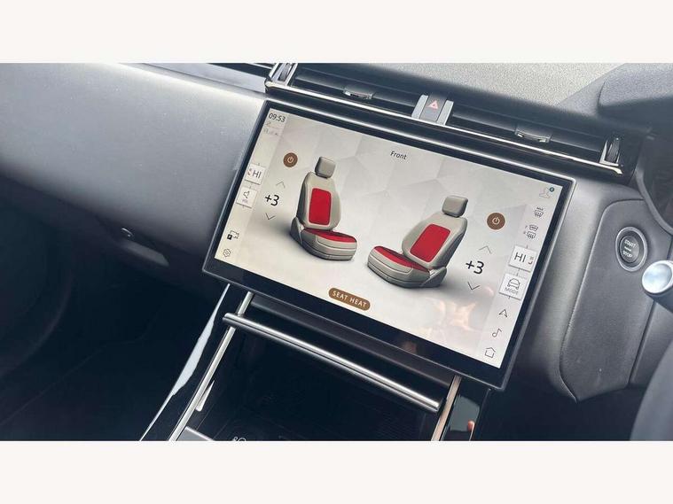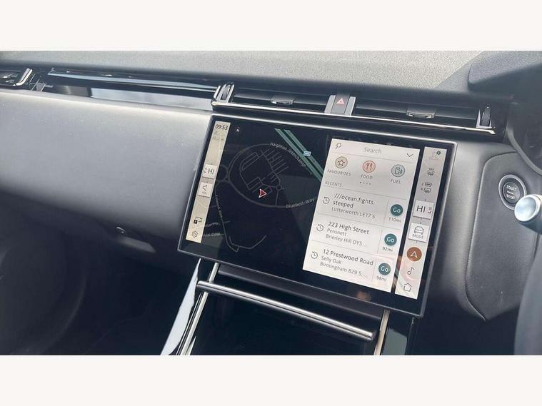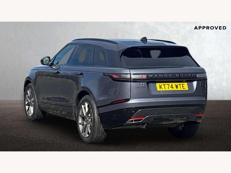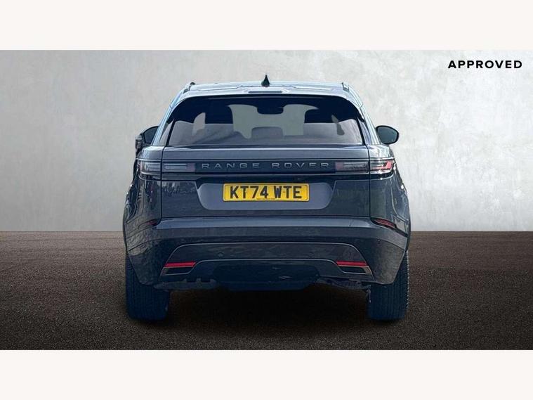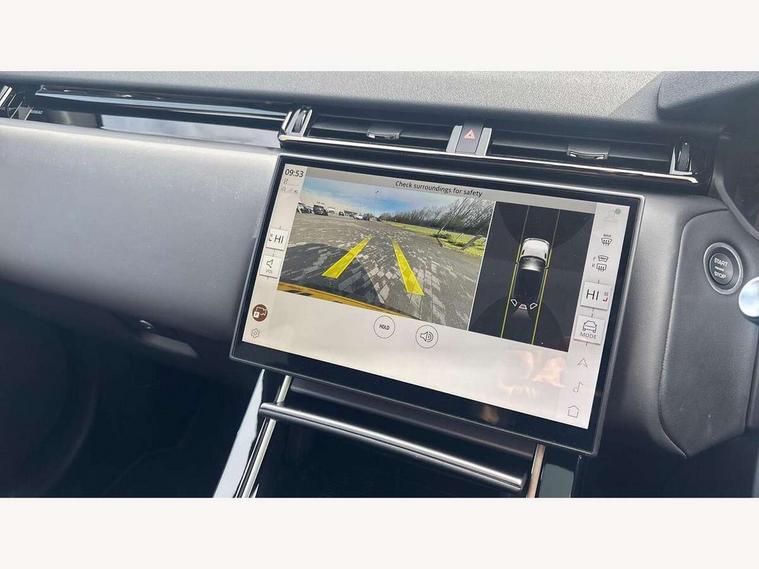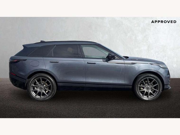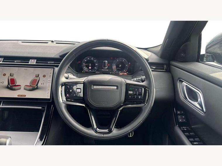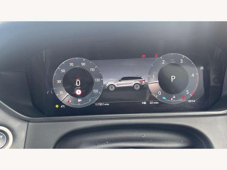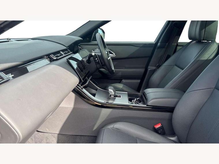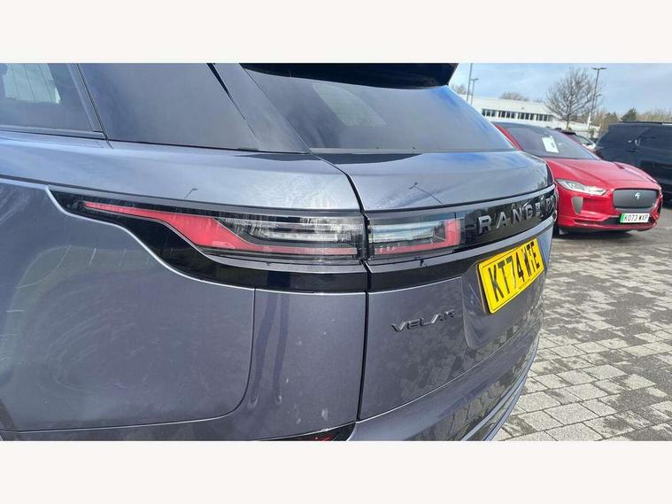 Adaptive cruise control with steering assist, Android Auto, Apple CarPlay, Blind spot assist, Bluetooth connectivity, Brake pad wear indicator warning light, Driver condition monitor, eCall emergency call system, Front and rear parking aid, InControl remote, Land Rover InControl apps, Lane keep assist, Pivi pro with connected navigation, Rear collision monitor, Rear traffic monitor, Service indicator, Speed proportional electronic power assisted steering (EPAS), Traffic sign recognition with adaptive speed limiter, Trip computer, Voice control system, Wireless device charging, 8 speed automatic transmission, Adaptive dynamics, All terrain progress control, Electronic air suspension, Open differential with torque vectoring by braking, Single speed transfer box, DAB radio, Steering wheel mounted controls, 3rd brake light, Acoustic laminated windscreen, Auto dimming interior rear view mirror, Automatic headlamp levelling, Automatic headlights, Body coloured bumpers, Boot protection plate, Electric windows with one touch open/close and anti trap, Flush deployable exterior door handles, Follow me home headlights, Heated rear window with timer, Heated washer jets, Heated windscreen, Metal front tread plates, Metal load space scuff plates, Pixel LED headlights with signature DRL, Power fold, auto-dimming, heated door mirrors with memory and approach lights, Rain sensor windscreen wipers, Rear animated directional indicators, Rear fog lights, Rear side wing doors, Rear wash/wipe, Tailgate/boot lid spoiler, Trailer stability assist, Velar badge, 3 seat bench in 2nd row, Ambient lighting, Bright metal pedals, Carpet mats, Driver/passenger sunvisors with illuminated vanity mirrors, Ebony morzine headlining, Electrically adjustable steering column, Extended leather upgrade, Heated steering wheel, Isofix system on outer rear seats, Loadspace cover, Overhead lighting console, Overhead stowage for sunglasses, Passive front headrests, Rear air vents, Rear centre headrest, Single front passenger seat, Twin front cupholders, Twin sliding front centre armrest, Online pack with data plan - Velar, Power socket pack 2 - Velar, 355mm Front and 325mm Rear brakes, 3x3 point rear seatbelts, Anti-lock braking system (ABS), Cornering brake control, Curtain airbags, Customer configurable autolock, Door side intrusion beams, Driver airbag, DSC - Dynamic Stability Control, Electronic brake force distribution, Electronic parking brake, Electronic traction control, Emergency braking, Front and rear seatbelt reminder, Hill descent control, Hill launch assist, Low traction launch, Passenger airbag, Power operated child locks, Rear airbags, Roll stability control, Side airbags, Tyre pressure monitoring system (TPMS), Global lock and unlock switch on driver door, Immobiliser, Intrusion sensor, Keyless entry, Lock only switch on front passenger door, Locking wheel nuts, Perimetric alarm, Remote central locking, All season tyres,